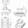 Transformador de ventas ER2820 de esqueleto vertical de 8+8 pines con núcleo magnético a juego.