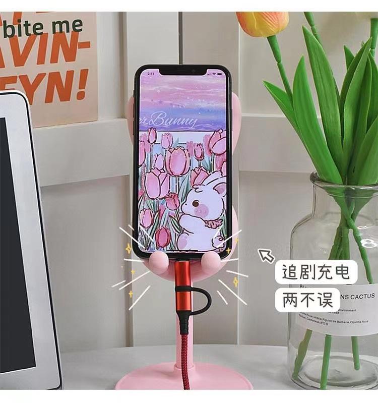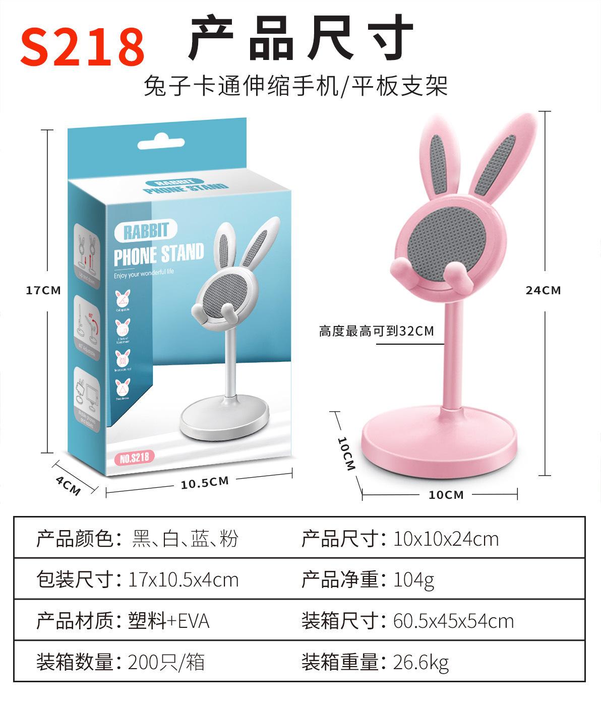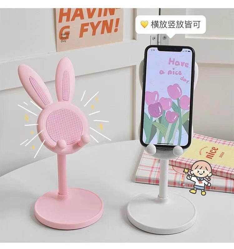 Soporte telescópico ajustable para teléfono móvil, tableta y PC con diseño de conejo de dibujos animados, ideal para estudiantes.