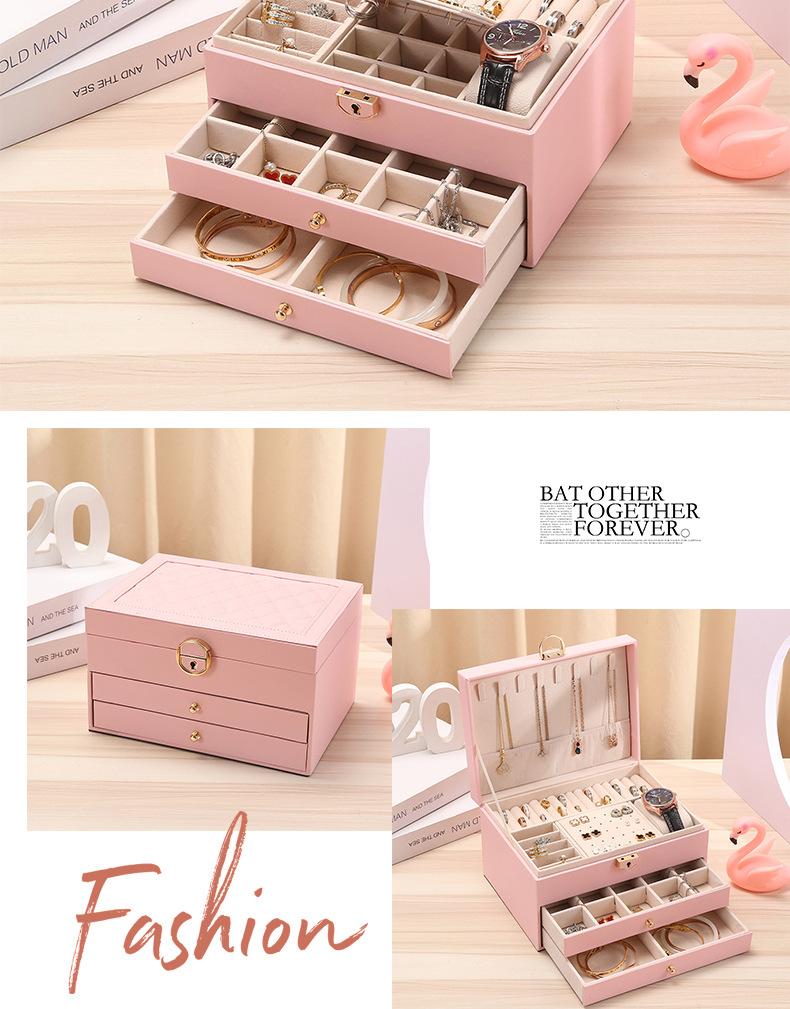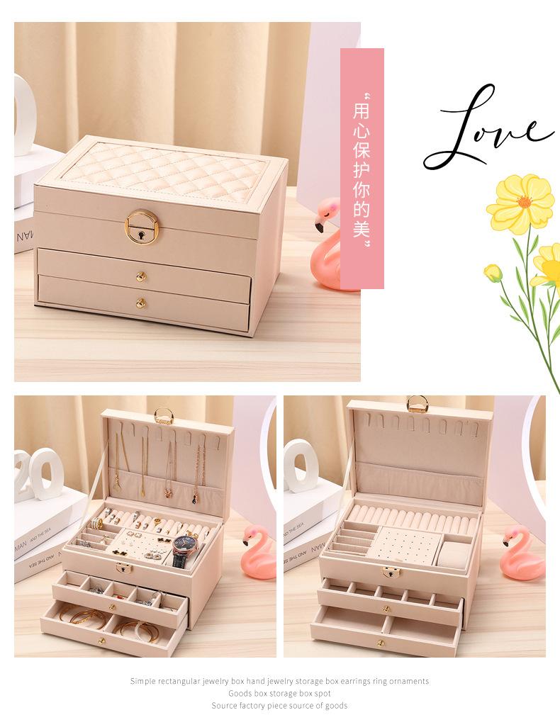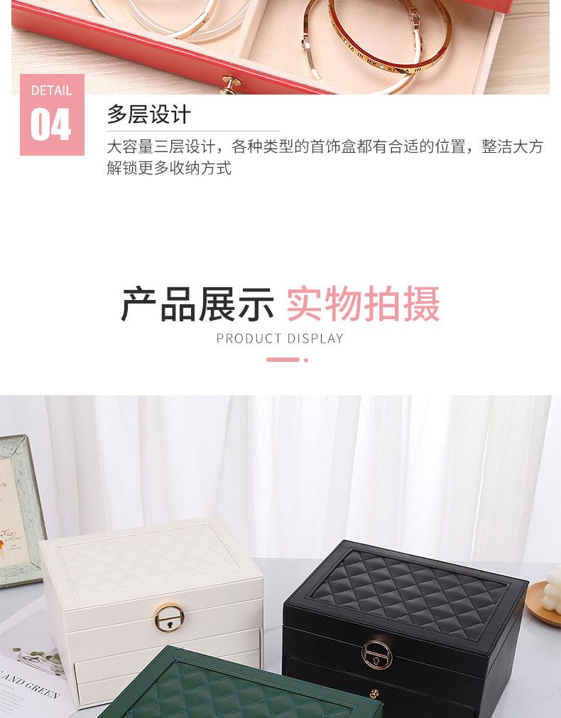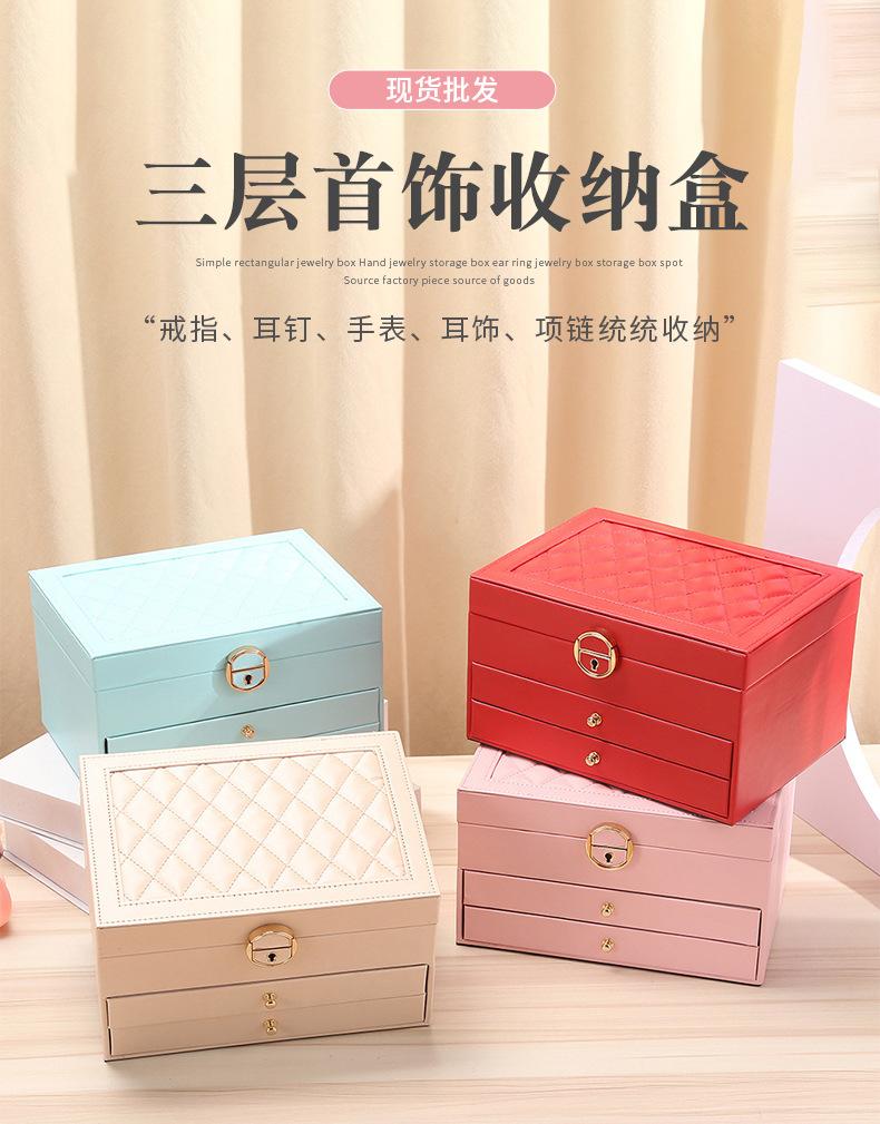 Caja de almacenamiento creativa de tres capas para joyería, caja de almacenamiento de rombos para collar y anillo, color sólido, venta al por mayor
