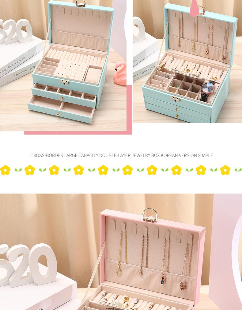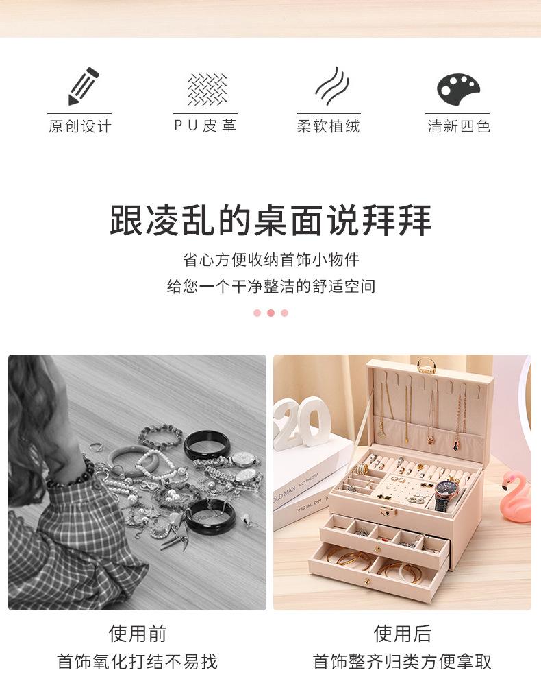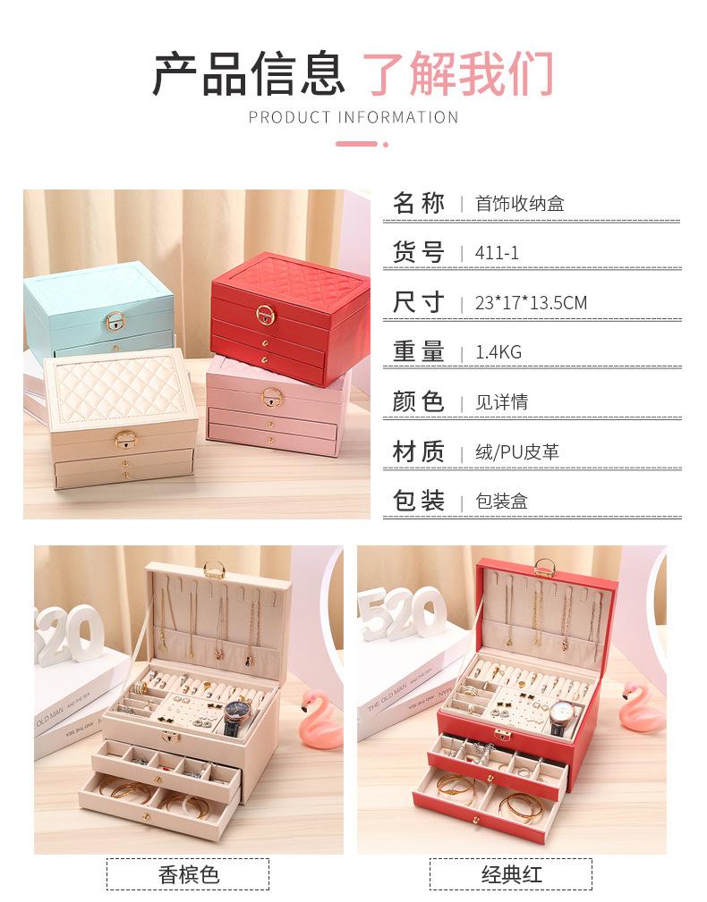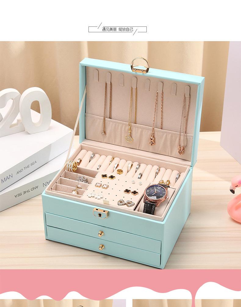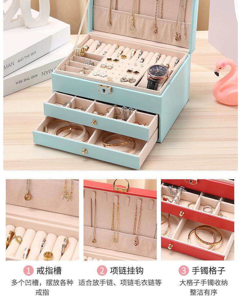 Caja de almacenamiento creativa de tres capas para joyería, caja de almacenamiento de rombos para collar y anillo, color sólido, venta al por mayor