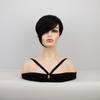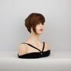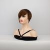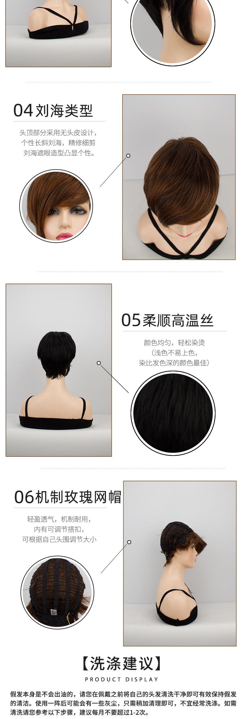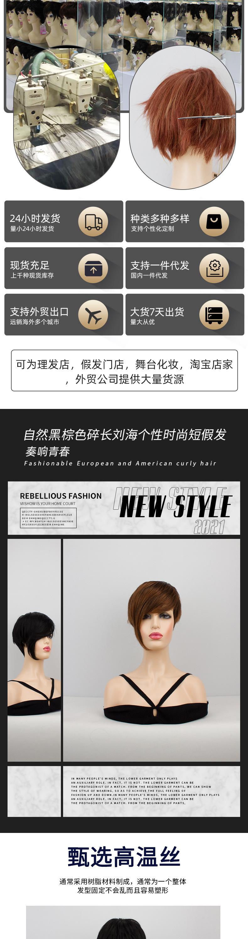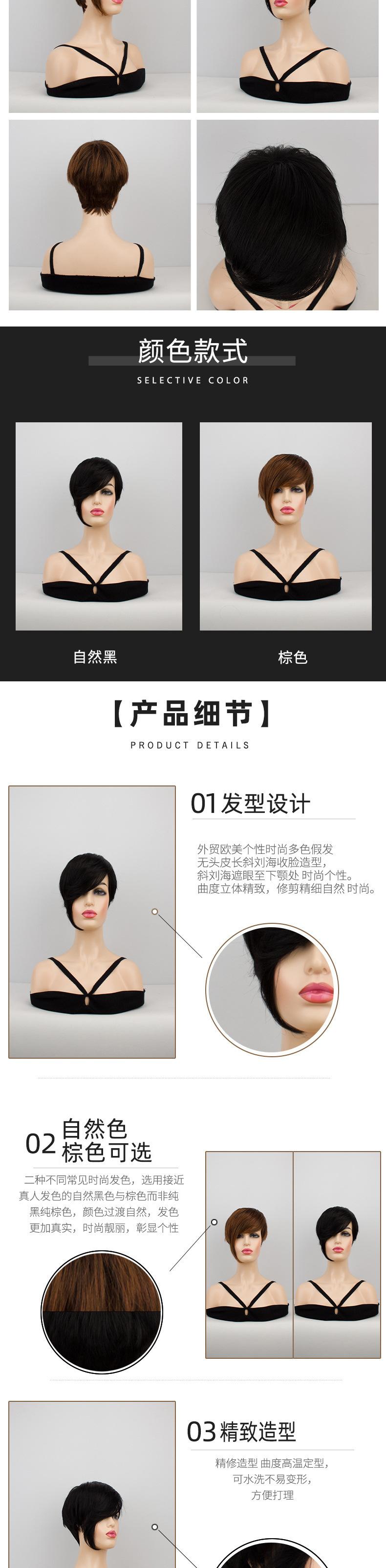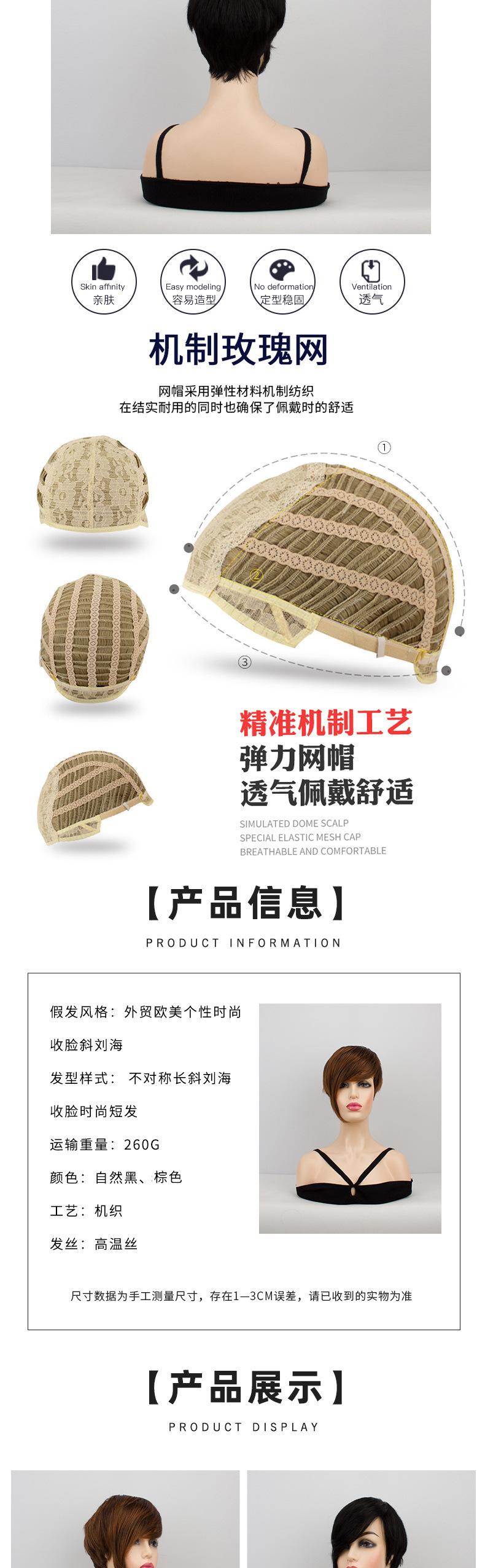 Peluca de moda transfronteriza europea y americana, flequillo oblicuo largo asimétrico, cabello corto castaño claro negro natural, peluca de alta simulación con cubierta para la cabeza