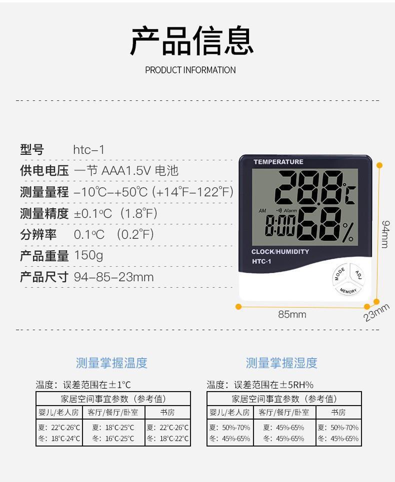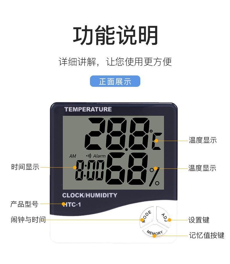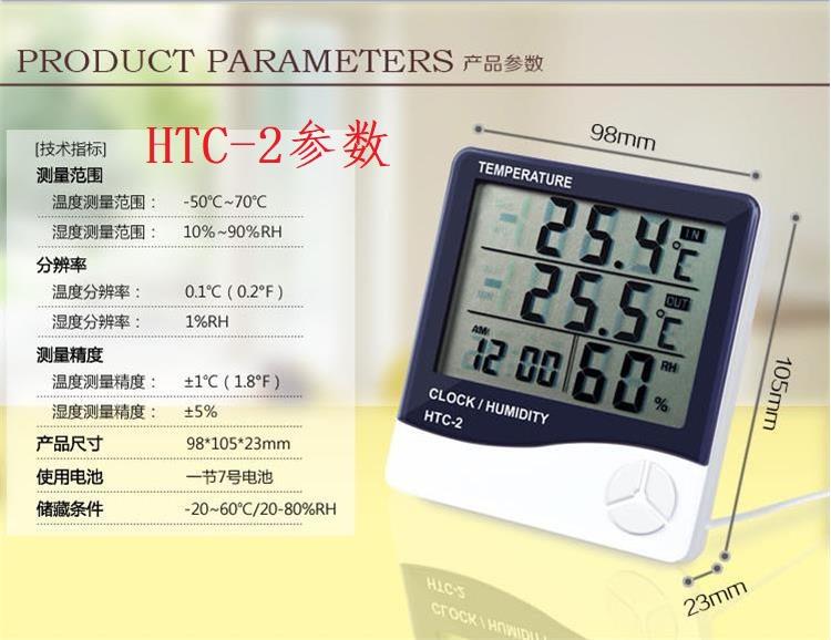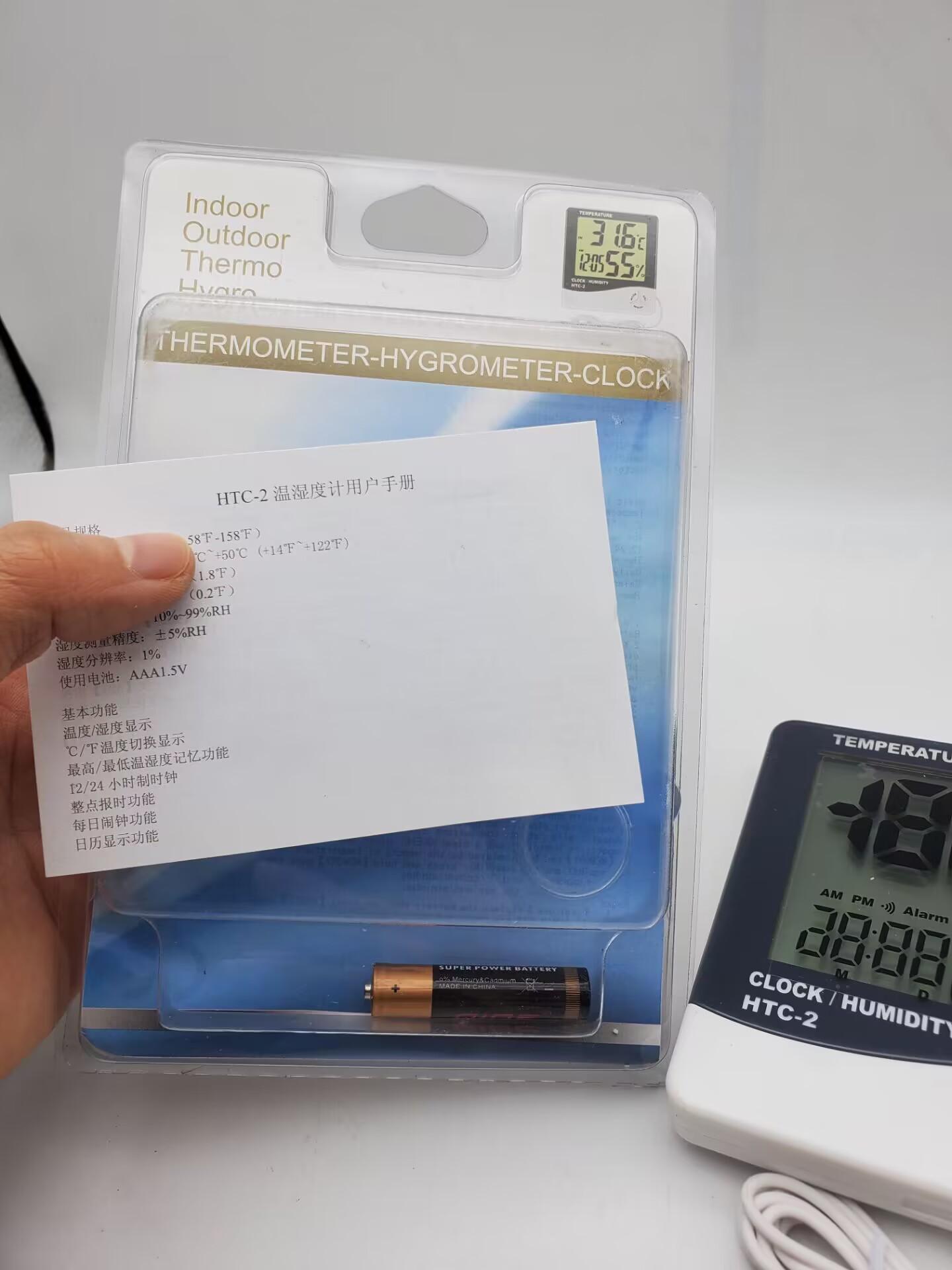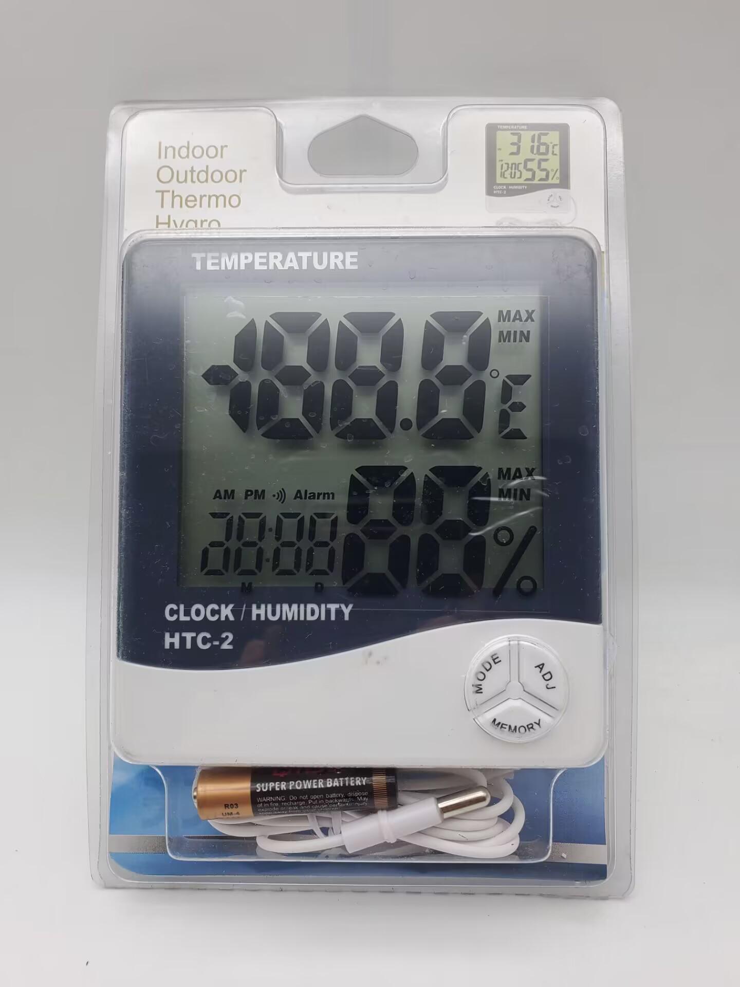 Termómetro higrómetro electrónico de alta precisión para interiores HTC-1, termómetro doméstico con despertador de doble pantalla HTC-2 de fábrica