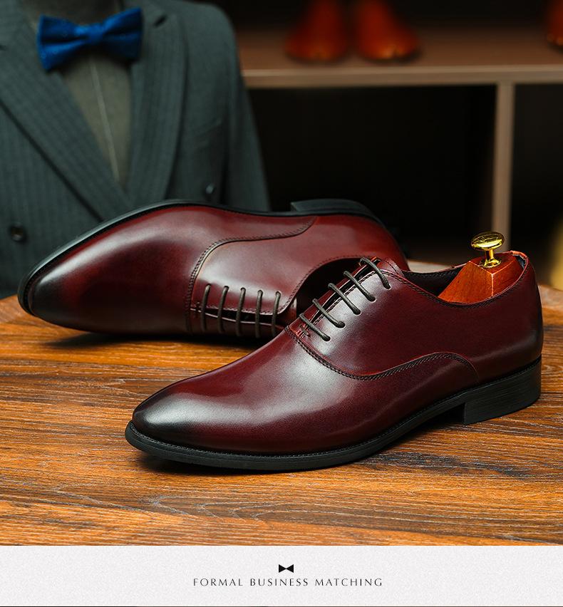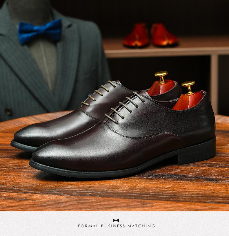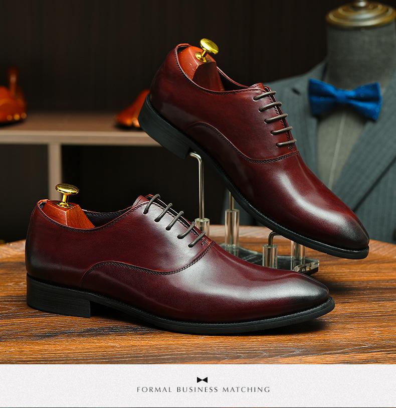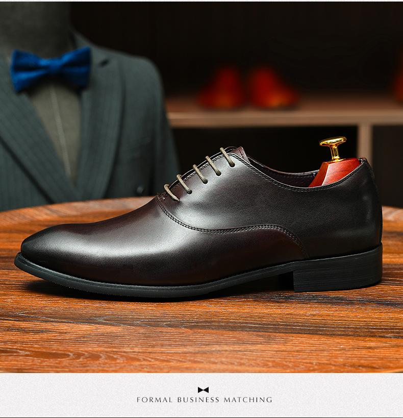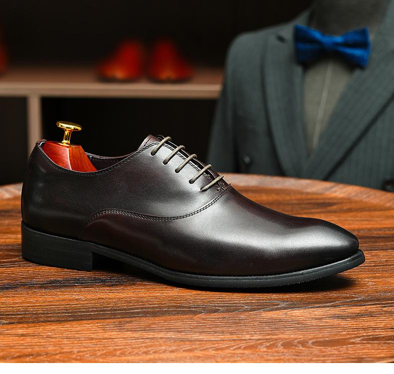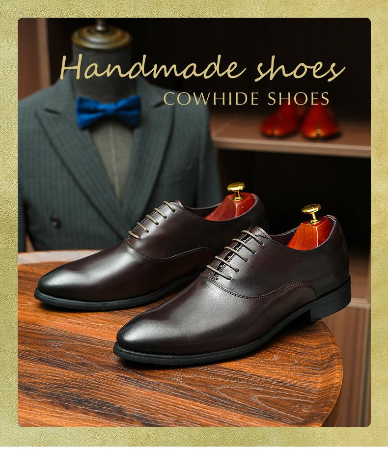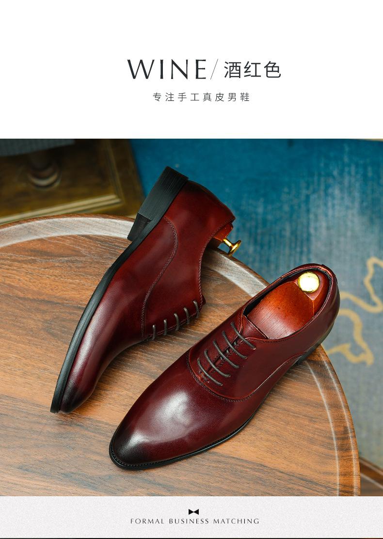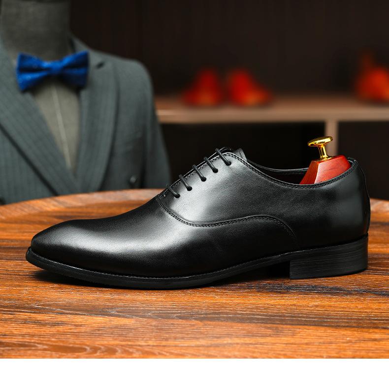 Zapatos formales de cuero para hombre británicos, de cuero genuino, con punta puntiaguda, para negocios, de talla grande, para boda, novio, estilo Oxford coreano.
