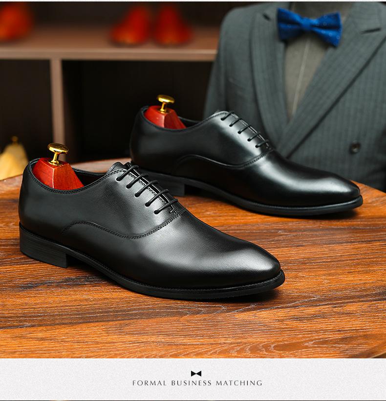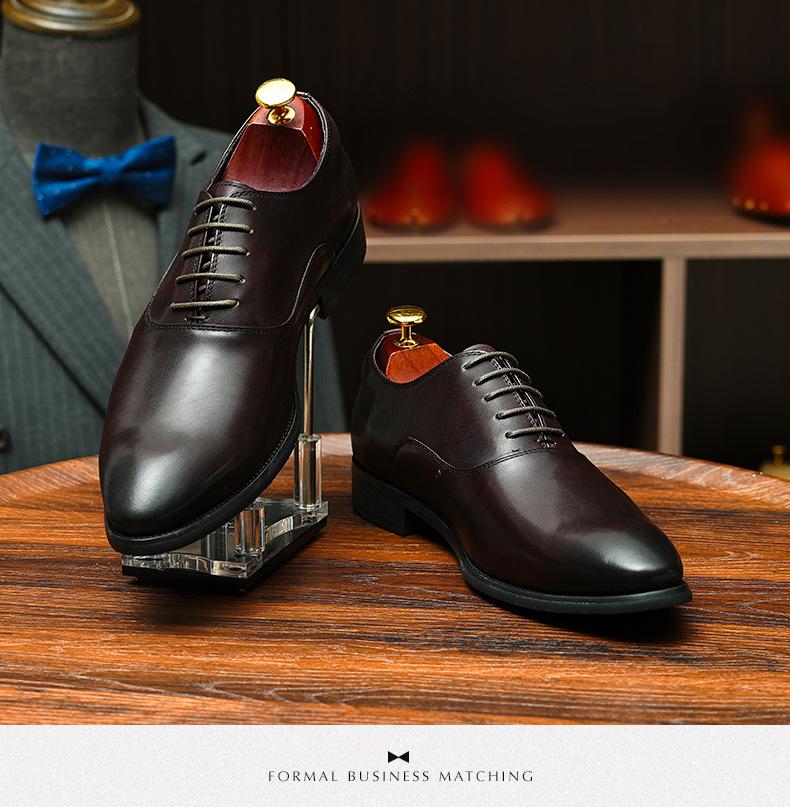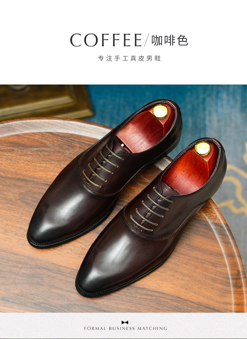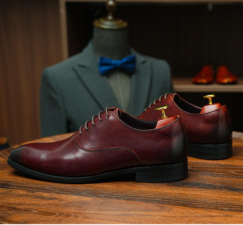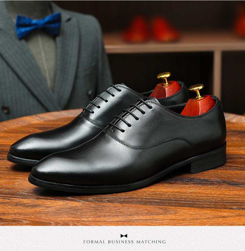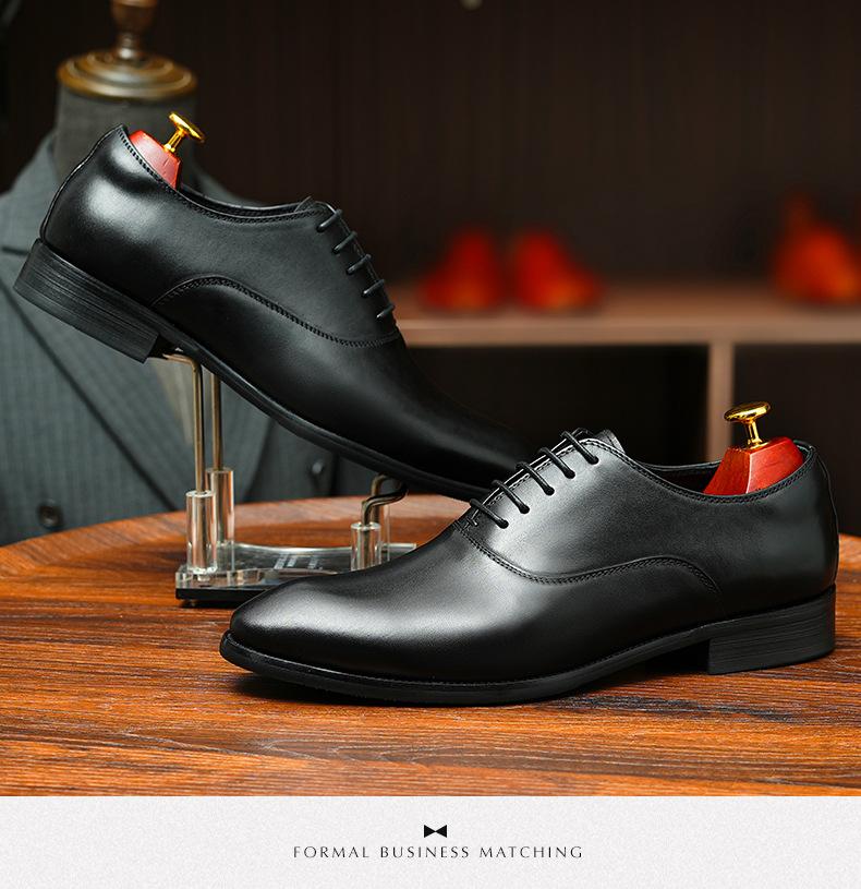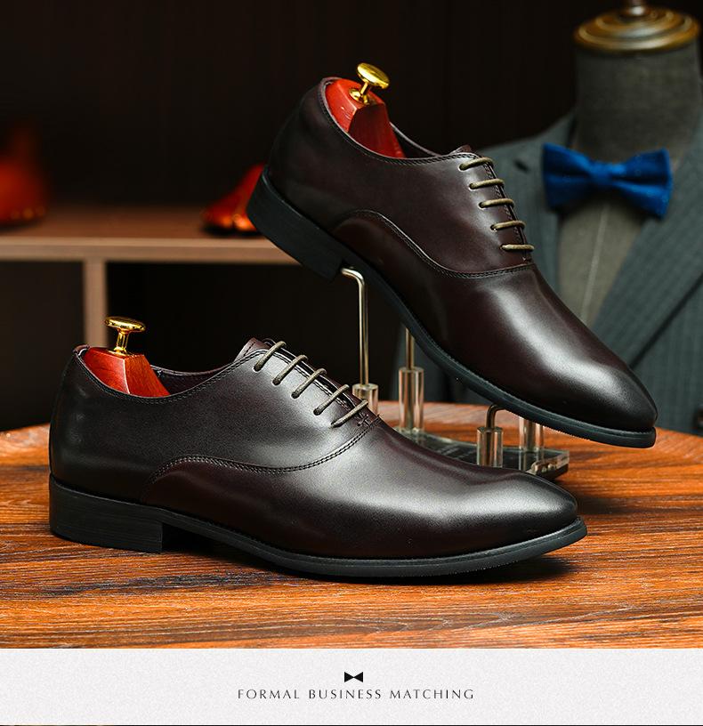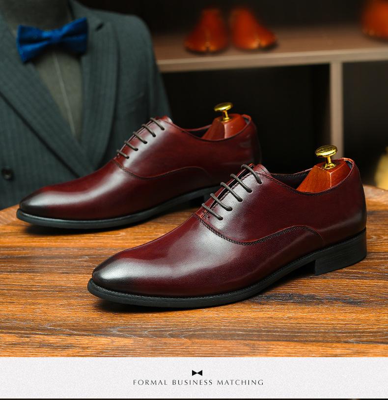 Zapatos formales de cuero para hombre británicos, de cuero genuino, con punta puntiaguda, para negocios, de talla grande, para boda, novio, estilo Oxford coreano.