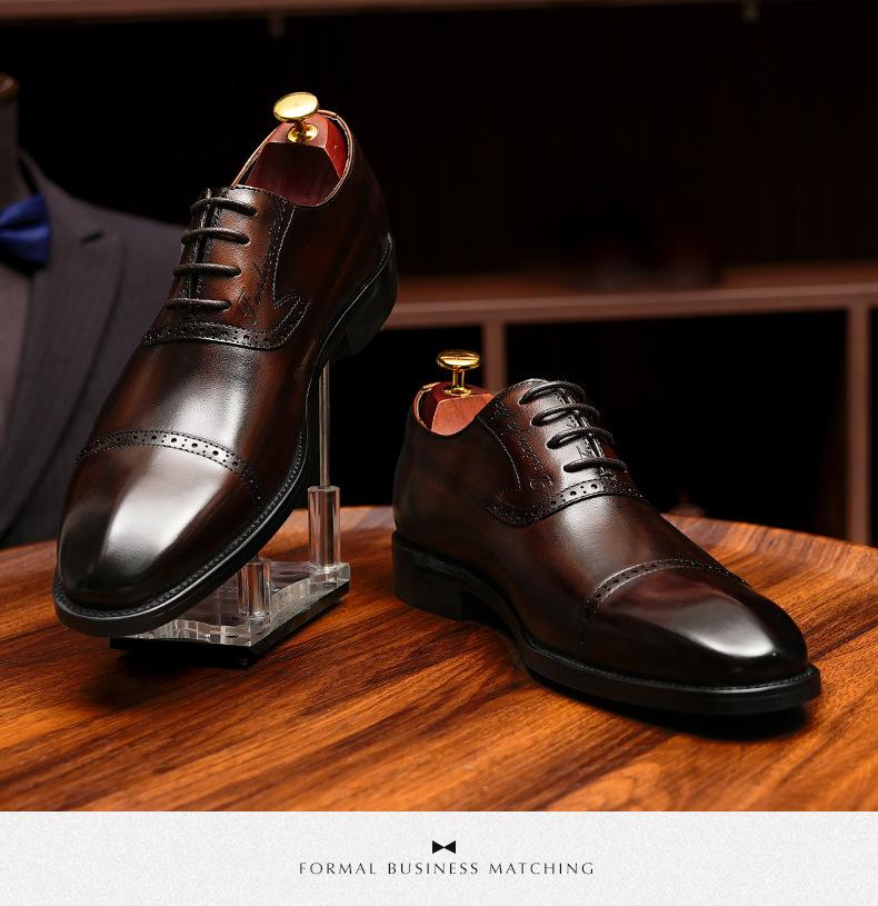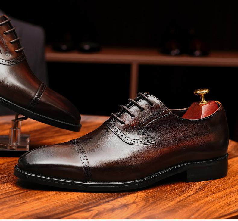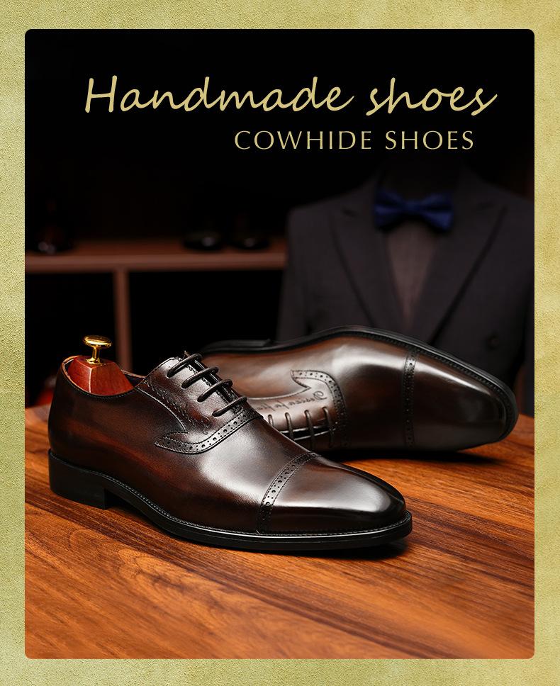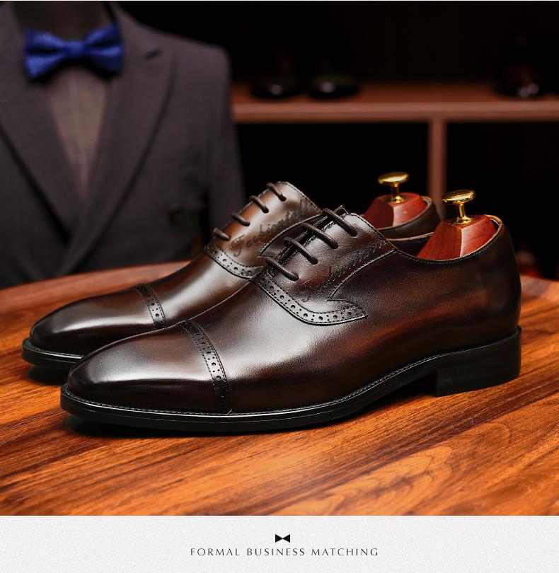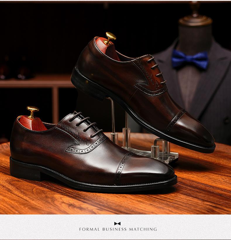 Zapatos de Cuero para Hombre 2025 Nuevo Estilo Cuero Genuino Formal Negocios Oxford de Tres Articulaciones Puntera Cuero de Vaca de Capa Superior Británico Hecho a Mano Zapatos de Hombre