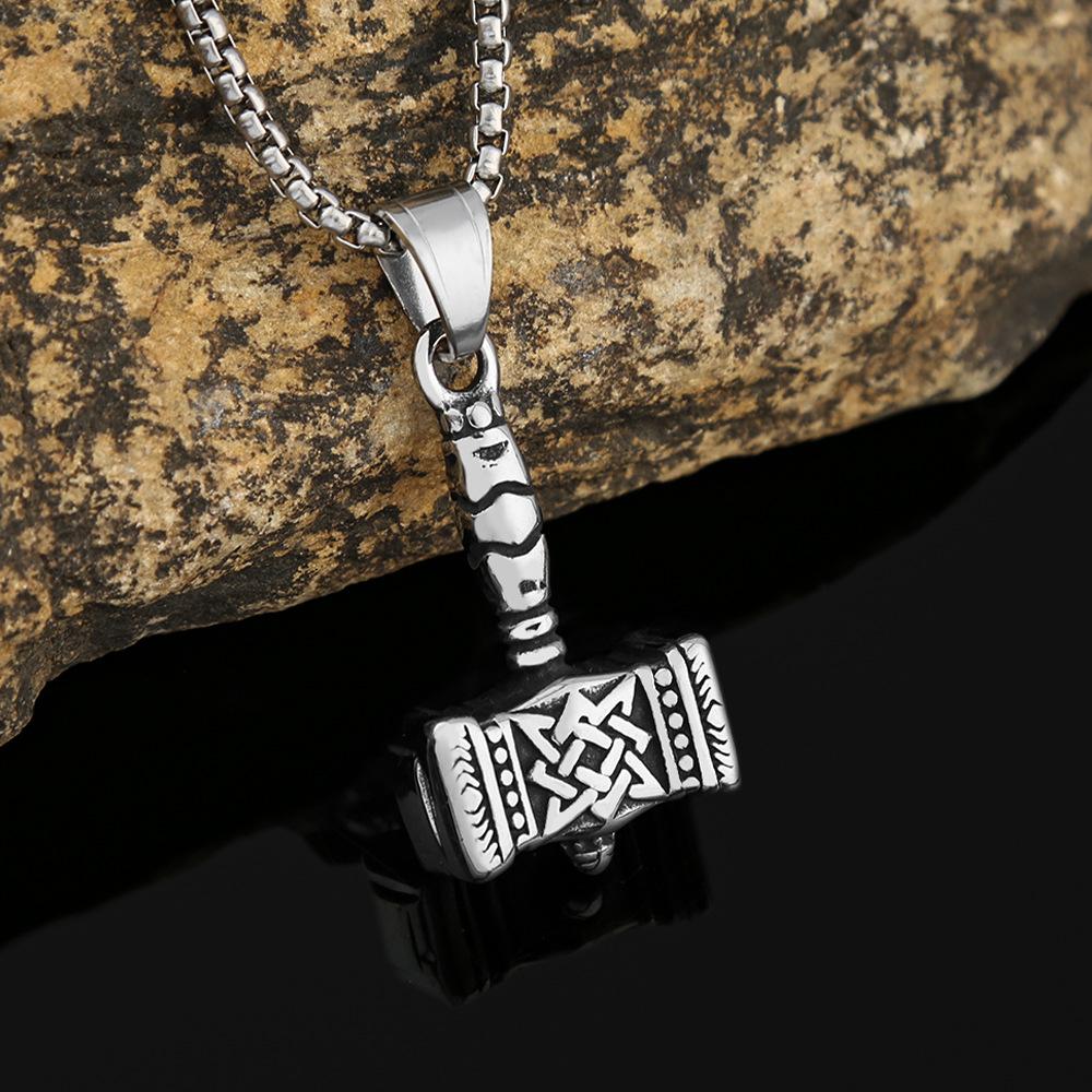 Collar con colgante de acero inoxidable con martillo de Thor vikingo, accesorios de Joker de moda, colgante de joyería de comercio exterior de acero de titanio para hombres, venta al por mayor