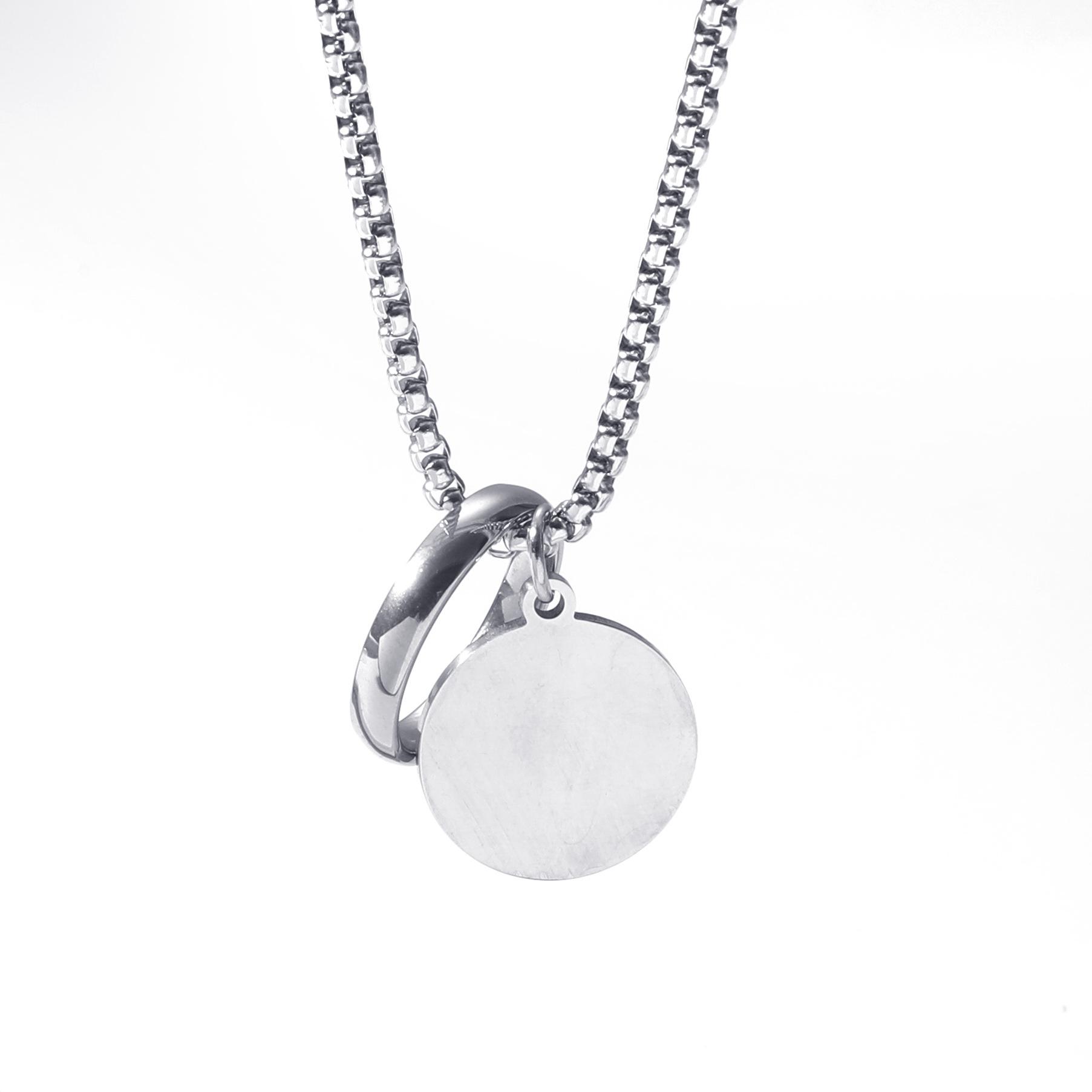Cadena de Suéter Casual Ins Collar de Acero Inoxidable Hip-Hop para Hombre y Mujer Collar Largo Anillo de Acero Titanio Grabado Accesorios Colgante