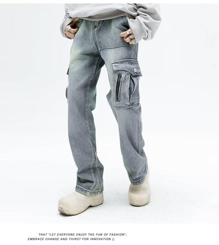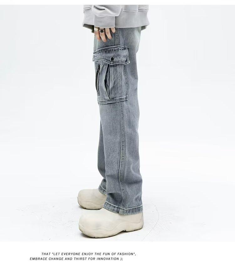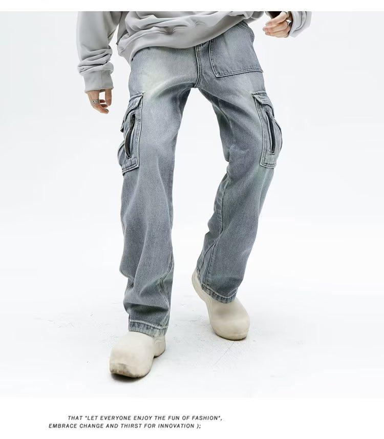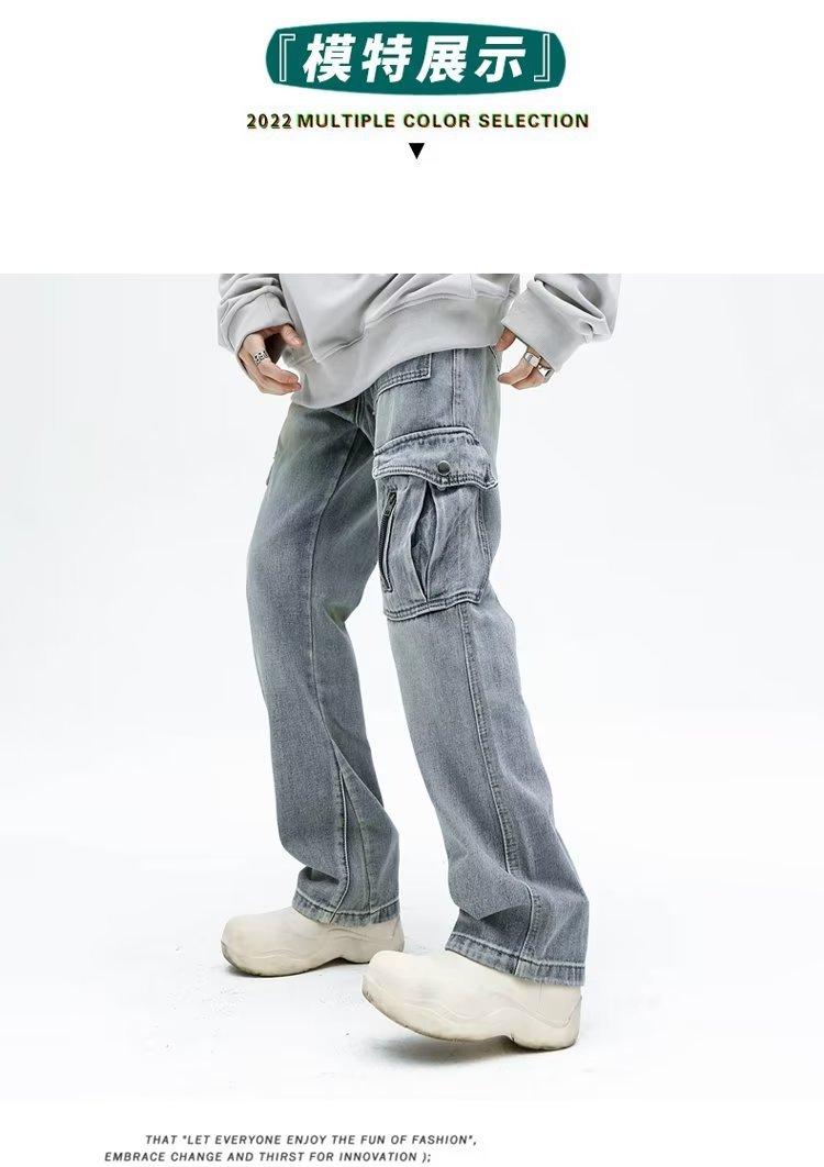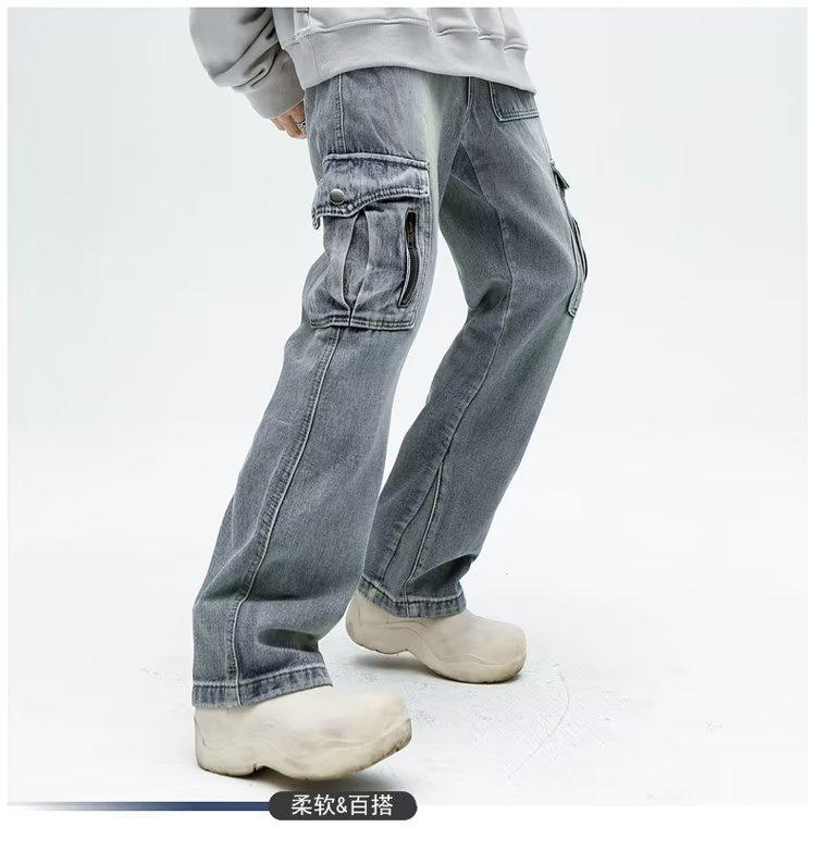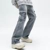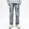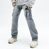 Pantalones vaqueros retro de estilo americano de moda para hombres y mujeres, monos elegantes con volantes de calle alta de moda, pantalones holgados rectos lavados y desgastados