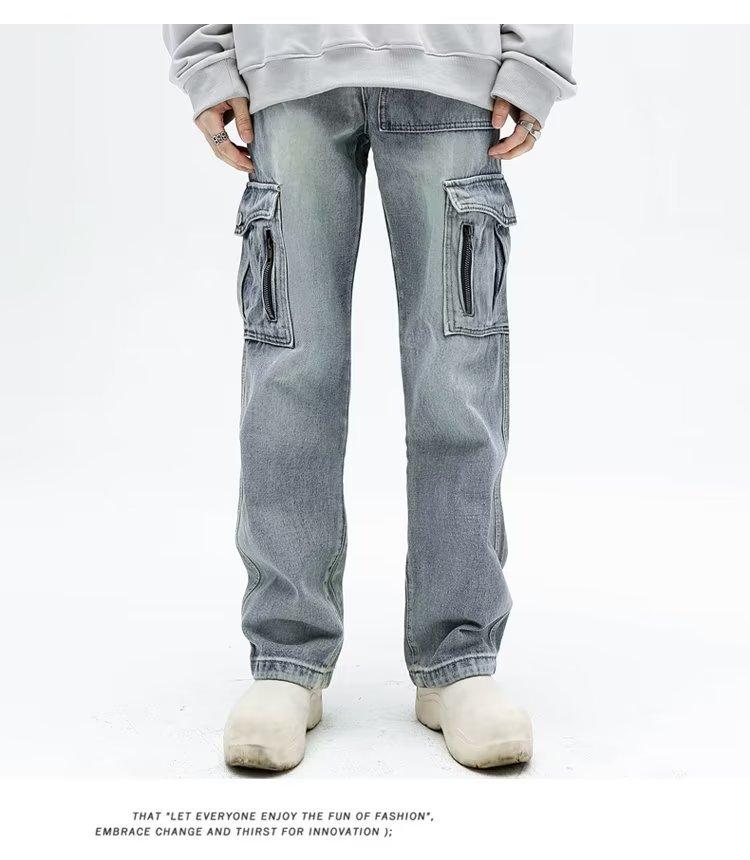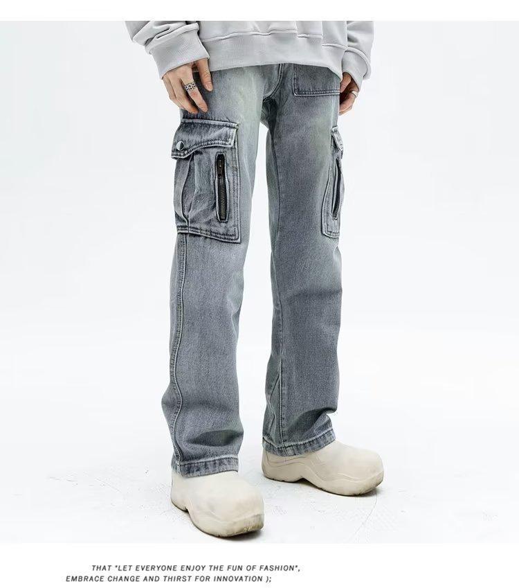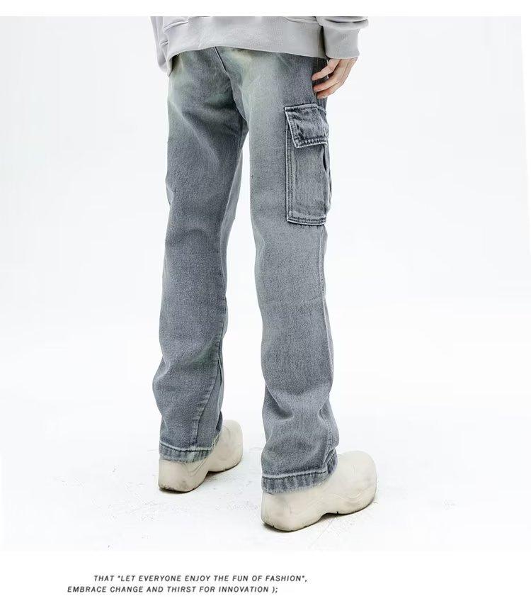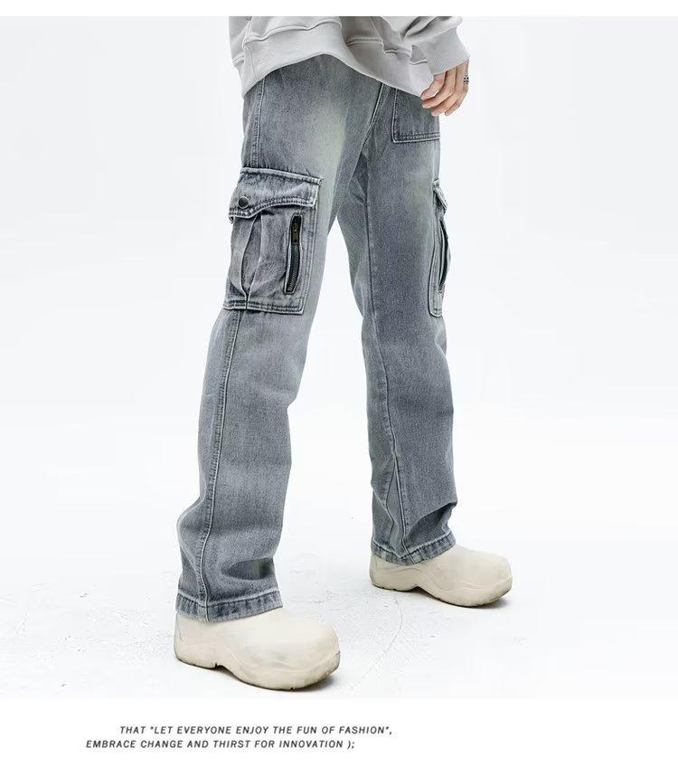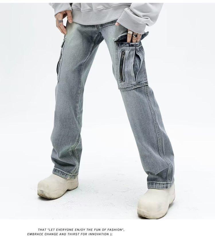 Pantalones vaqueros retro de estilo americano de moda para hombres y mujeres, monos elegantes con volantes de calle alta de moda, pantalones holgados rectos lavados y desgastados