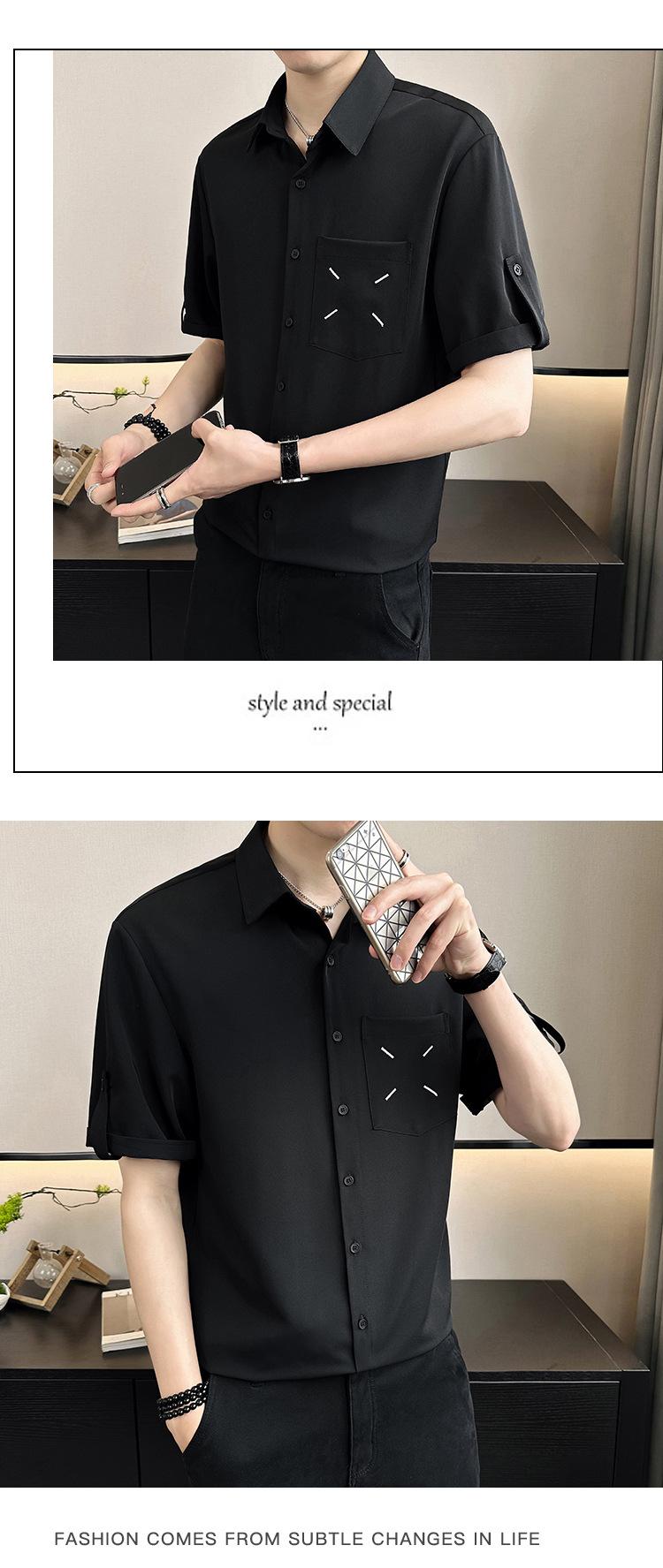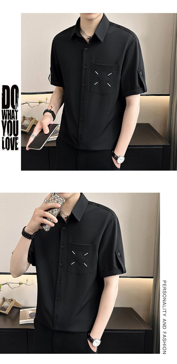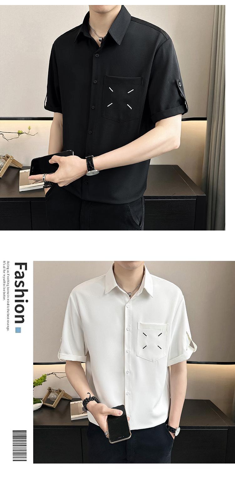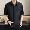 Camisa de Seda de Hielo de Verano para Hombre Diseño de Sentido Maduro Ligero Camisa de Manga Corta Casual Combinable Holgada de Media Manga Estilo Perezoso