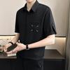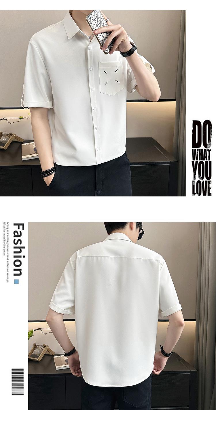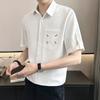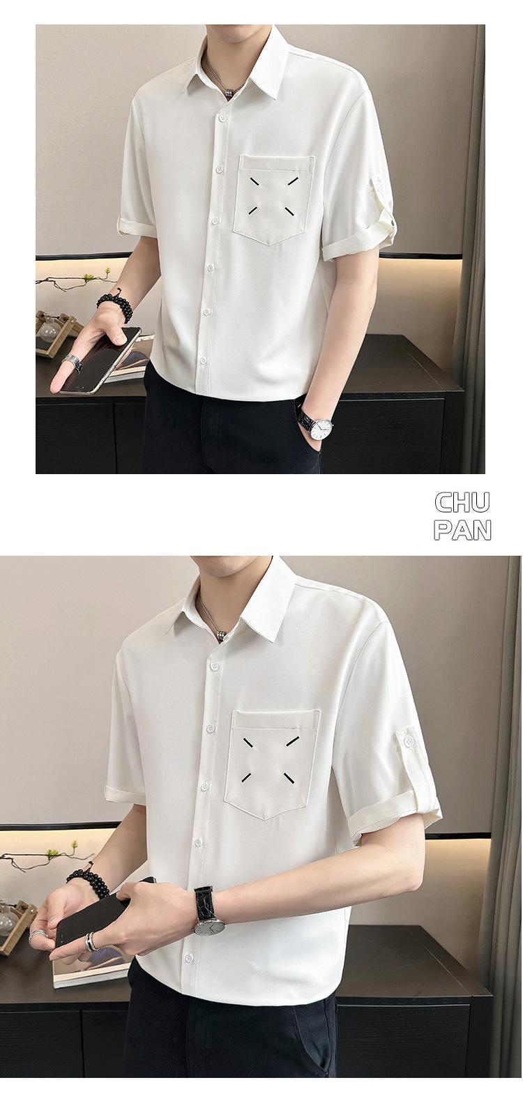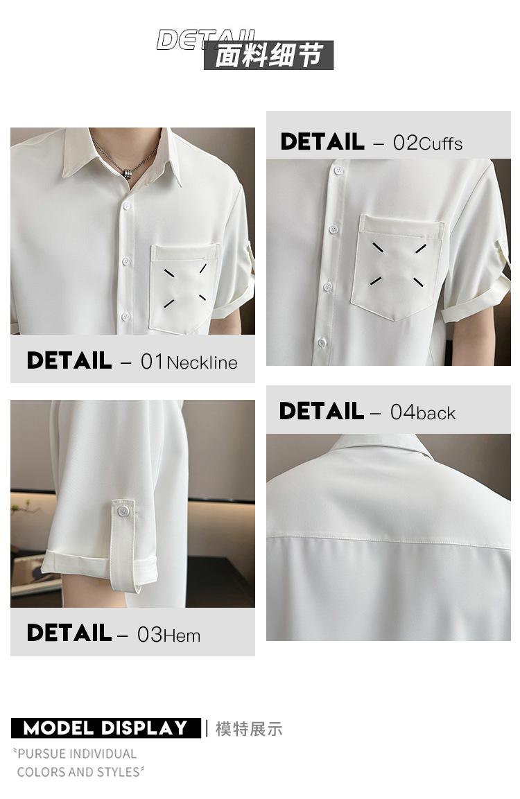 Camisa de Seda de Hielo de Verano para Hombre Diseño de Sentido Maduro Ligero Camisa de Manga Corta Casual Combinable Holgada de Media Manga Estilo Perezoso