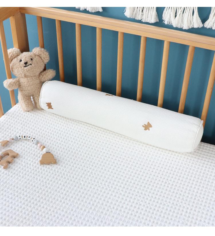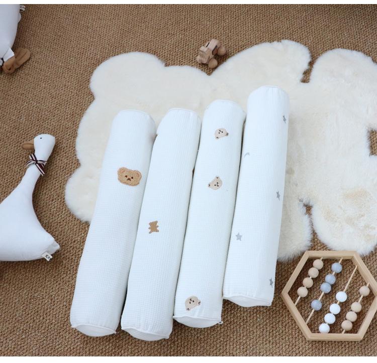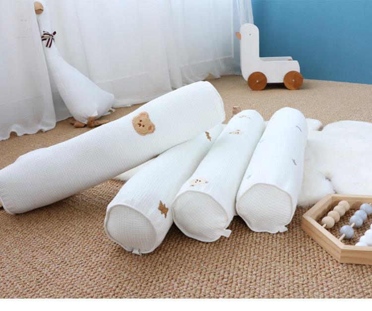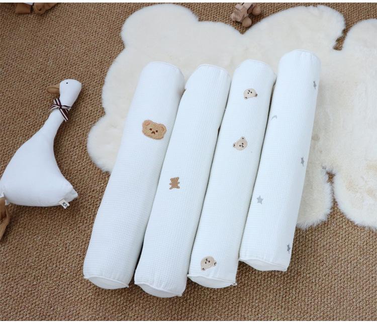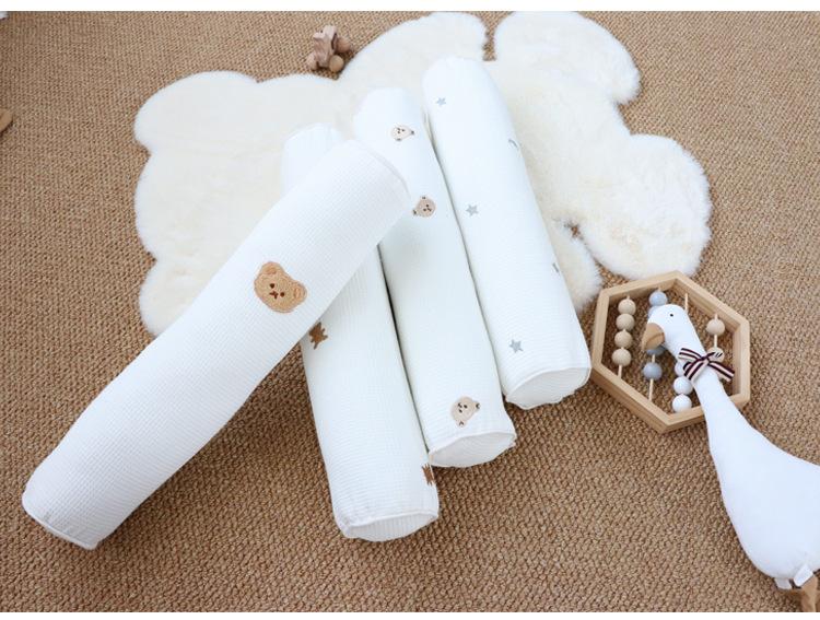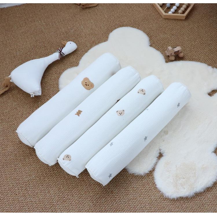 Almohada de noche con bordado de oso de algodón puro coreano, almohada cilíndrica cómoda para bebé