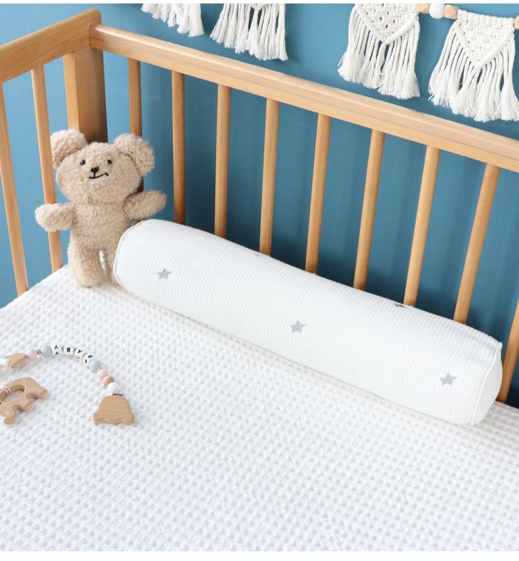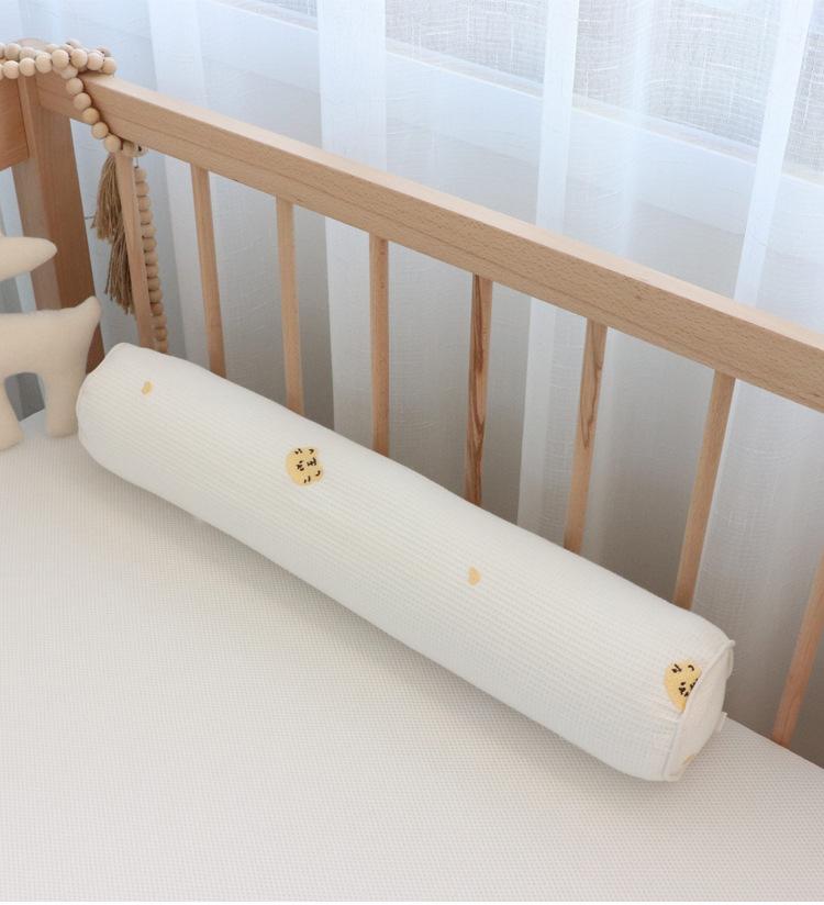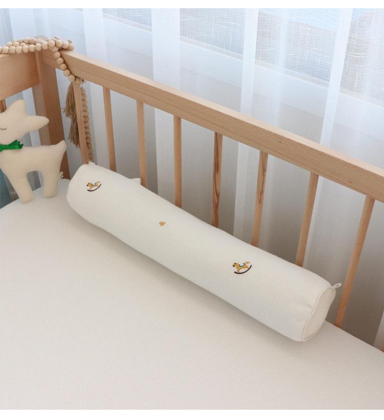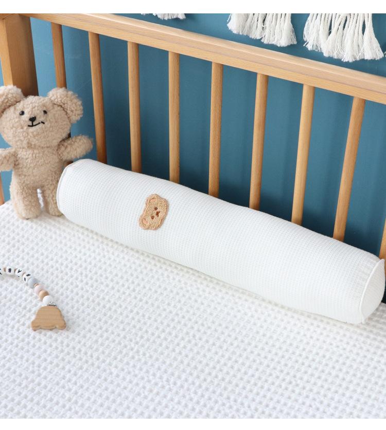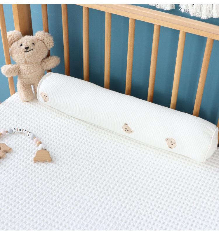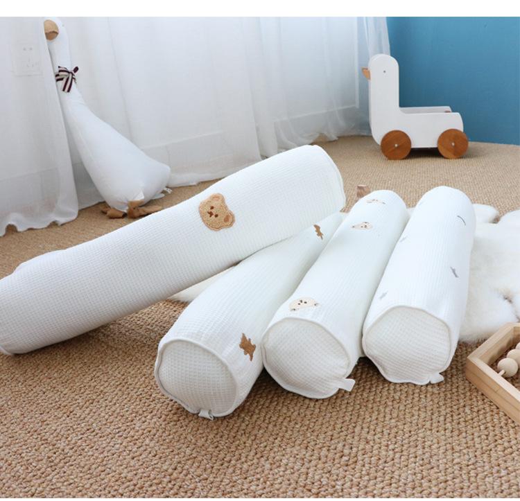 Almohada de noche con bordado de oso de algodón puro coreano, almohada cilíndrica cómoda para bebé