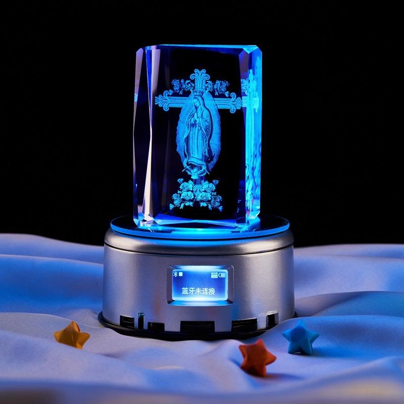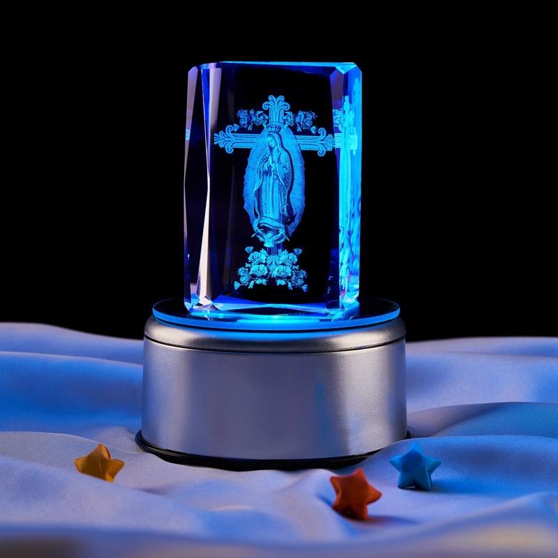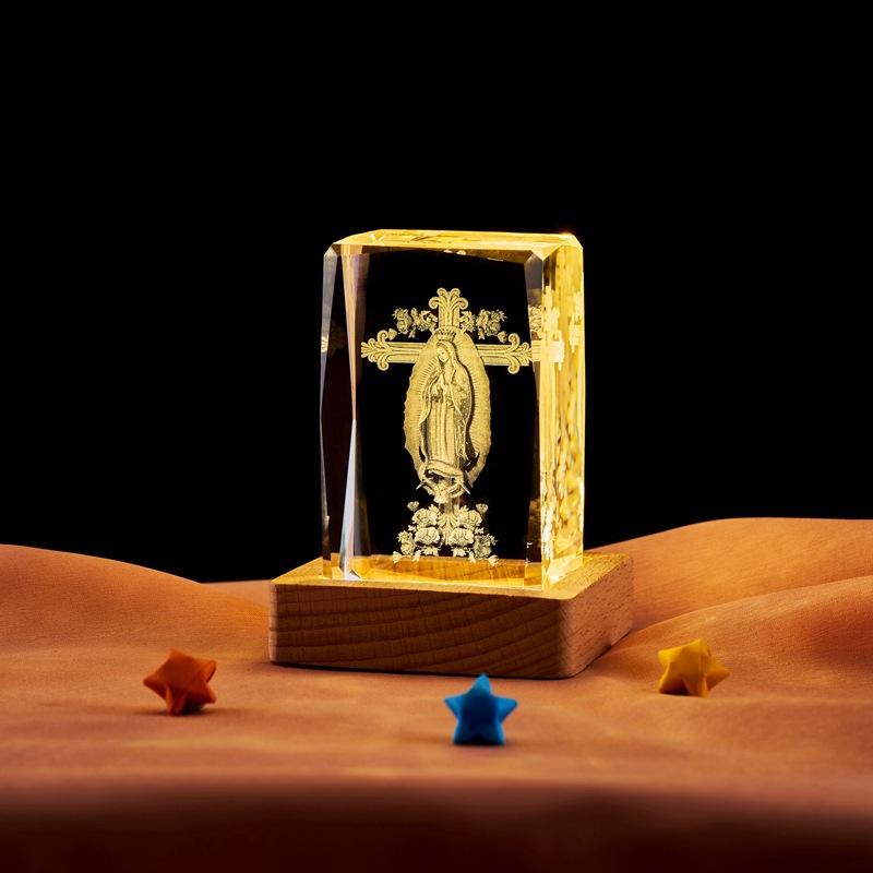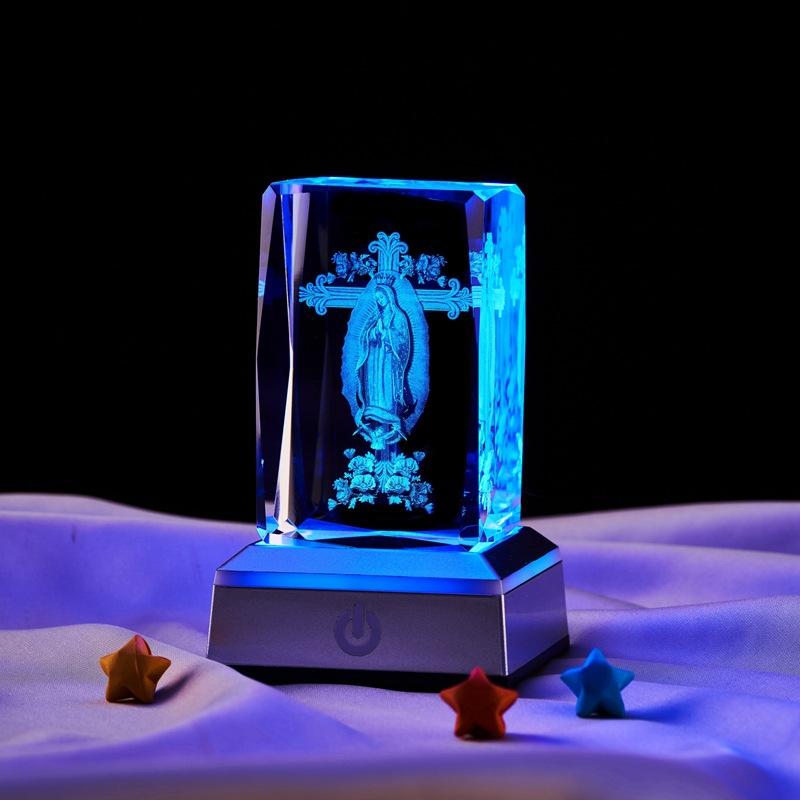 Adornos de luz nocturna luminosa con cubo de cristal grabado láser tridimensional 3D de Notre Dame de México, venta al por mayor transfronteriza
