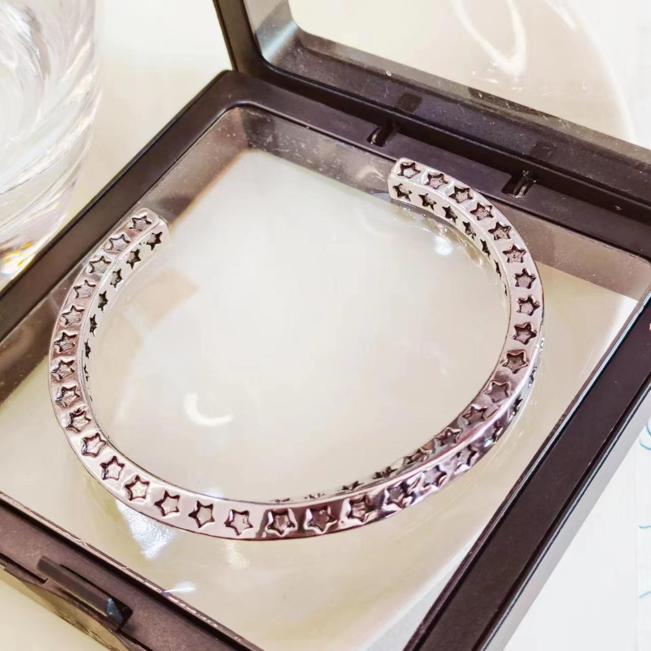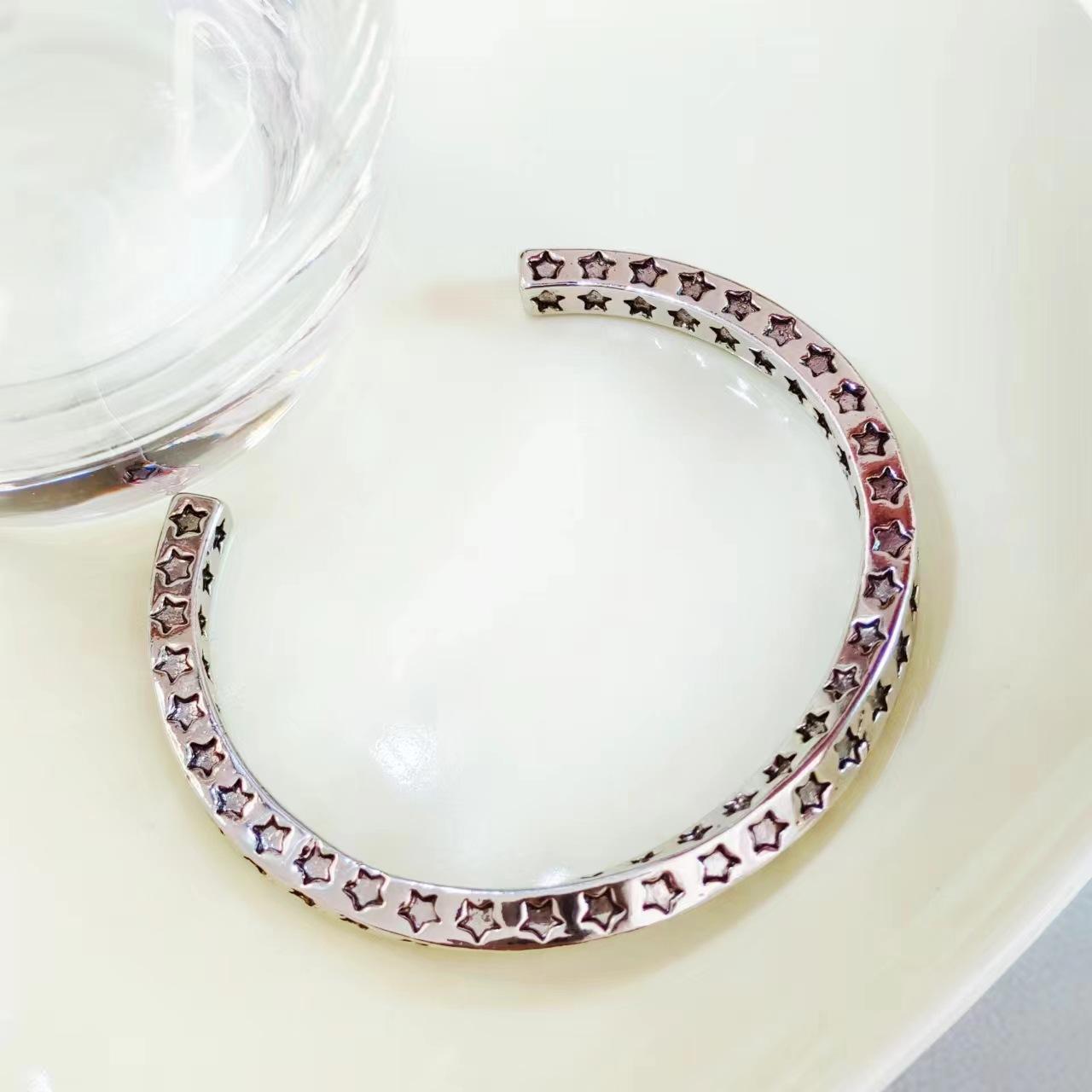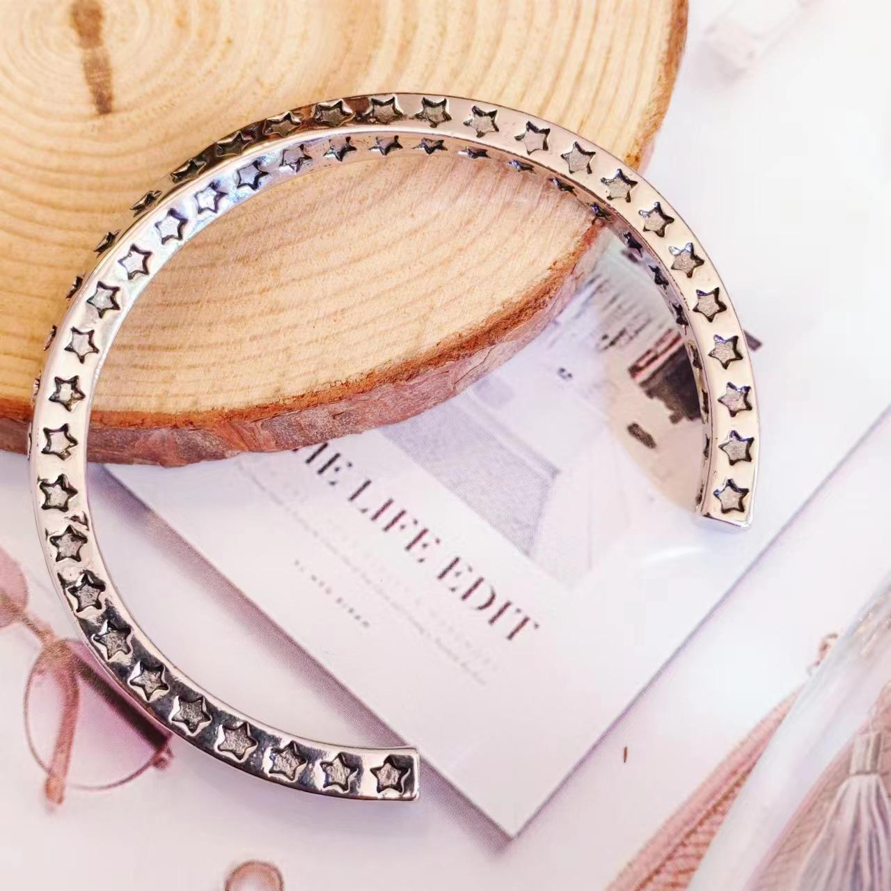 Pulsera de Plata Tailandesa Estrella de Cinco Puntas Mobius Estilo de Moda para Mujer Estilo Europeo y Americano Personalidad Abierta Pulsera Retro Pulsera