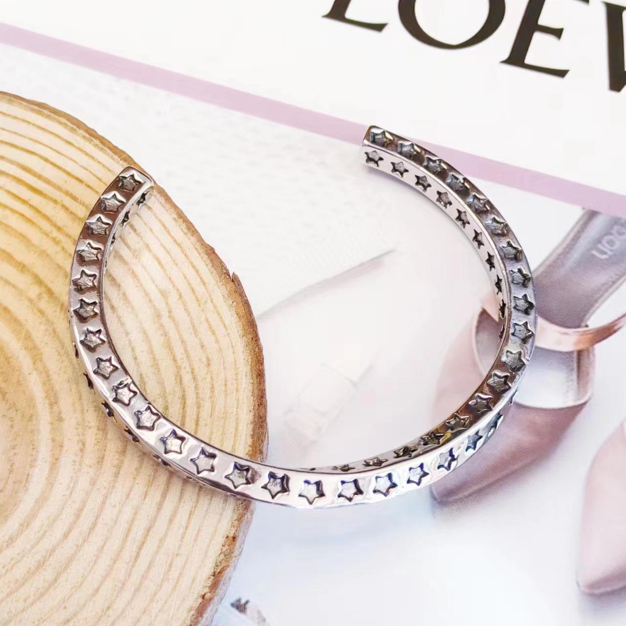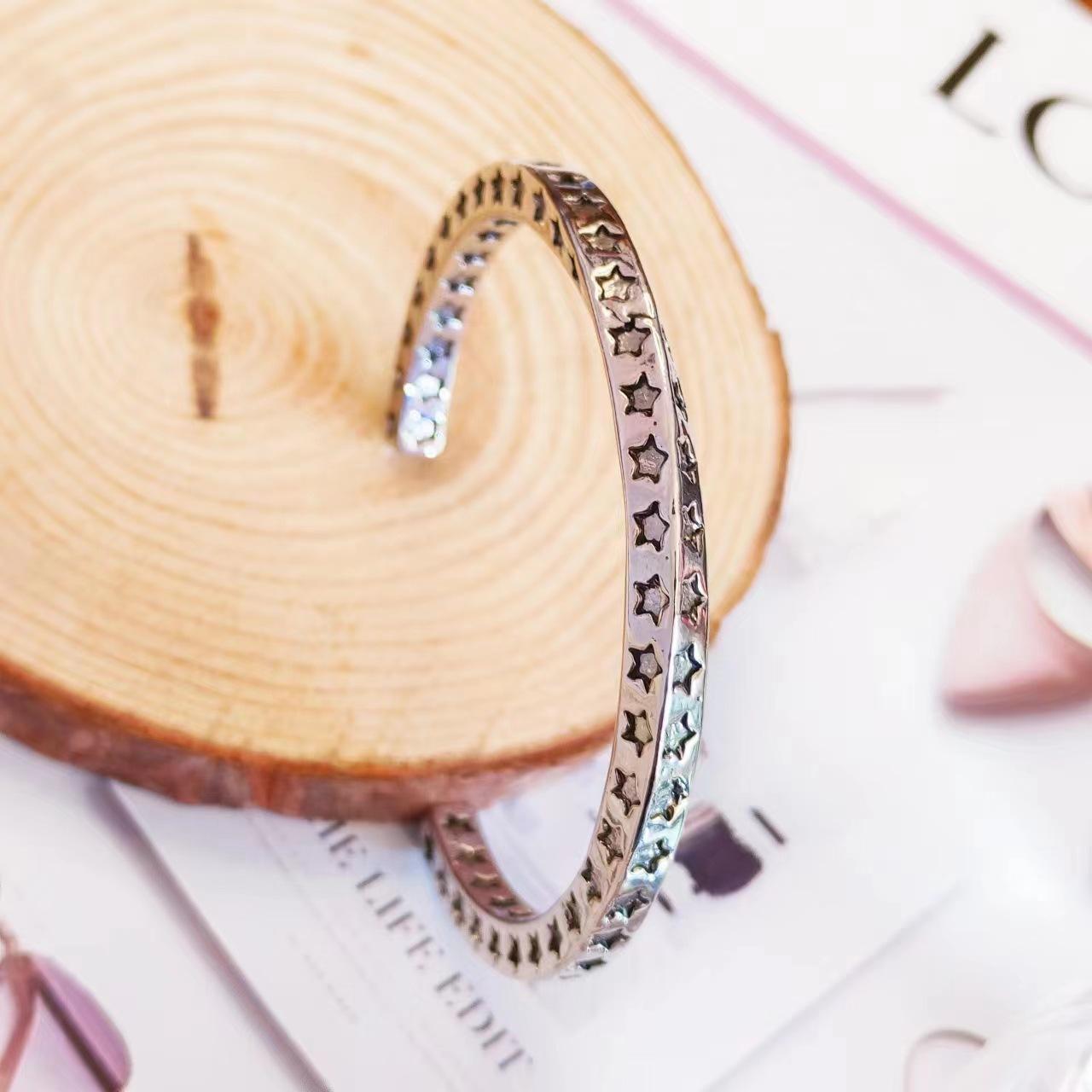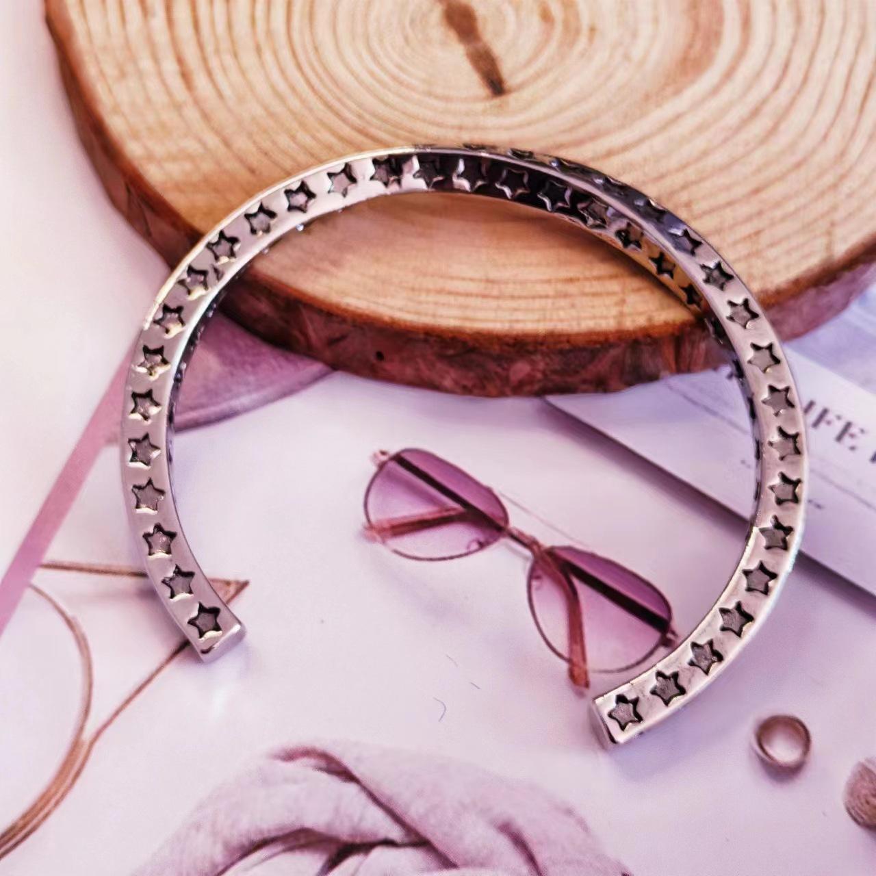 Pulsera de Plata Tailandesa Estrella de Cinco Puntas Mobius Estilo de Moda para Mujer Estilo Europeo y Americano Personalidad Abierta Pulsera Retro Pulsera