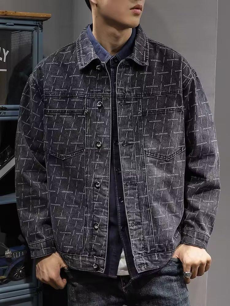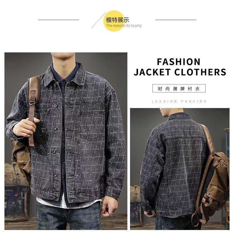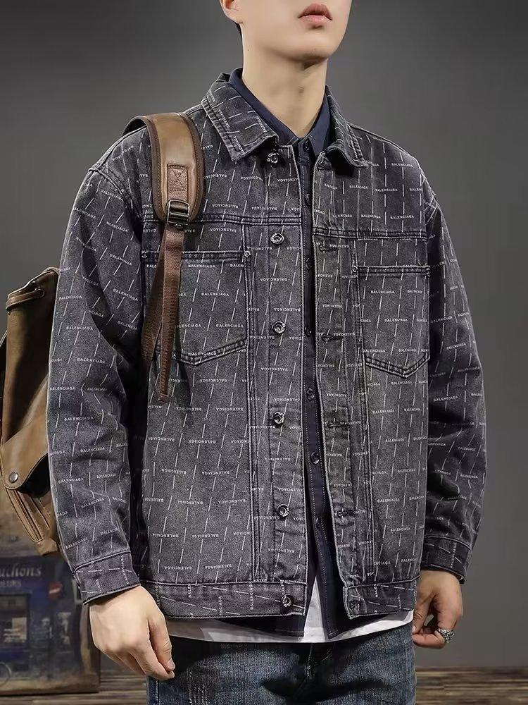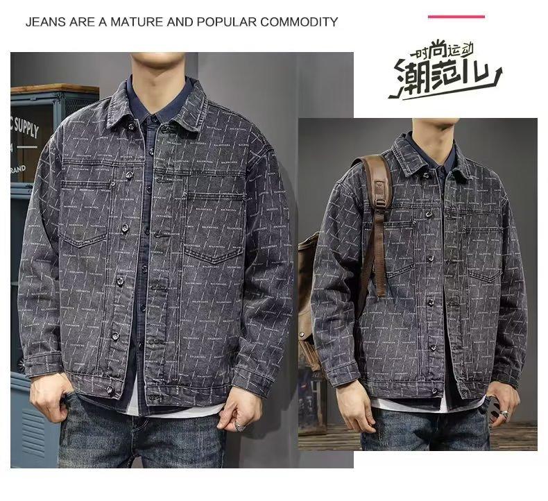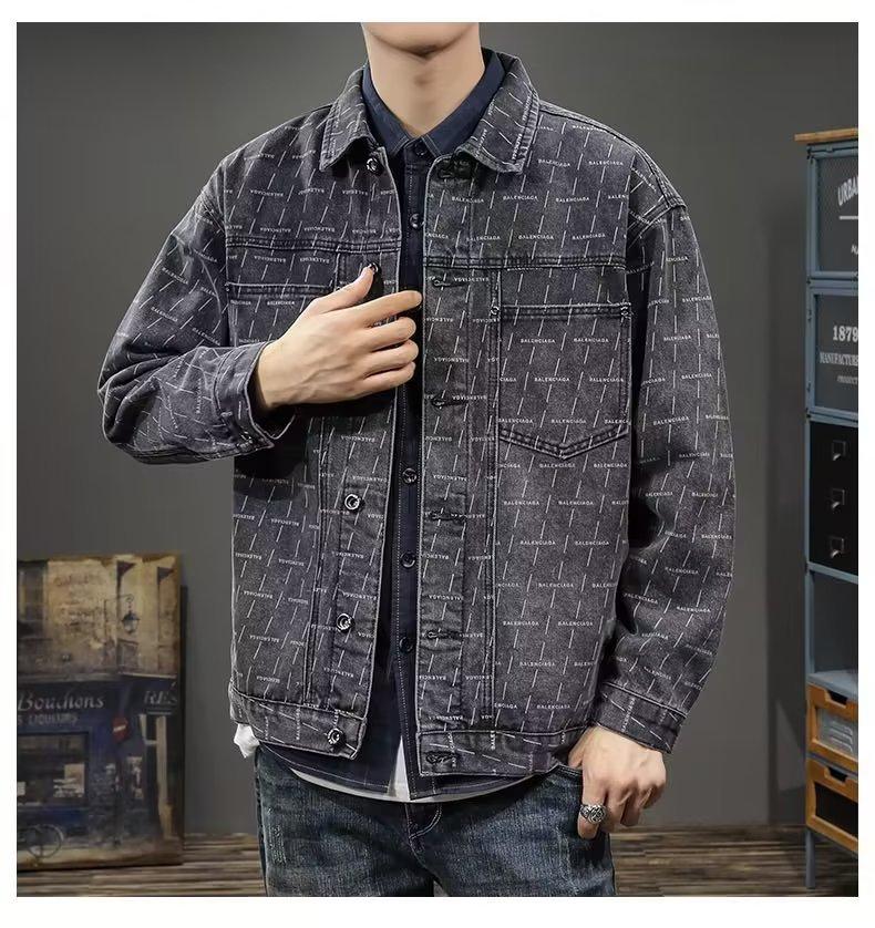 Chaqueta de mezclilla de primavera y otoño de nueva llegada para hombre, chaqueta suelta con solapas para jóvenes con estampado de cuadros, ropa de trabajo, moda coreana