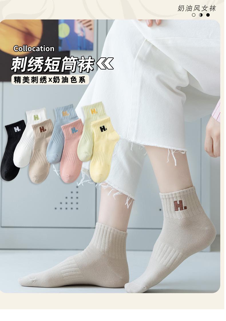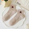 Calcetines de mujer, calcetines de primavera y verano, japoneses en línea, calcetines deportivos de jacquard de cintura roja, calcetines náuticos de algodón fino color crema, calcetines al por mayor