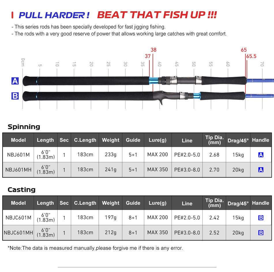NOEBY Nobi 200g-350g caña de placa de hierro configuración fuji caña de jigging caña de pesca de barco mero pistola dorada caña GT