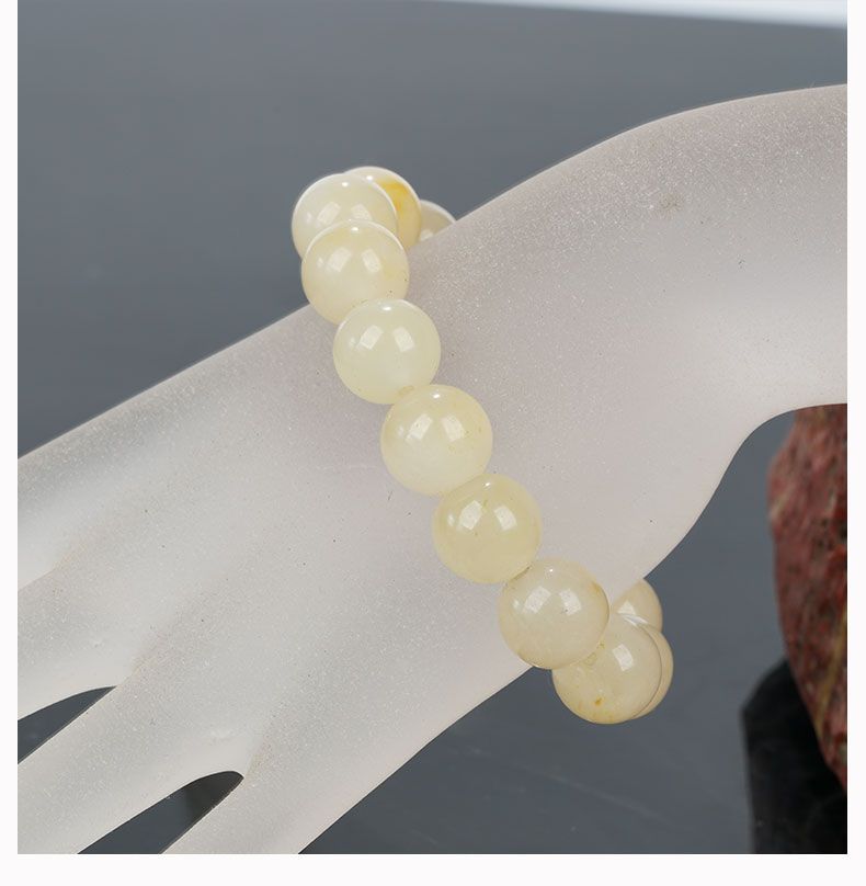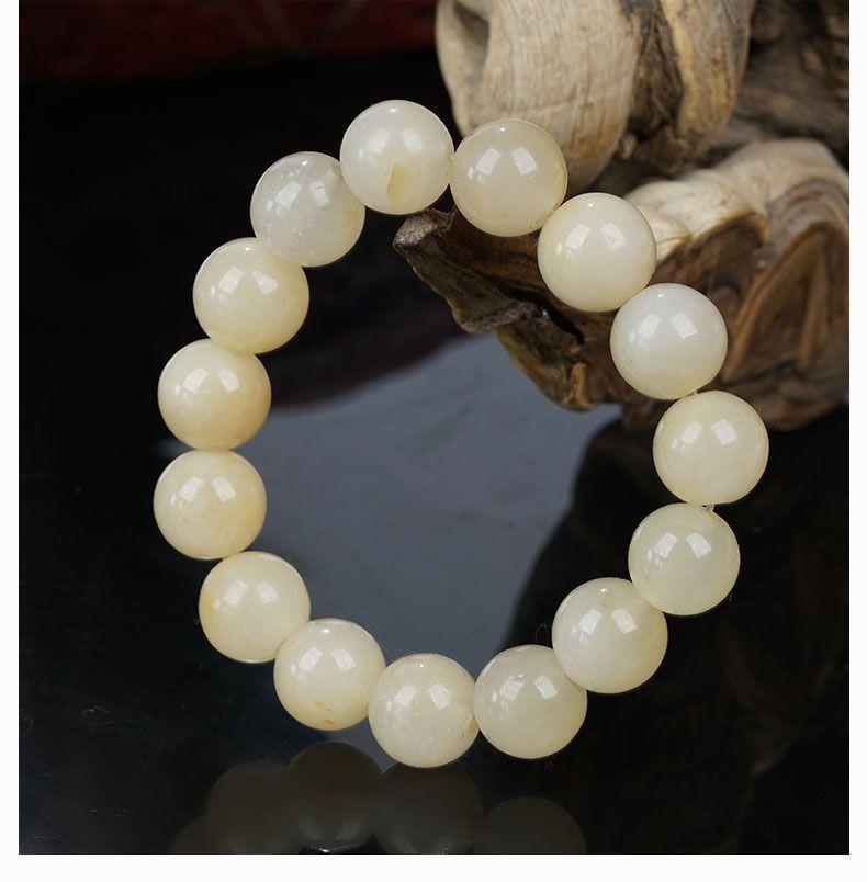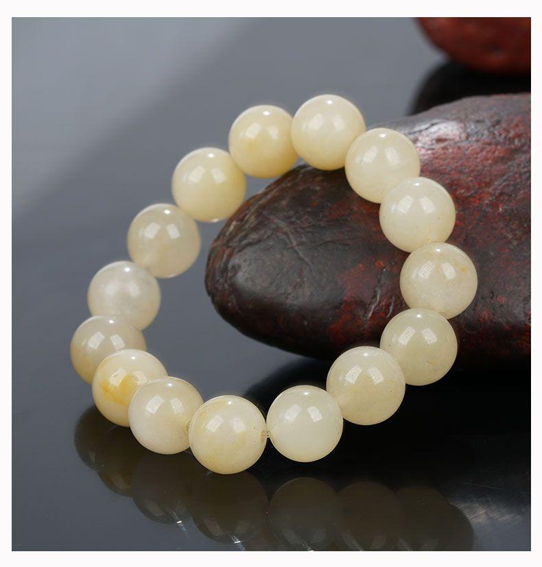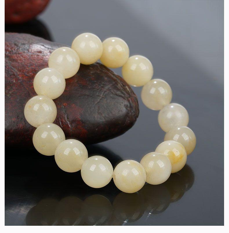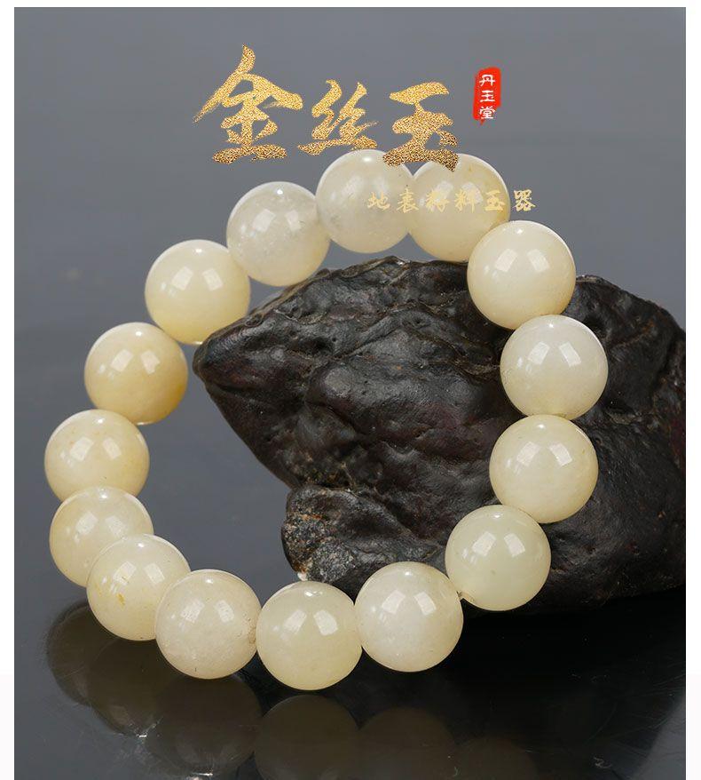 Pulsera Boutique de Jade Natural Xinjiang Jade Genuino Seda Dorada Cuentas Redondas de 12 mm Pulsera de Jade para Hombre y Mujer Jade Gobi Venta al por Mayor