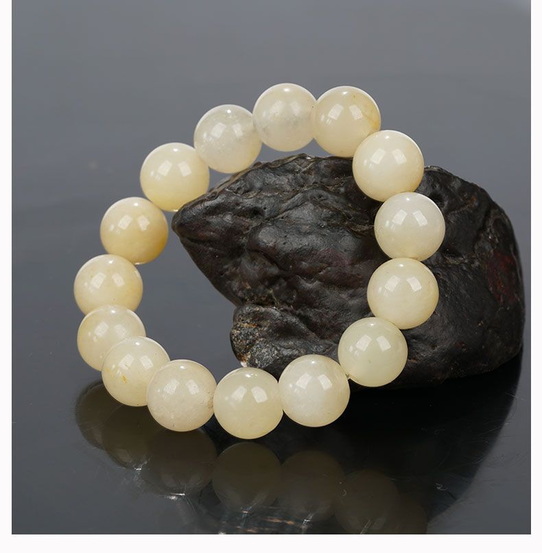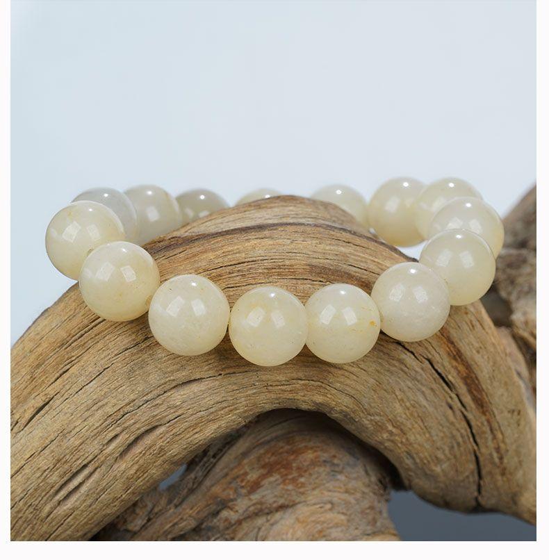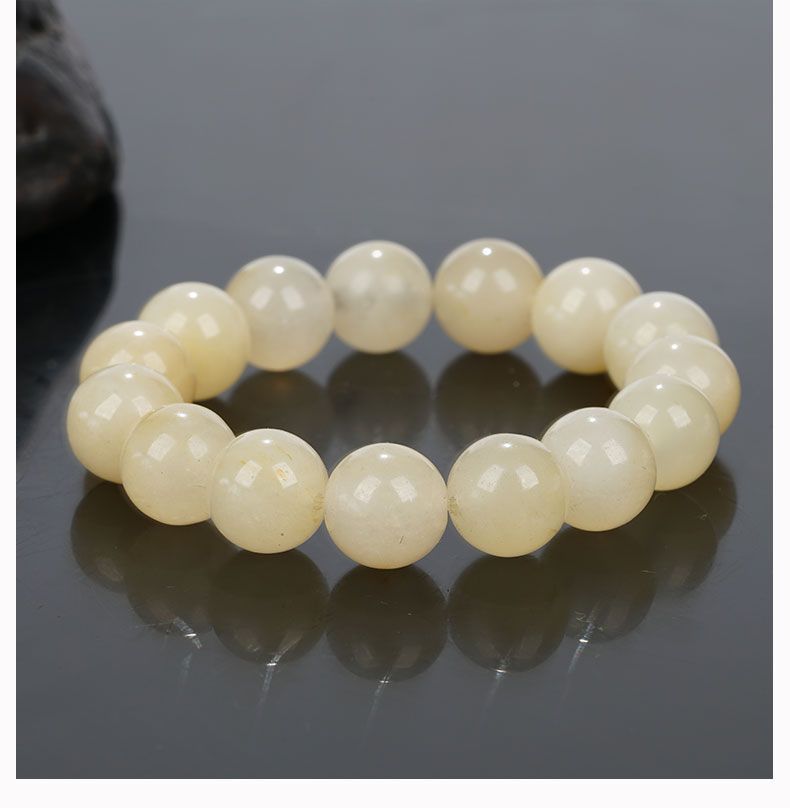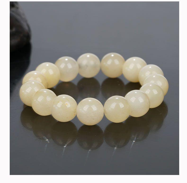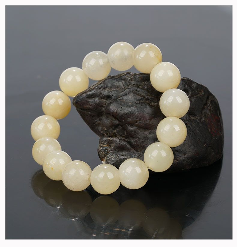 Pulsera Boutique de Jade Natural Xinjiang Jade Genuino Seda Dorada Cuentas Redondas de 12 mm Pulsera de Jade para Hombre y Mujer Jade Gobi Venta al por Mayor