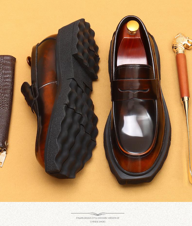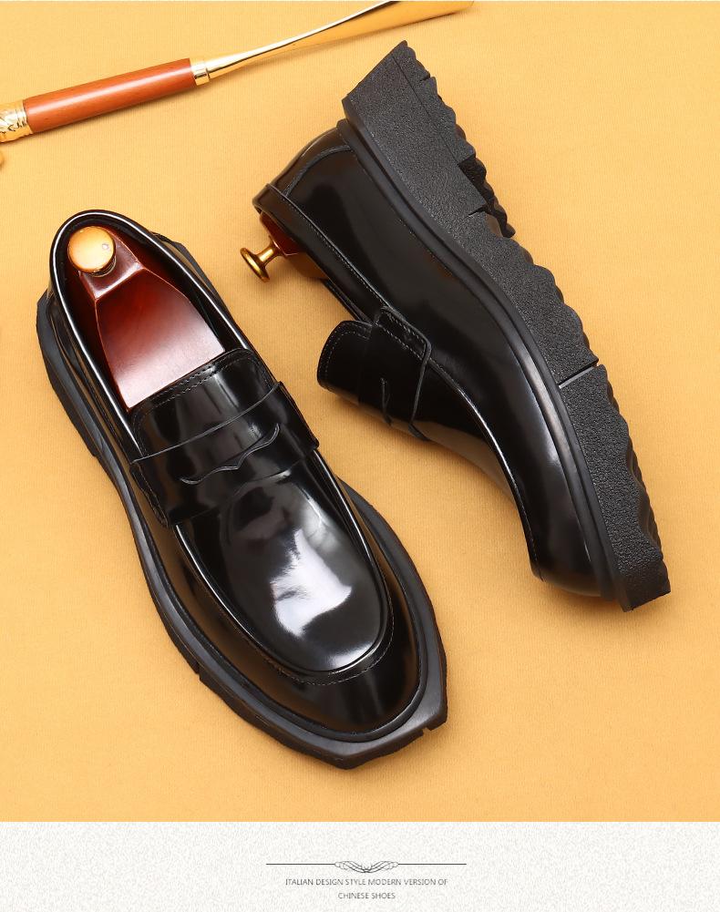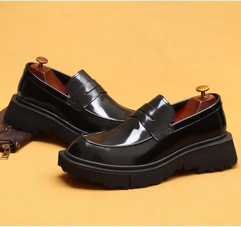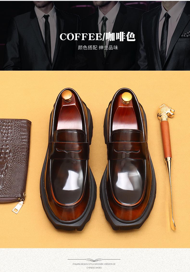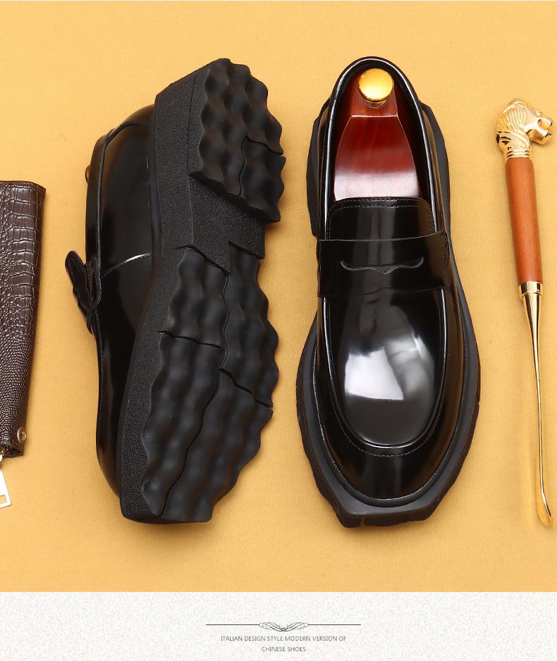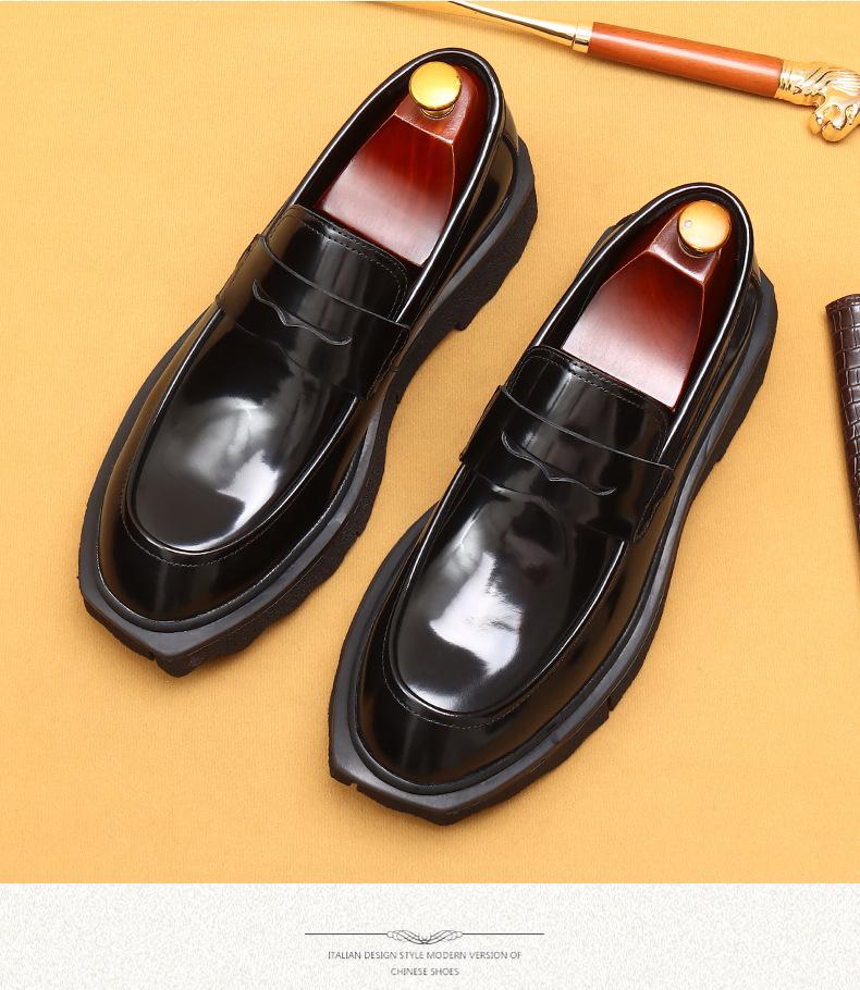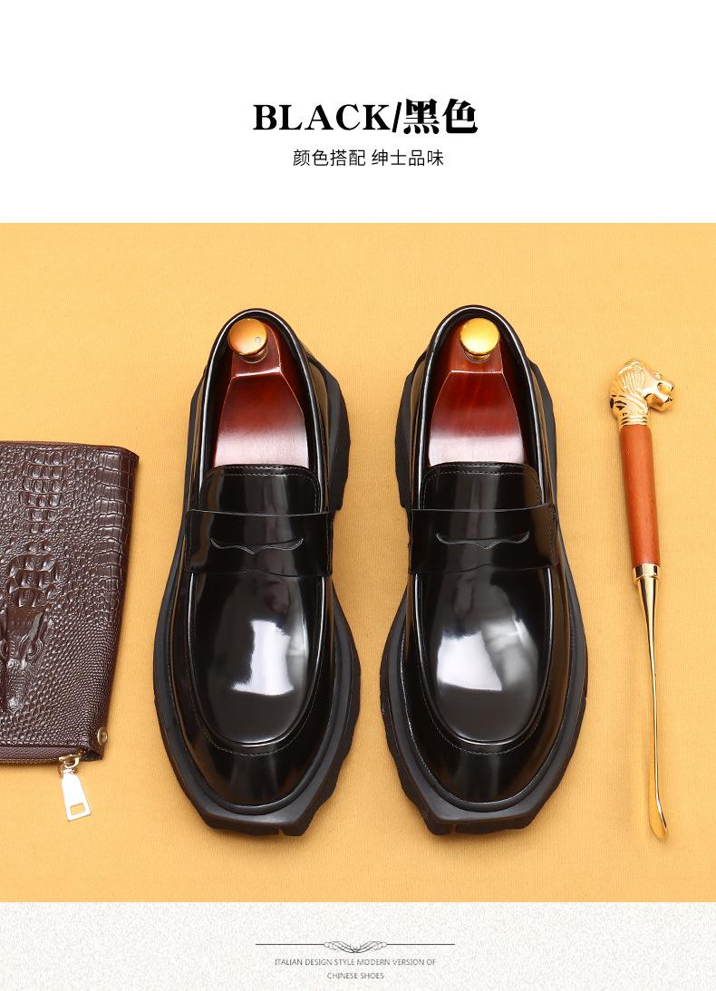 [vip para] zapatos de cuero con pedal para hombre, zapatos casuales de negocios de cuero suave, suela gruesa, mocasines británicos aumentados