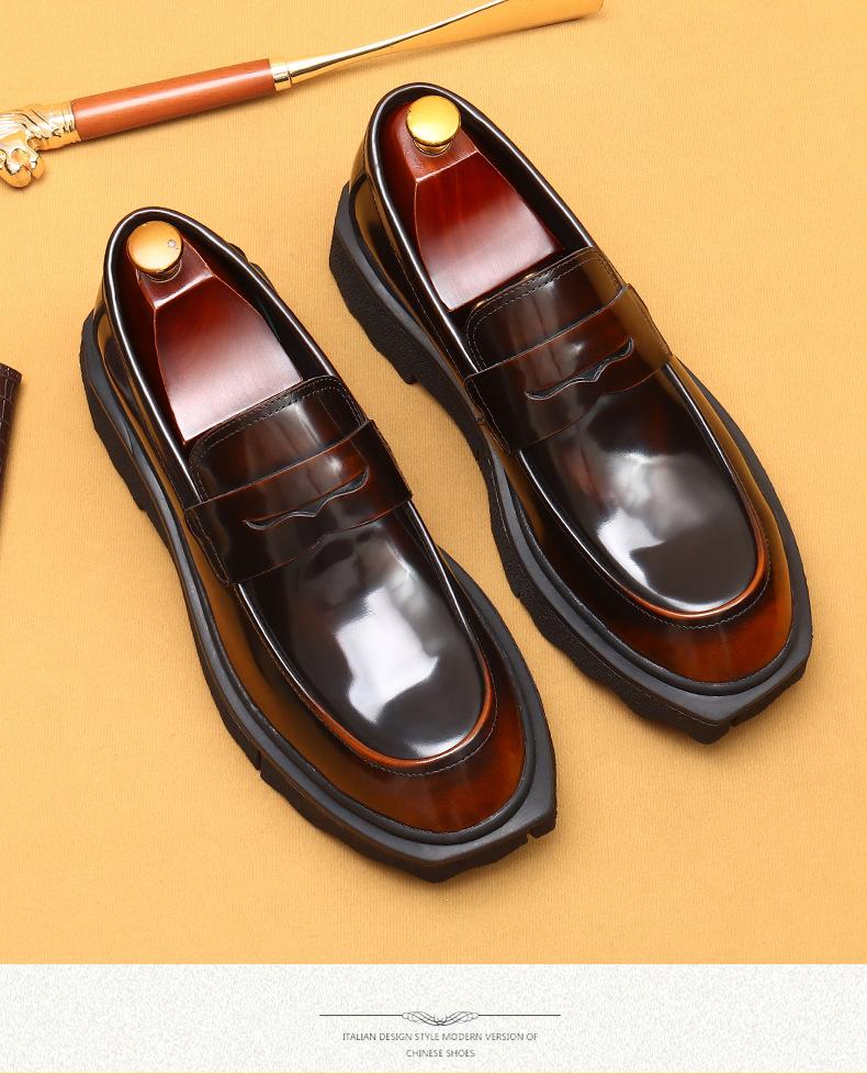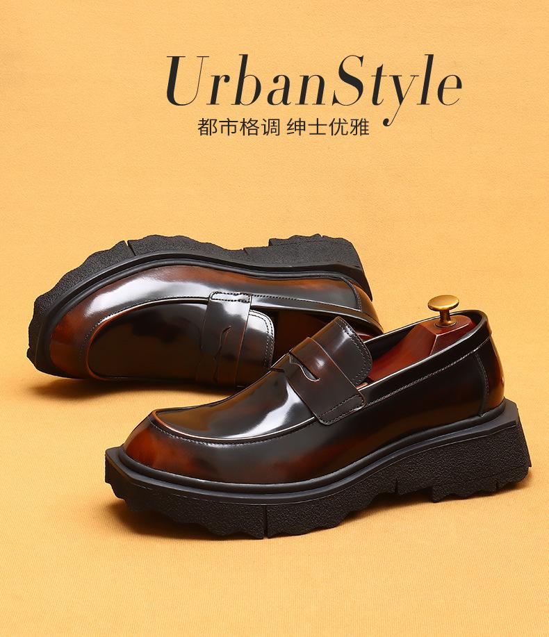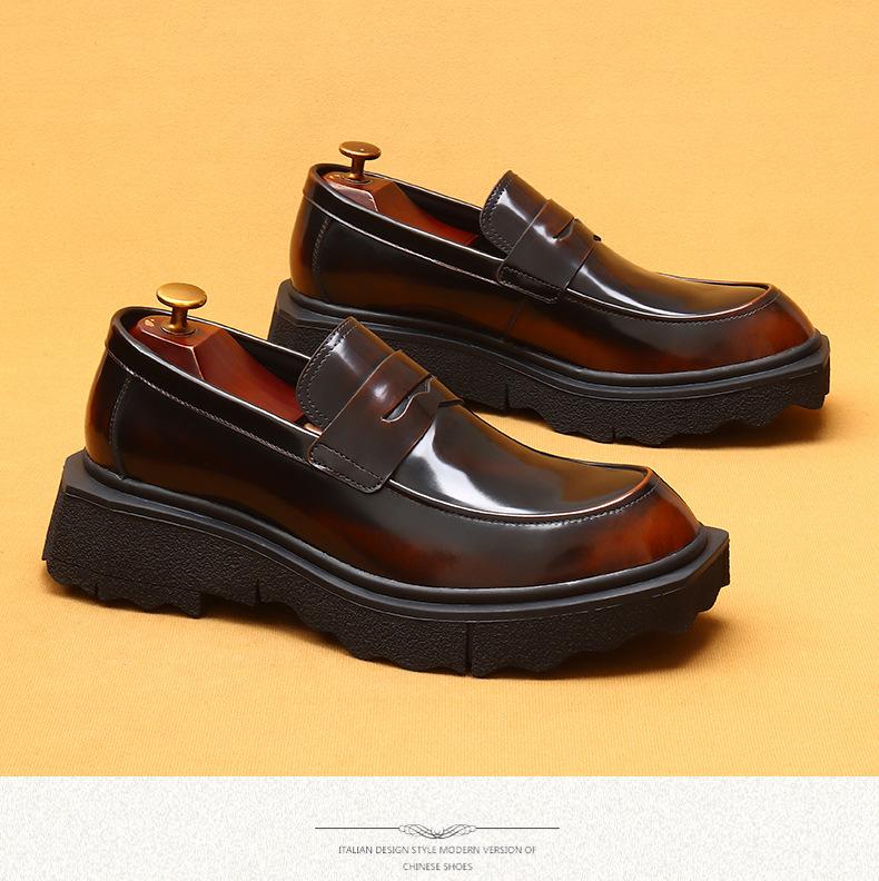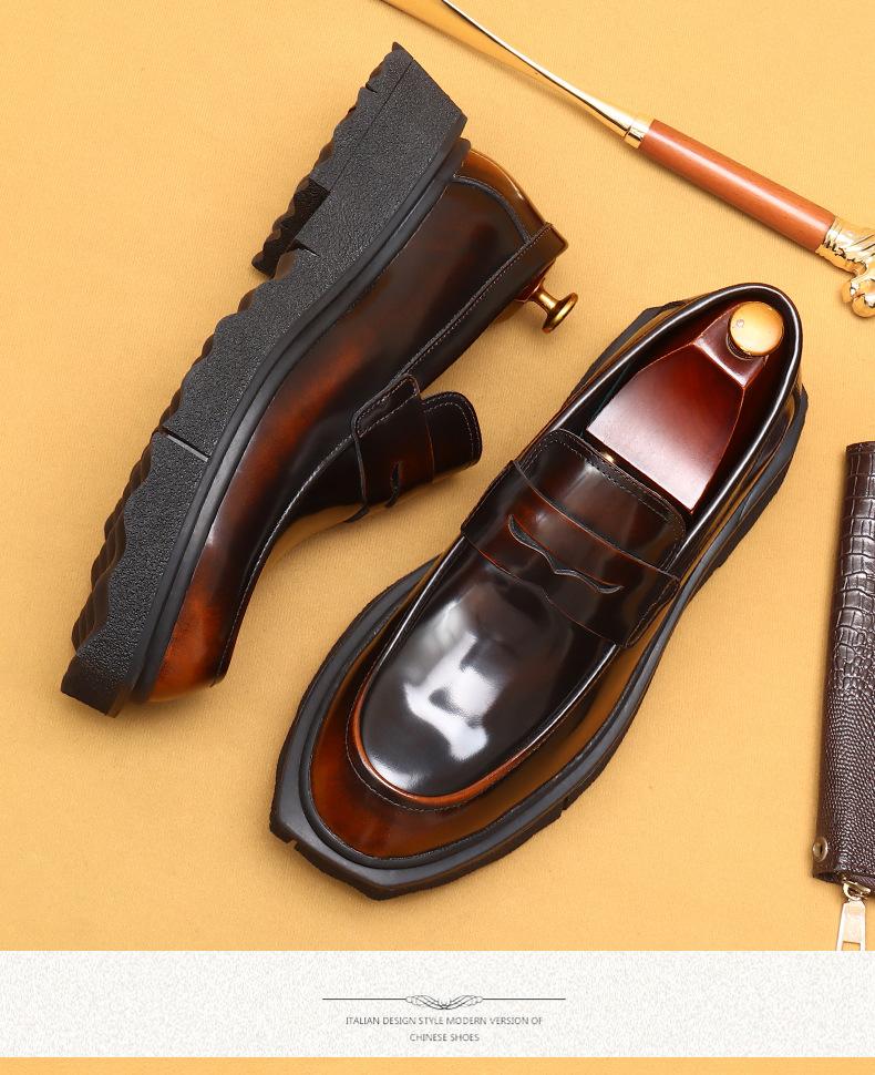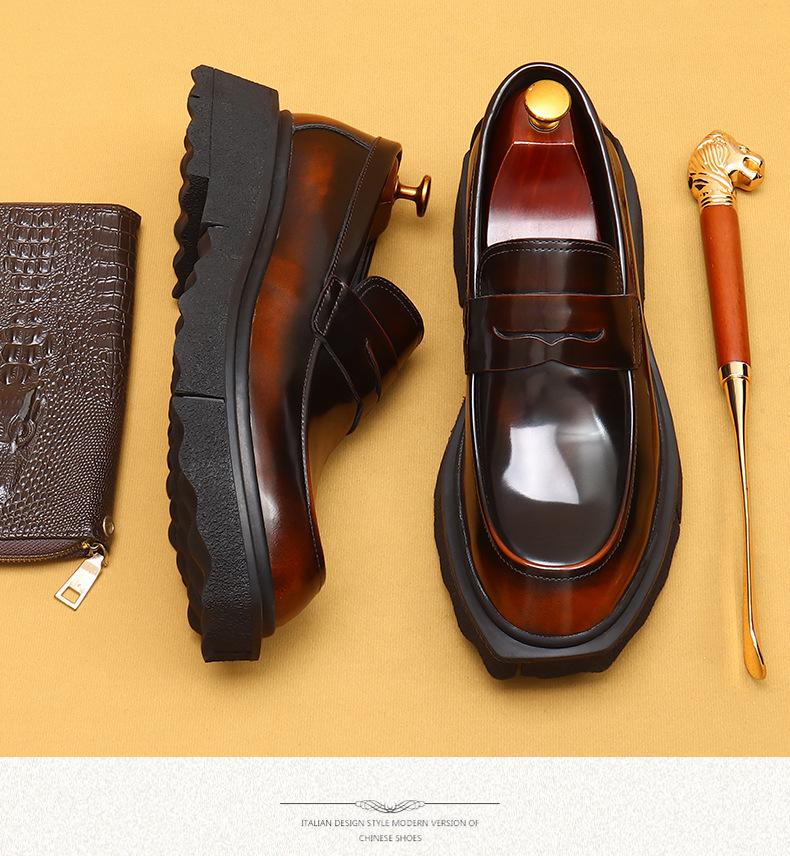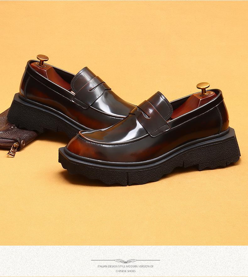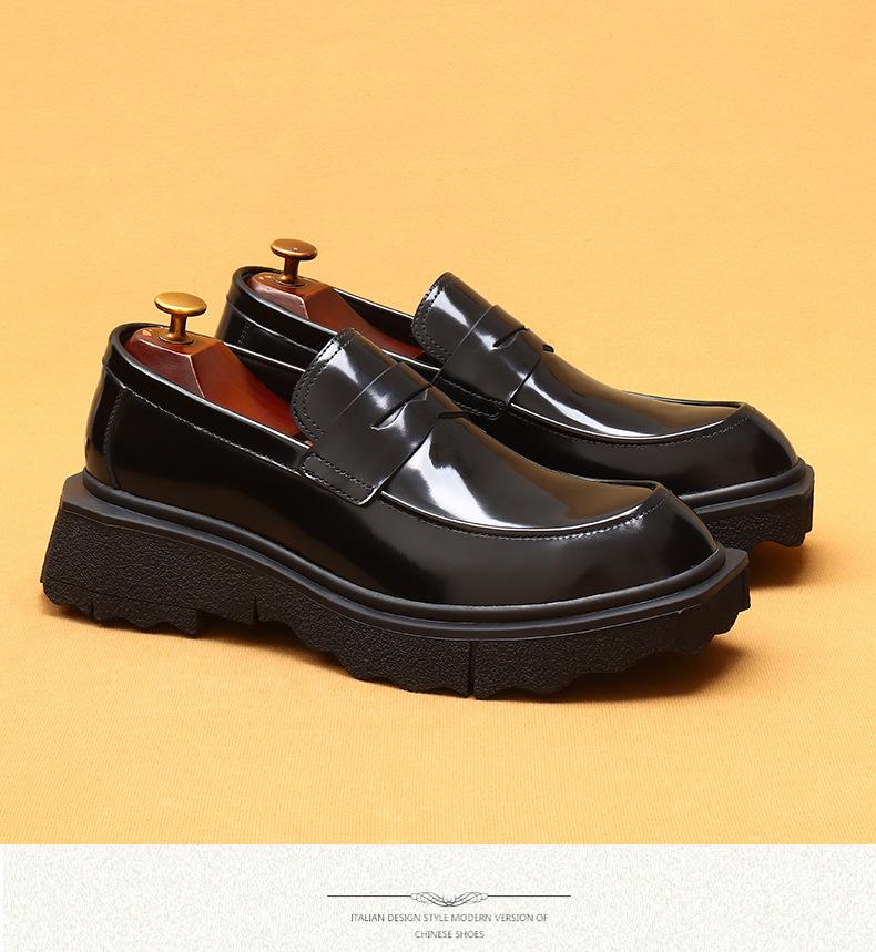 [vip para] zapatos de cuero con pedal para hombre, zapatos casuales de negocios de cuero suave, suela gruesa, mocasines británicos aumentados