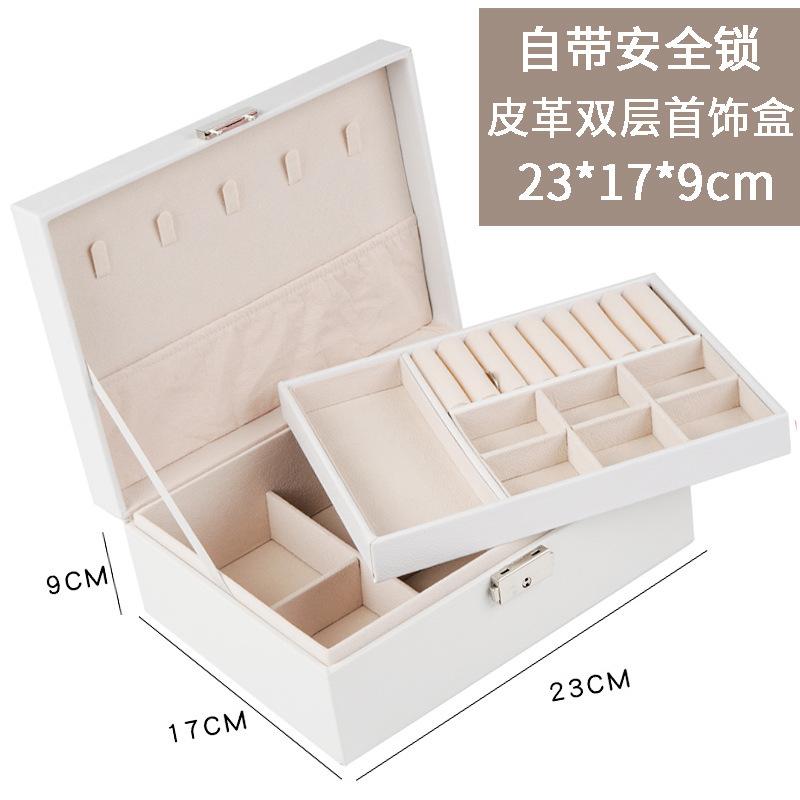 Joyero de cuero sintético de doble capa con cerradura, para guardar pendientes, anillos y joyas.