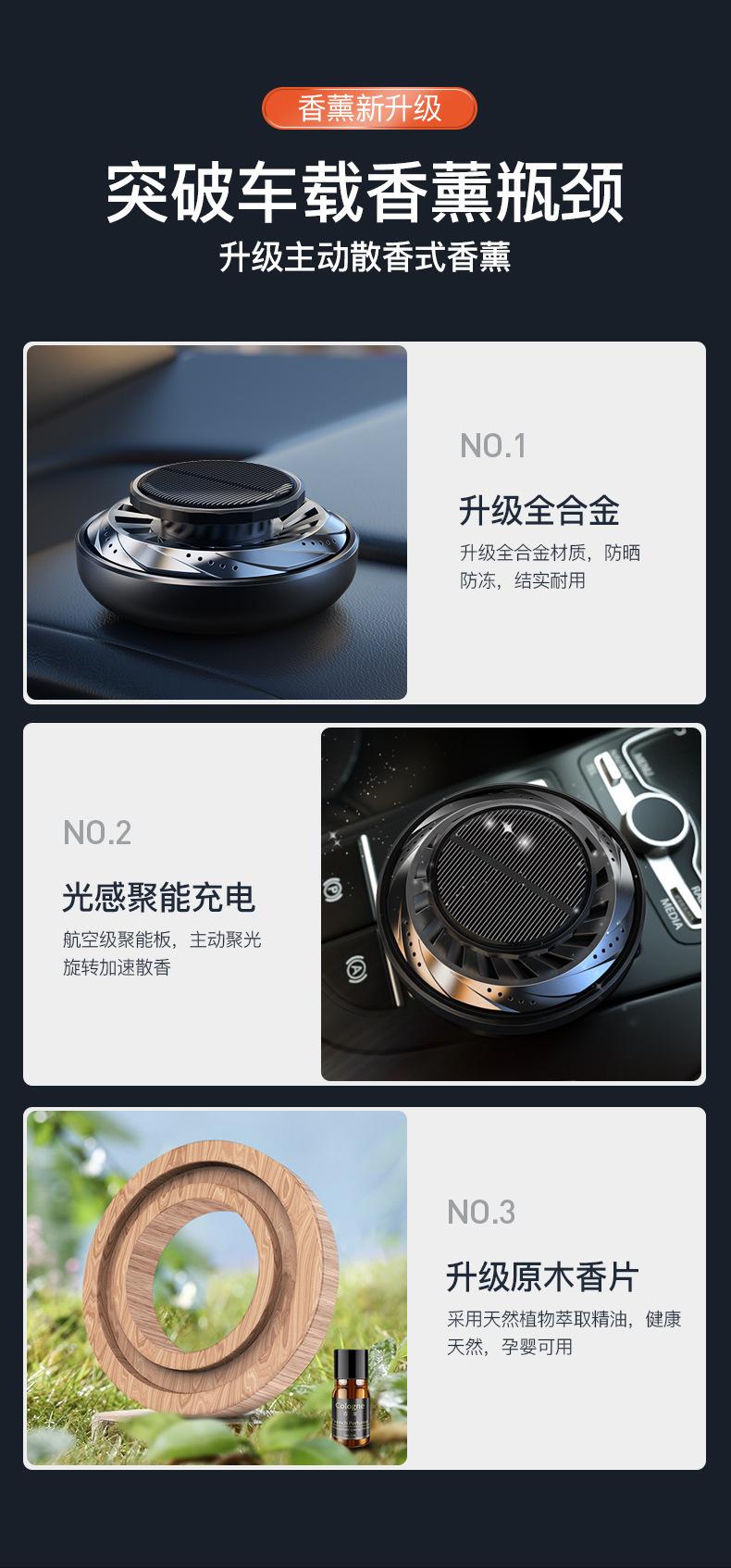 Aromaterapia solar giratoria para coche transfronteriza aleación de aluminio decoración para coche aromaterapia para coche fragancia duradera aromaterapia para coche