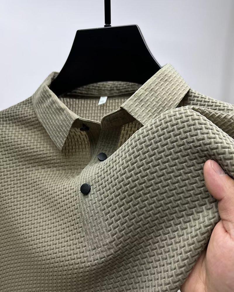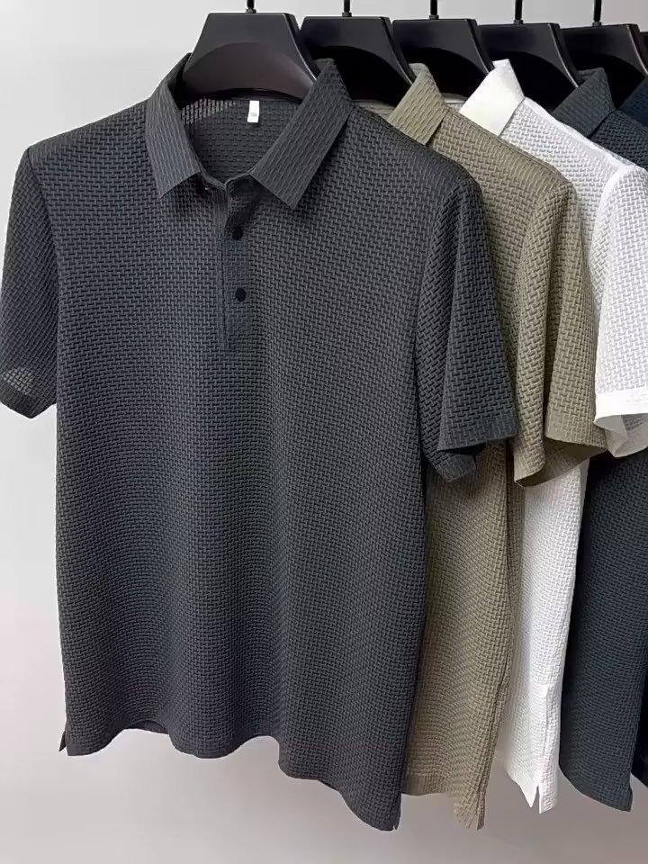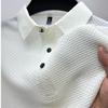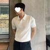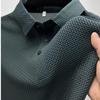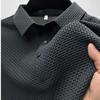 Camiseta de manga corta de seda helada de malla de moda para hombre, cuello de camisa, polo deslizante de color sólido de verano y otoño 2023, ropa de hombre de media manga
