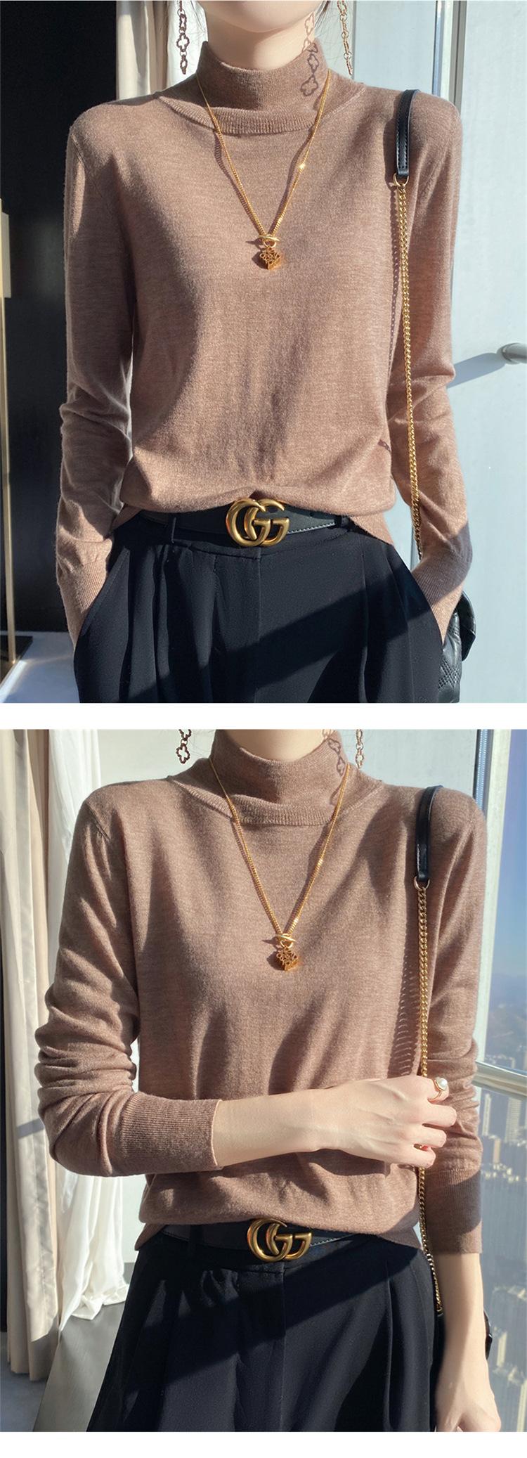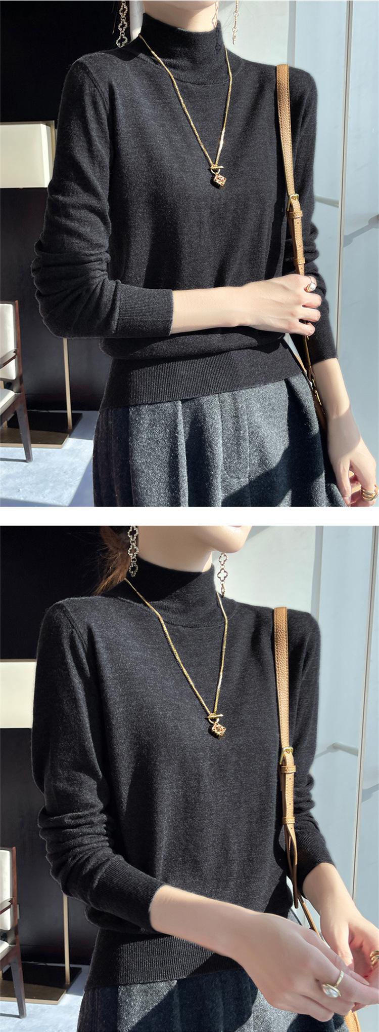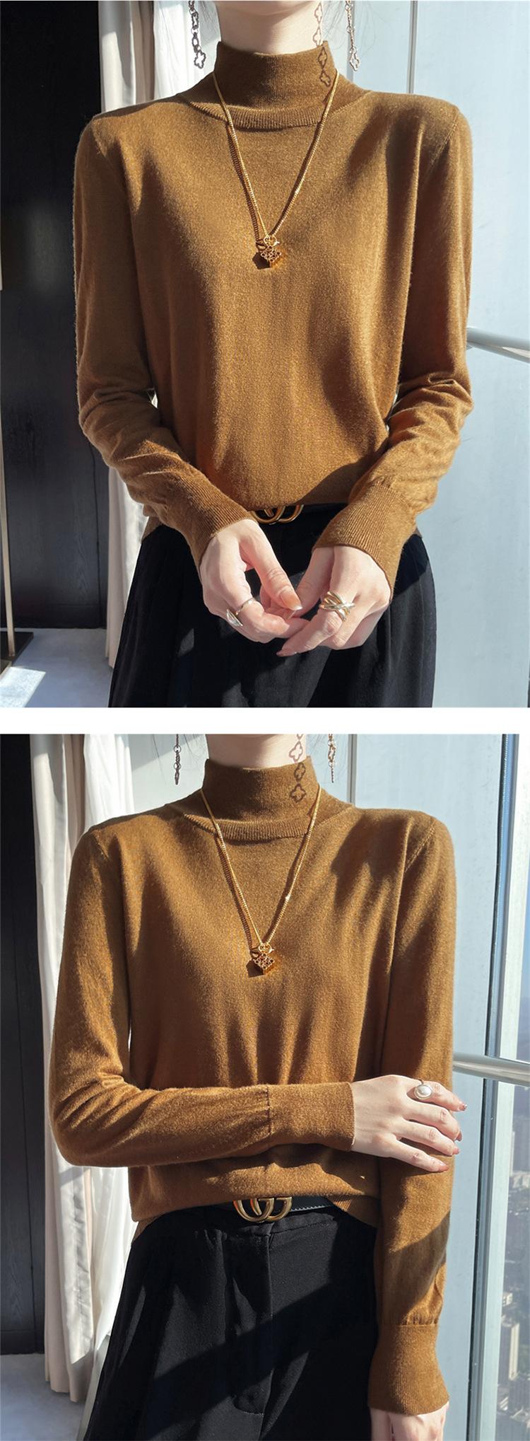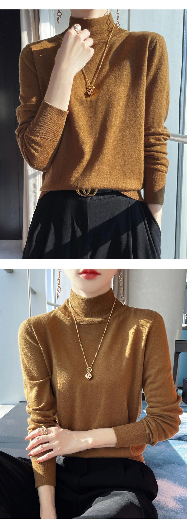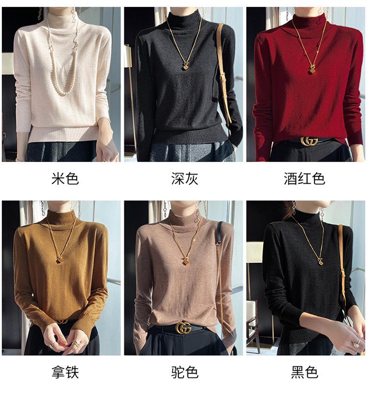 Camisa de punto de lana fina y peinada para otoño e invierno, jersey de cachemira cálido interior de corte entallado de cuello alto para mujer de 48"