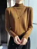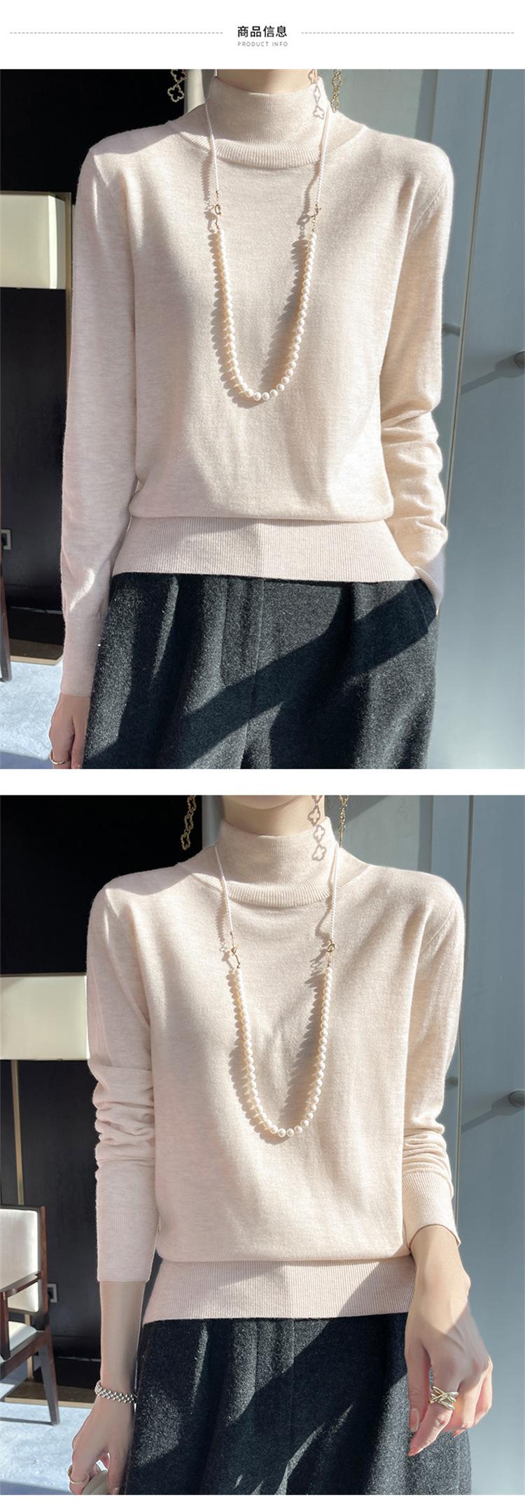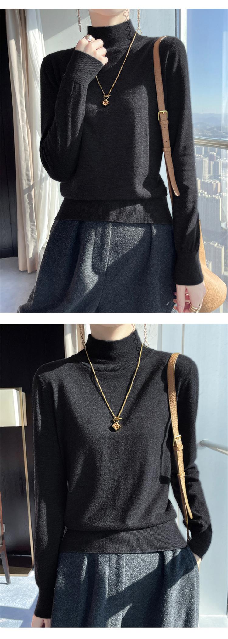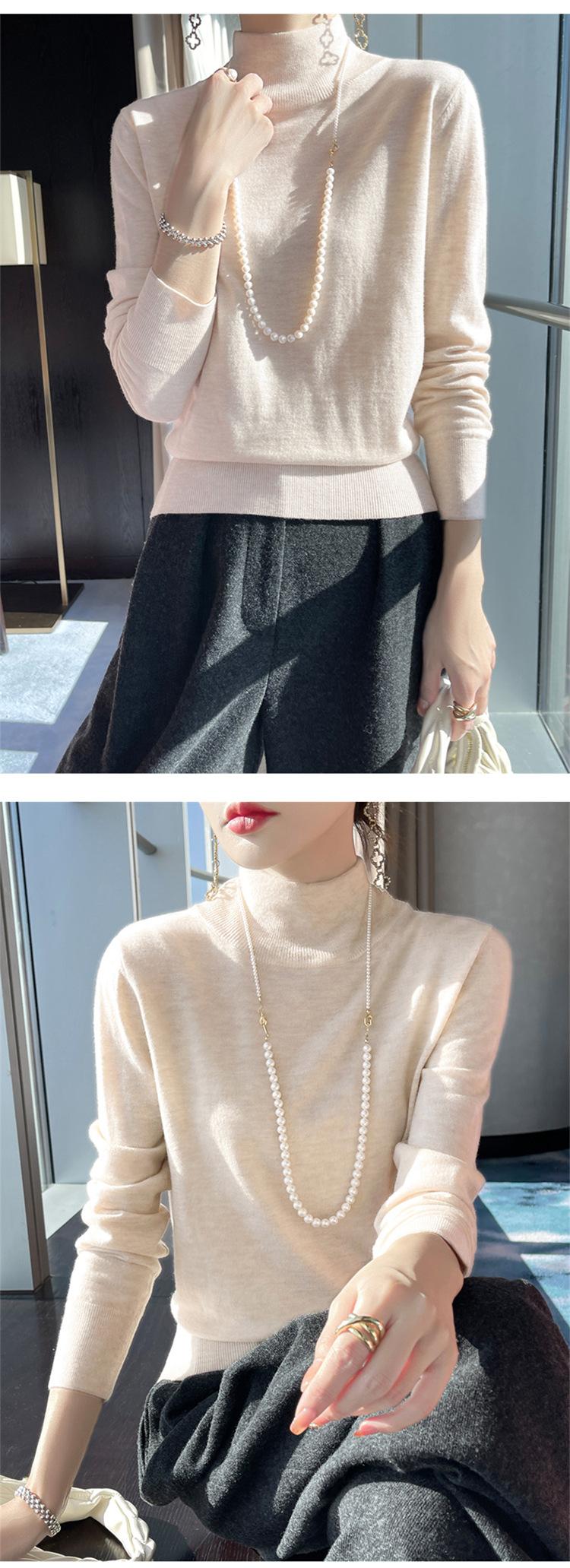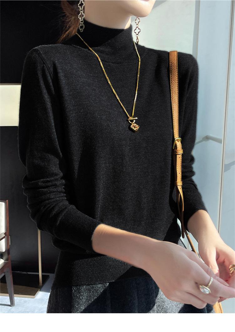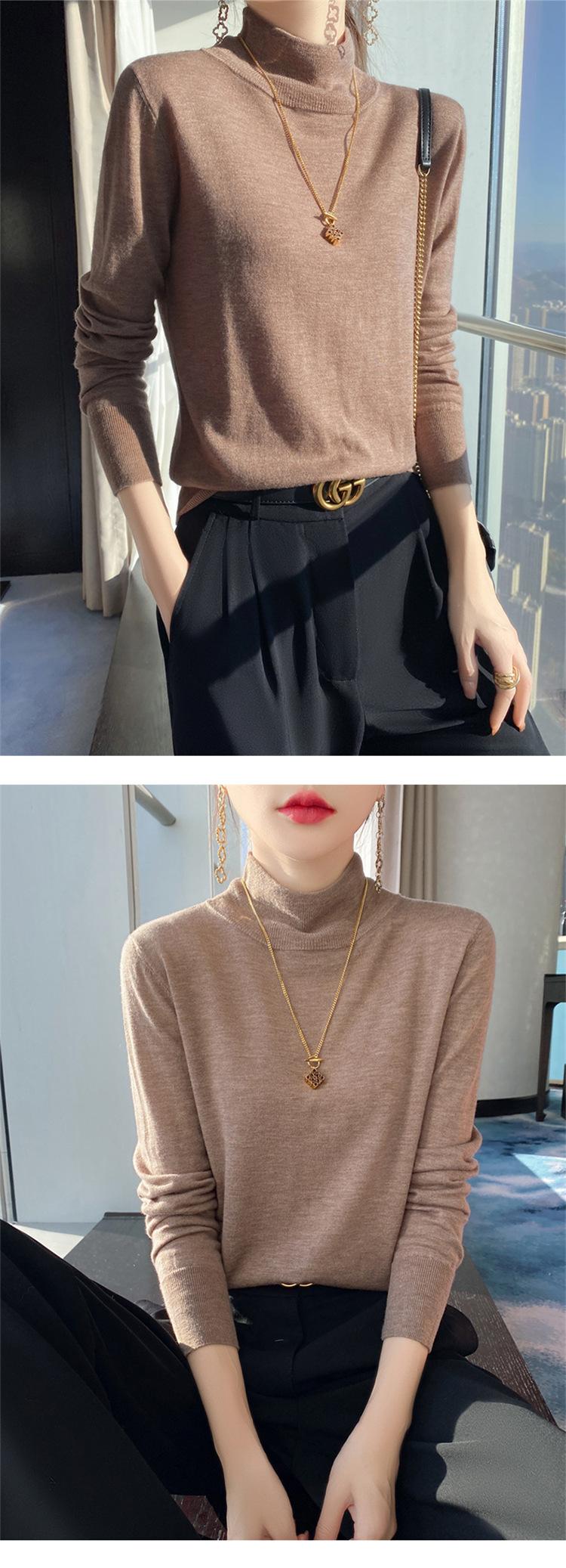 Camisa de punto de lana fina y peinada para otoño e invierno, jersey de cachemira cálido interior de corte entallado de cuello alto para mujer de 48"
