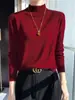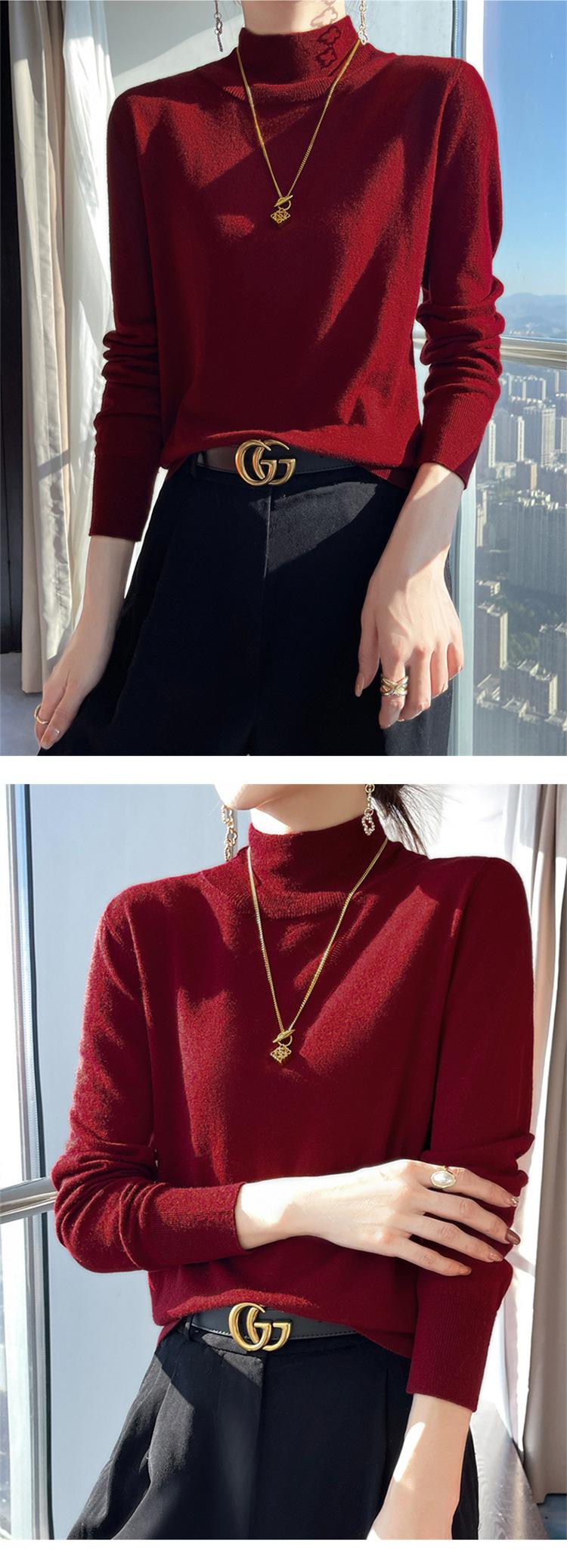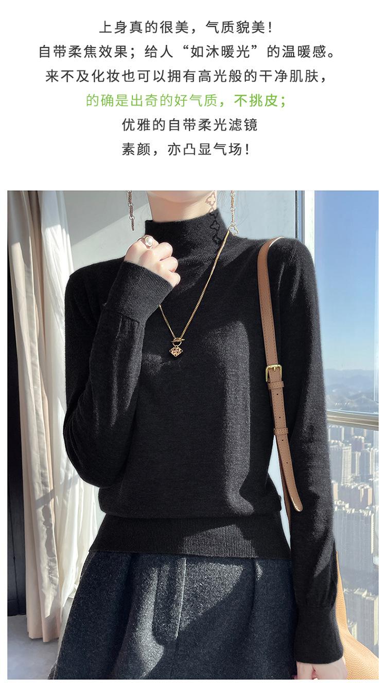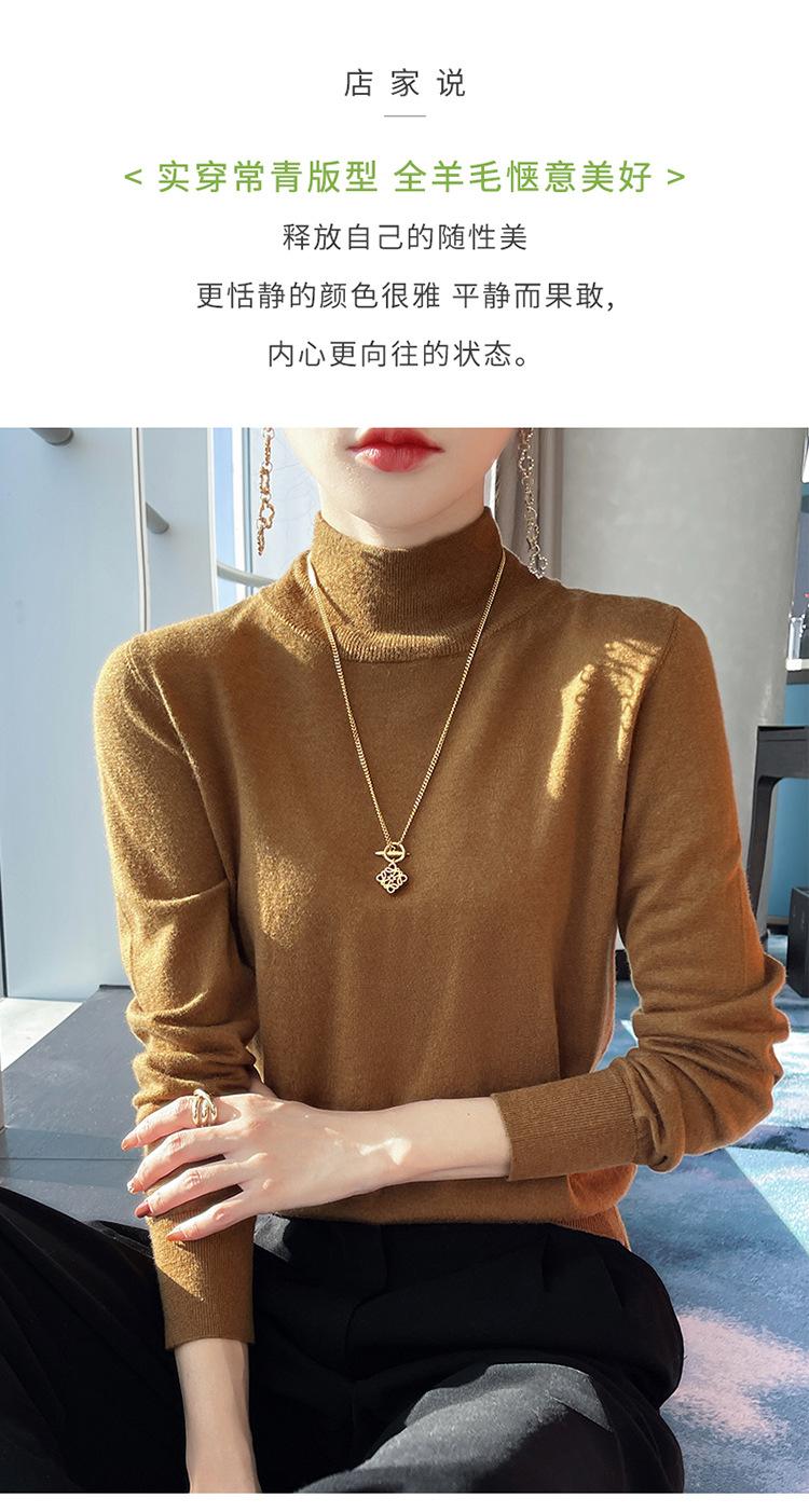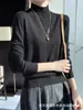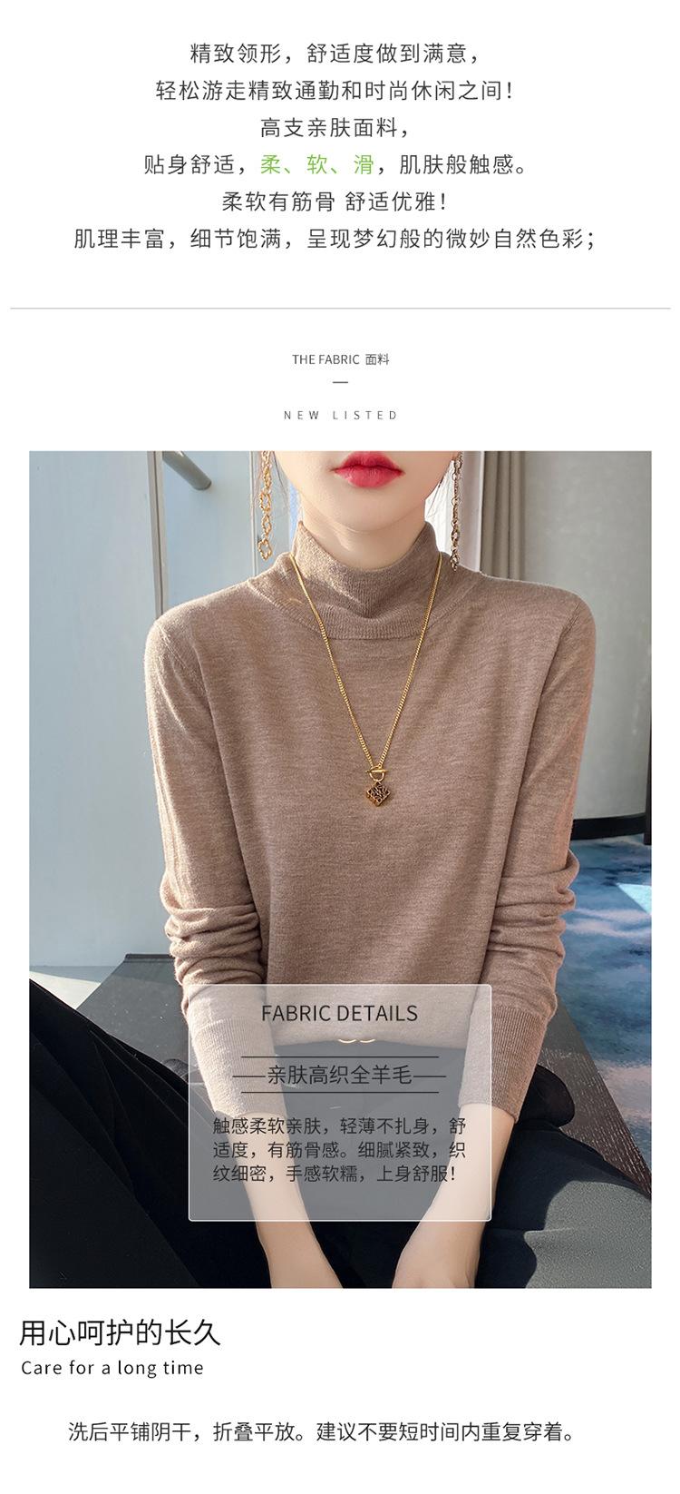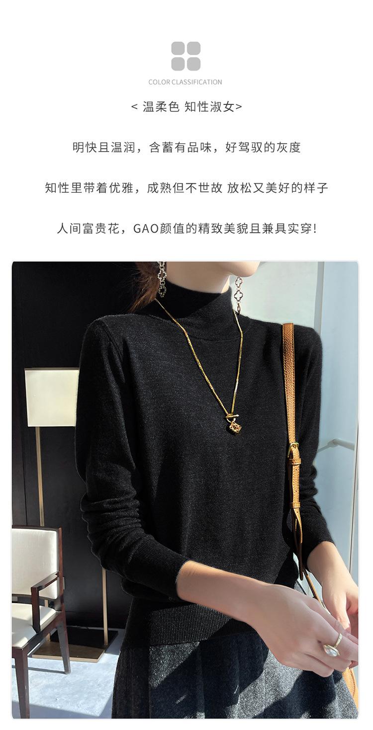 Camisa de punto de lana fina y peinada para otoño e invierno, jersey de cachemira cálido interior de corte entallado de cuello alto para mujer de 48"