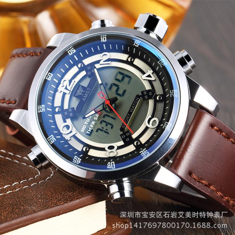 Reloj de moda AMST Aimee time genuino multifunción de doble pantalla para hombre y mujer, reloj de natación, reloj de montañismo, reloj para estudiantes 3015B