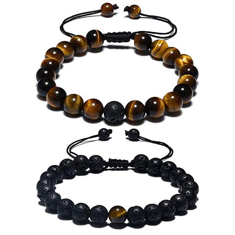 Pulsera para Hombre Amazon Explosions Piedra Ojo de Tigre Pulsera Tejida Obsidiana con Cuentas Pulsera Ajustable para Pareja