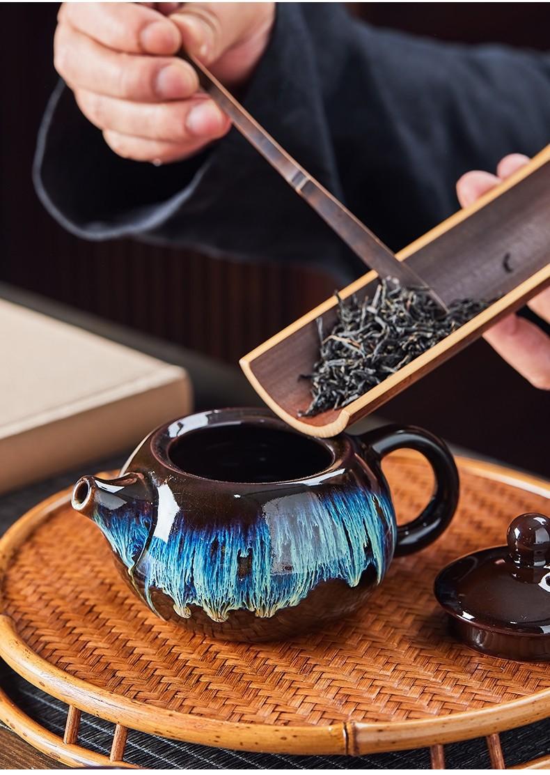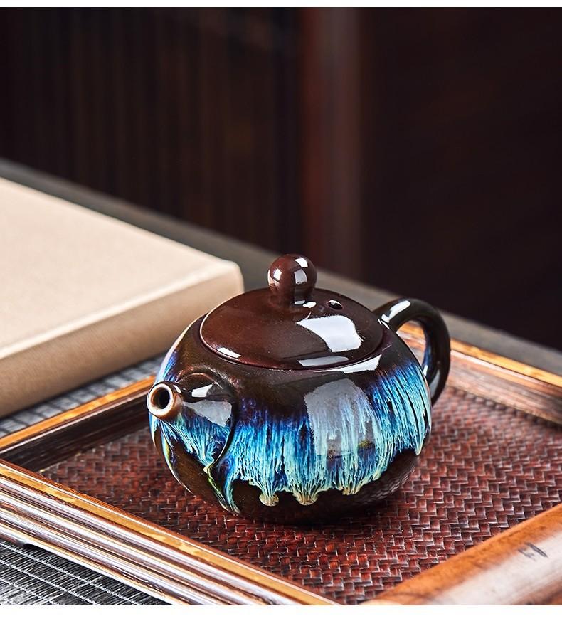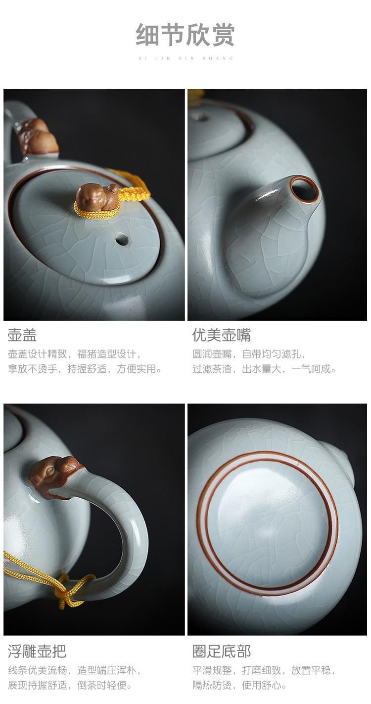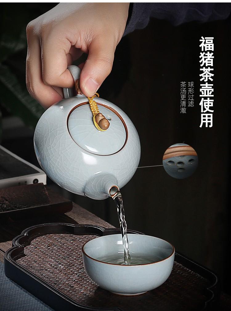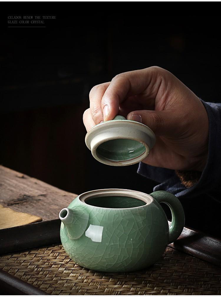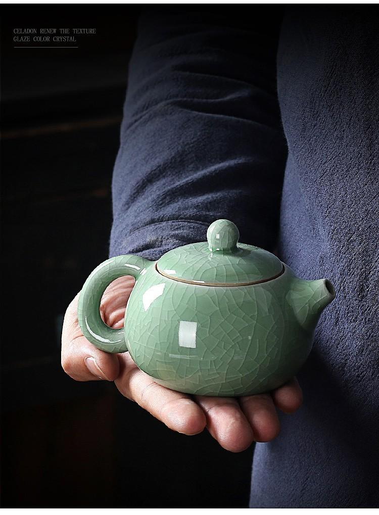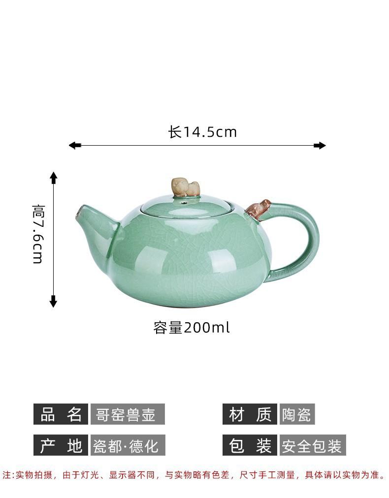 Tetera de cerámica para horno Ge, tetera pequeña con película abierta, tetera de porcelana Ru kung fu para té negro, tetera de película abierta para el hogar, tetera individual Xi Shi