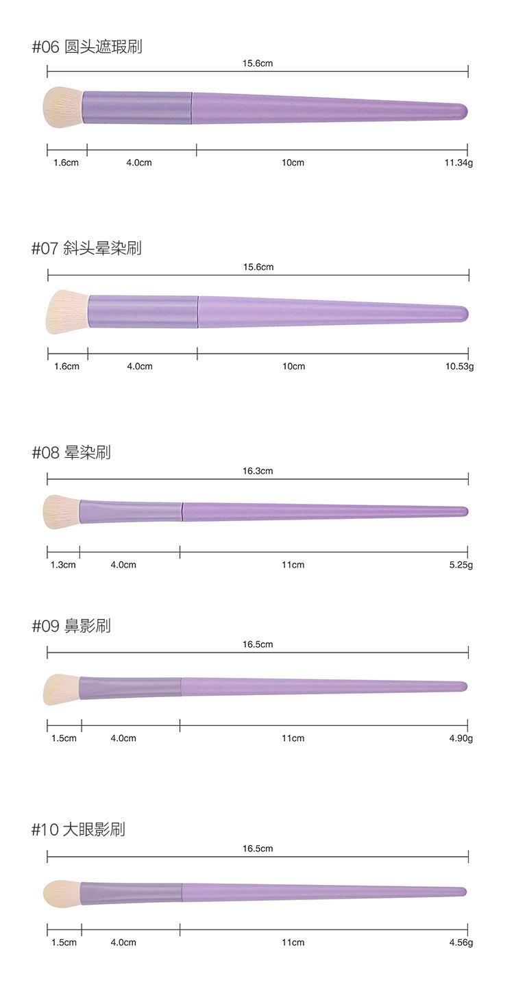 Eleven purple brush sets, loose paint brush, Repair brush, Tongue type foundation brush, bevel foundation brus...