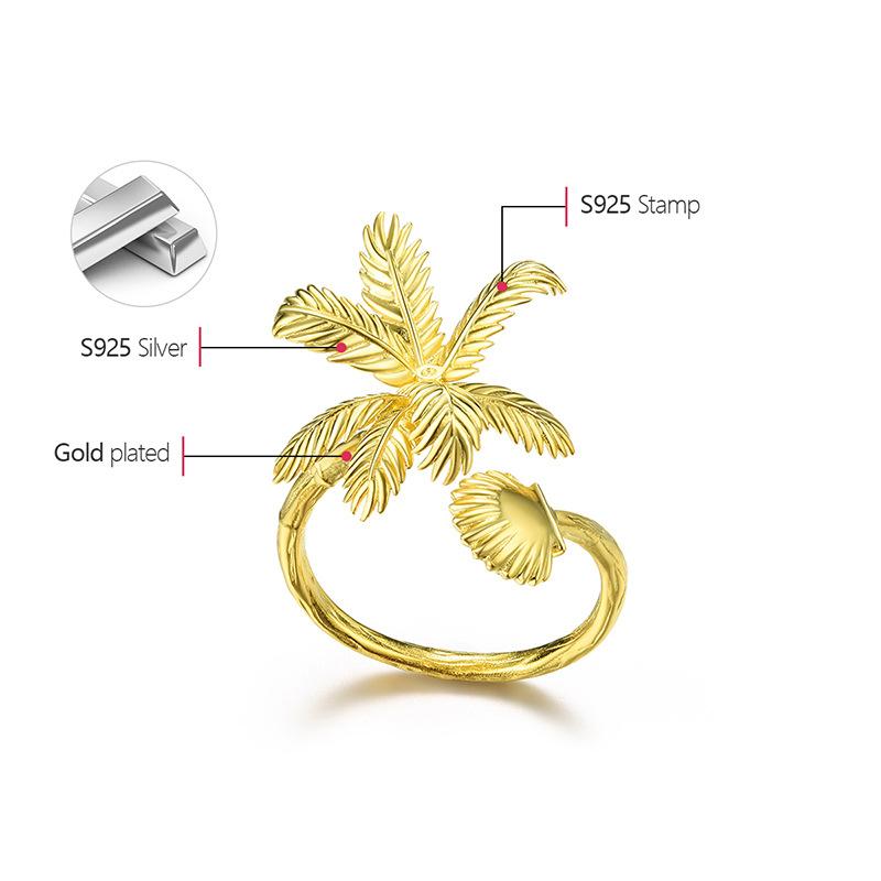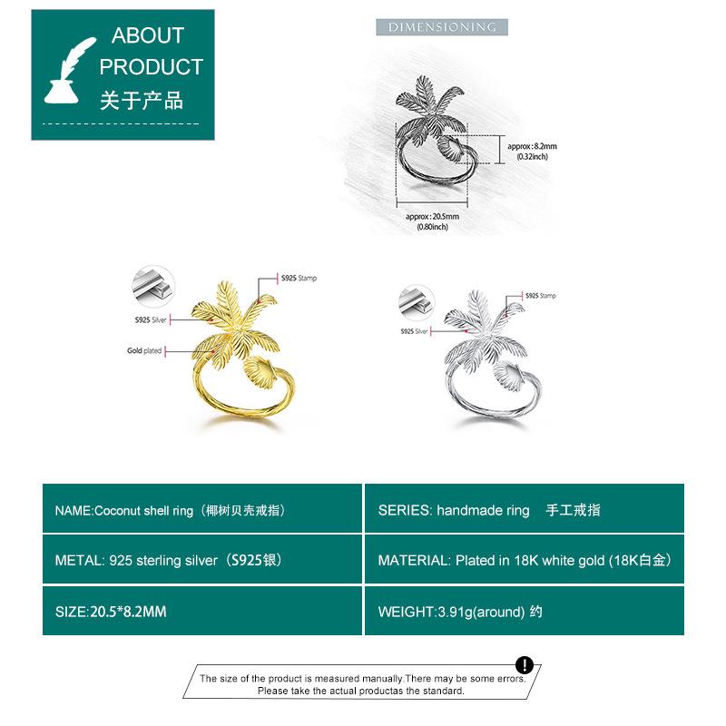 Material: Plata de ley S925 chapada en oro de 18K/plata, incrustada con anillo de concha de coco, el anillo interior está marcado con S925.