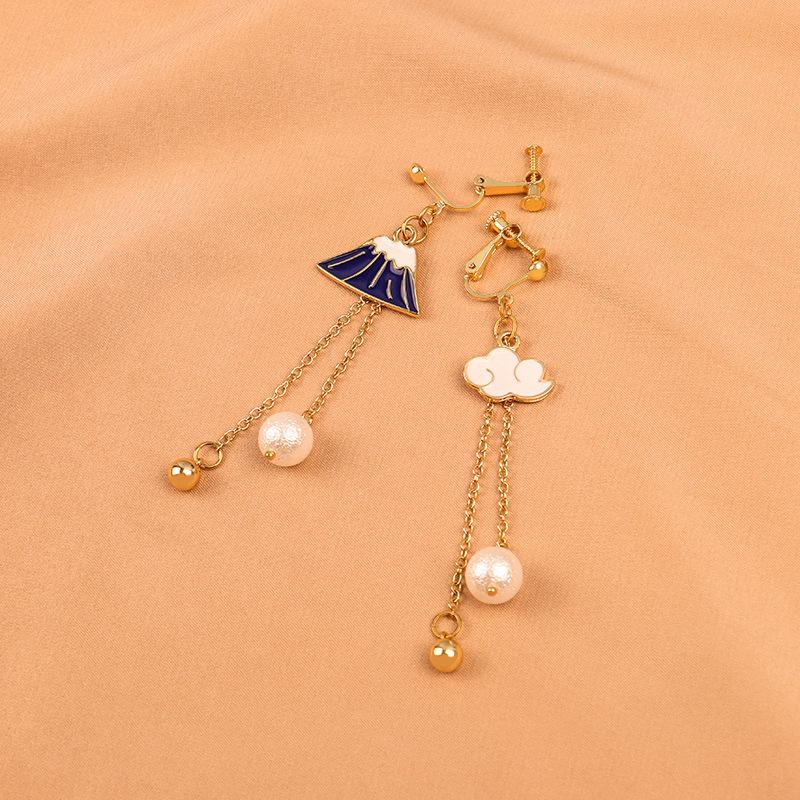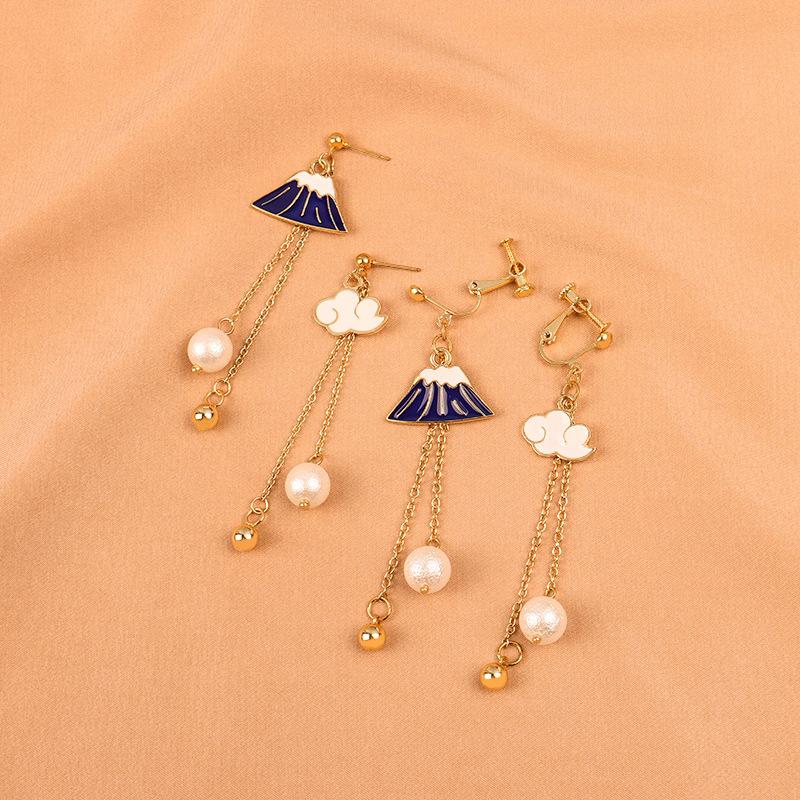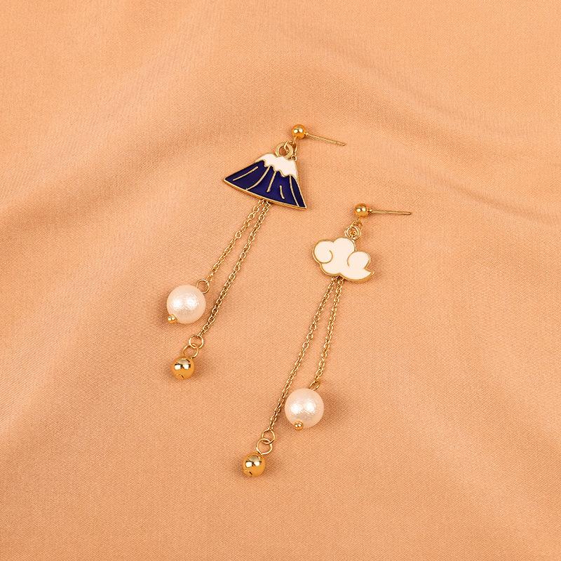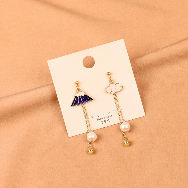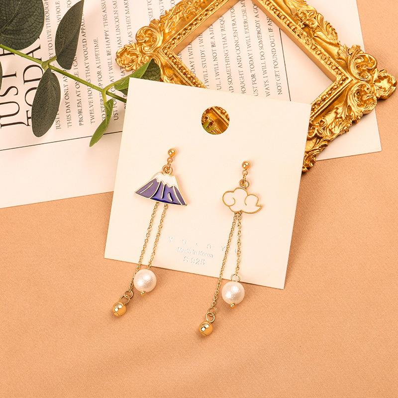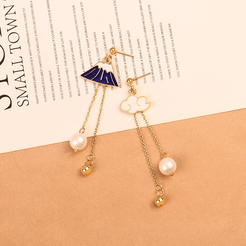 Nuevos Aretes Asimétricos Simples Elegantes Montaña de Nieve Distintivos Combinan con Todo Aretes de Borla Aretes de Perlas Aretes 351
