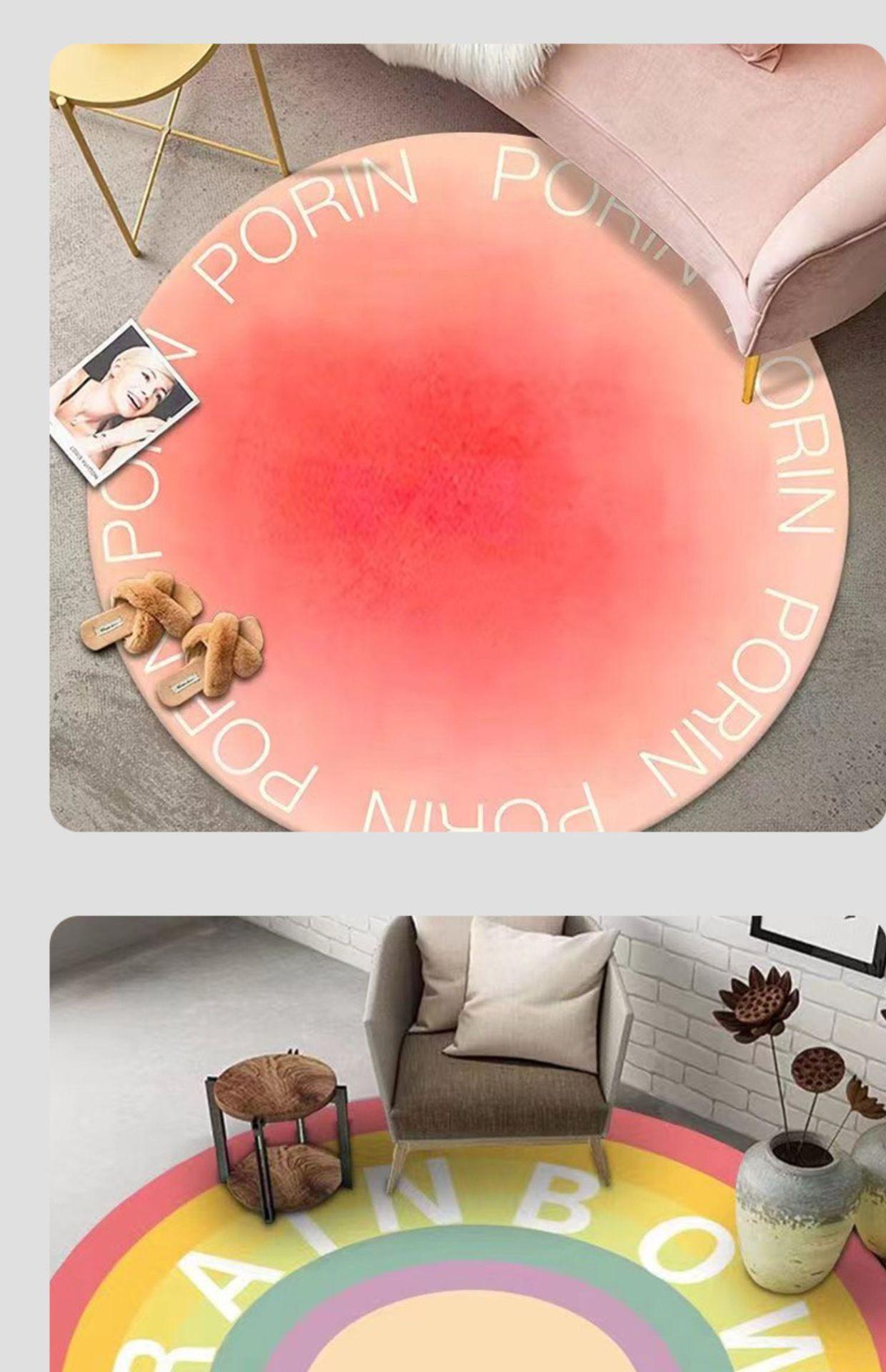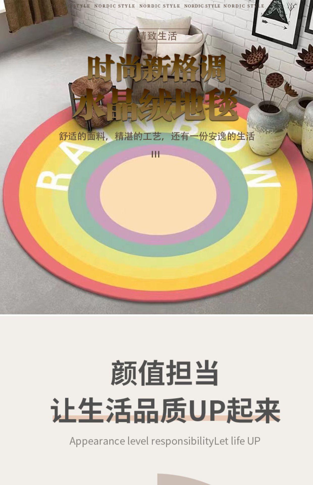 Alfombra redonda de terciopelo de cristal para sala de estar, estilo arcoíris, lavable, para dormitorio, para sentarse y acostarse, manta fresca y antideslizante