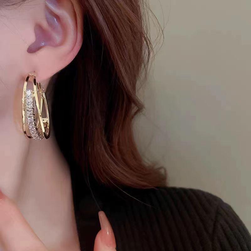 Nuevos Aretes de Aro de Moda Diseño Nicho Versátiles Aretes de Lujo Ligero Aretes de Alta Gama Venta al por Mayor