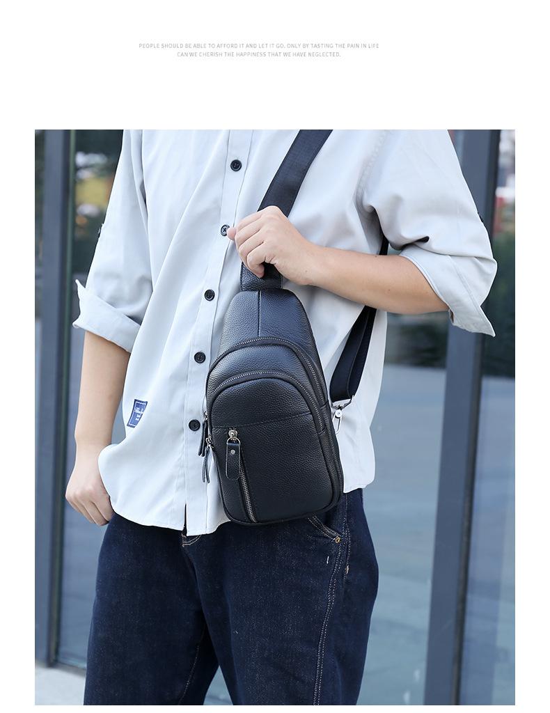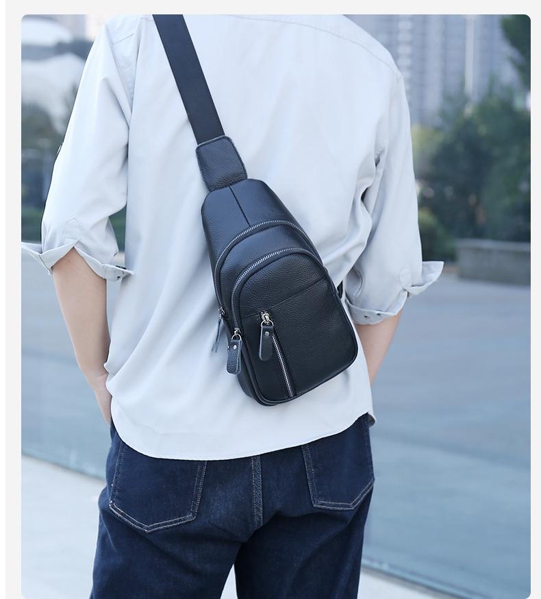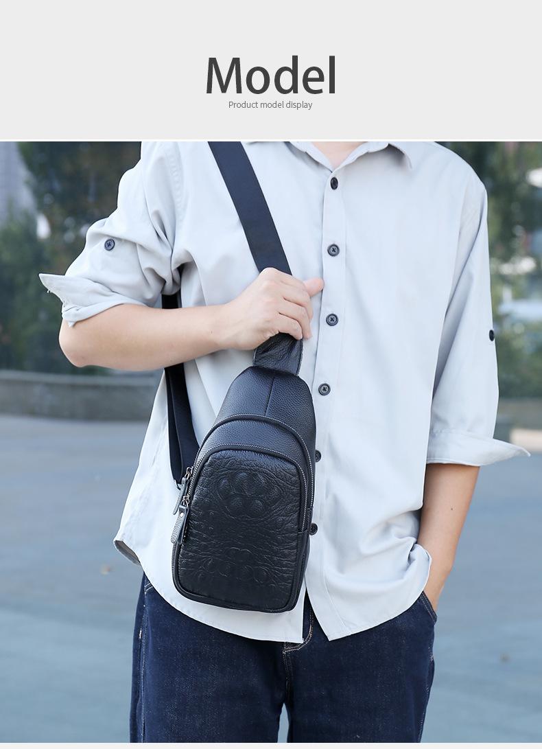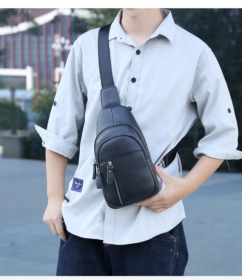 Nueva Bolsa de Pecho Casual para Hombre de Cuero Genuino, Venta al por Mayor de Bolso Bandolera de Cuero Vacuno de Primera Capa, Bolso de Hombro Retro para Hombre