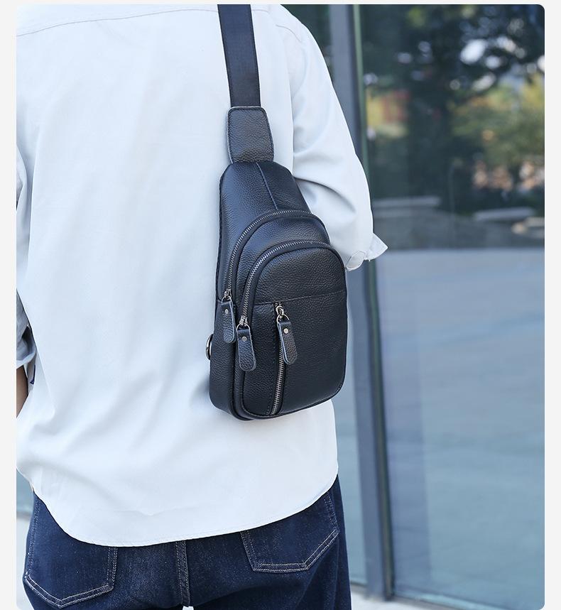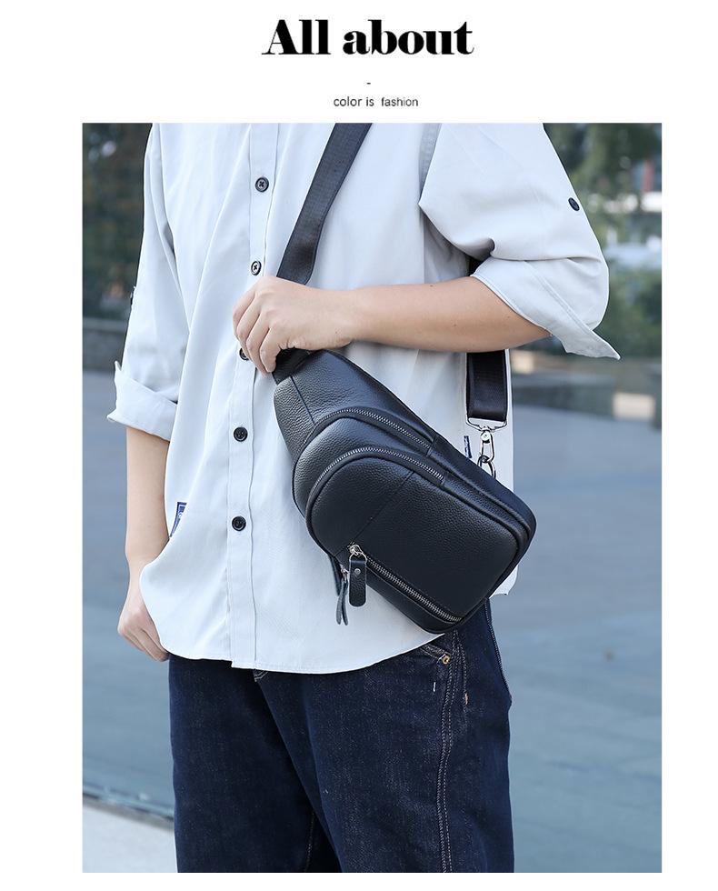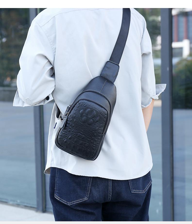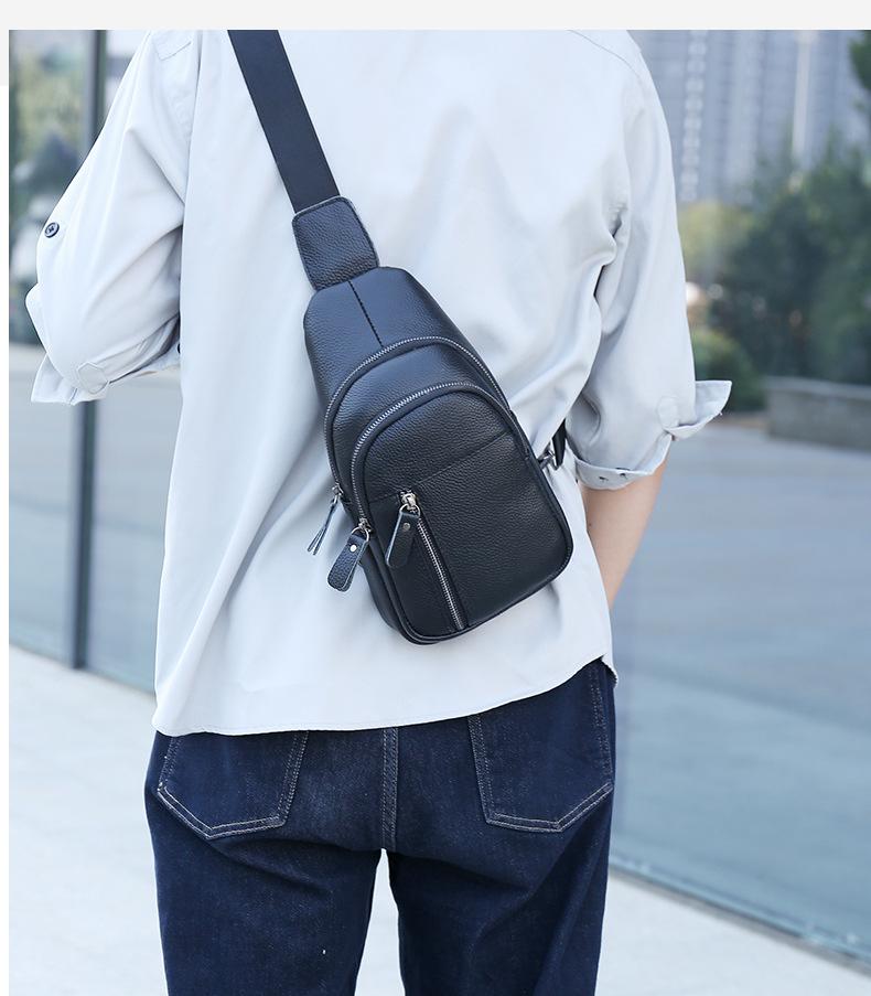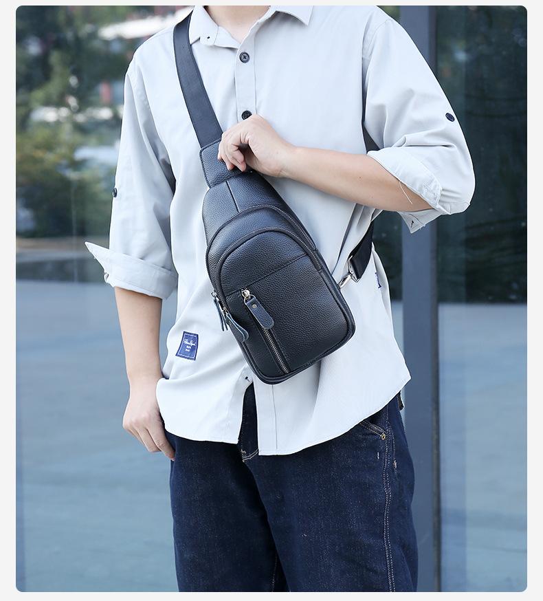 Nueva Bolsa de Pecho Casual para Hombre de Cuero Genuino, Venta al por Mayor de Bolso Bandolera de Cuero Vacuno de Primera Capa, Bolso de Hombro Retro para Hombre