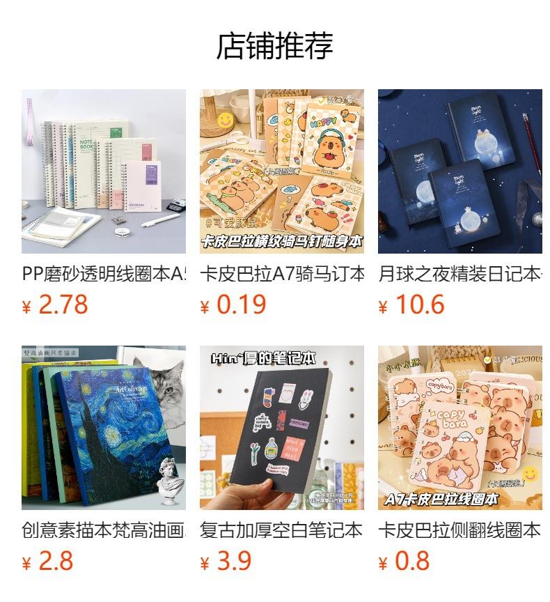 Cuaderno de espiral lindo de dibujos animados A5, cuaderno de hojas sueltas horizontal tipo kappibala, cuaderno grueso para estudiantes de primaria, venta al por mayor