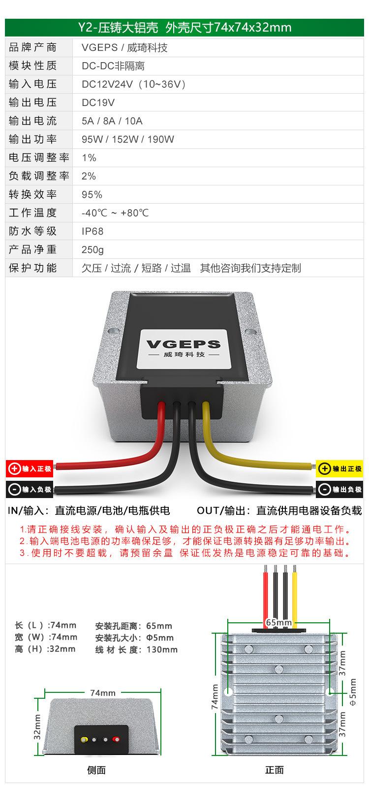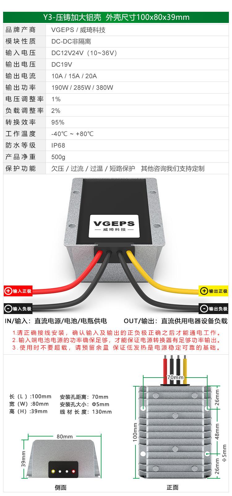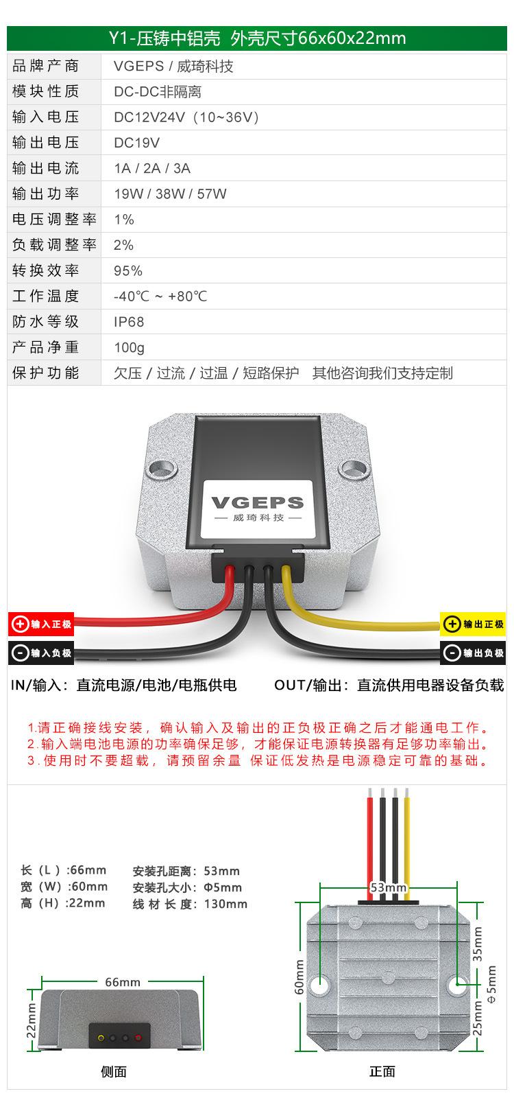 Convertidor de potencia de CC de 10-36 V a 19 V, módulo reductor-elevador de 12 V, 24 V a 19 V, fuente de alimentación para coche y portátil.