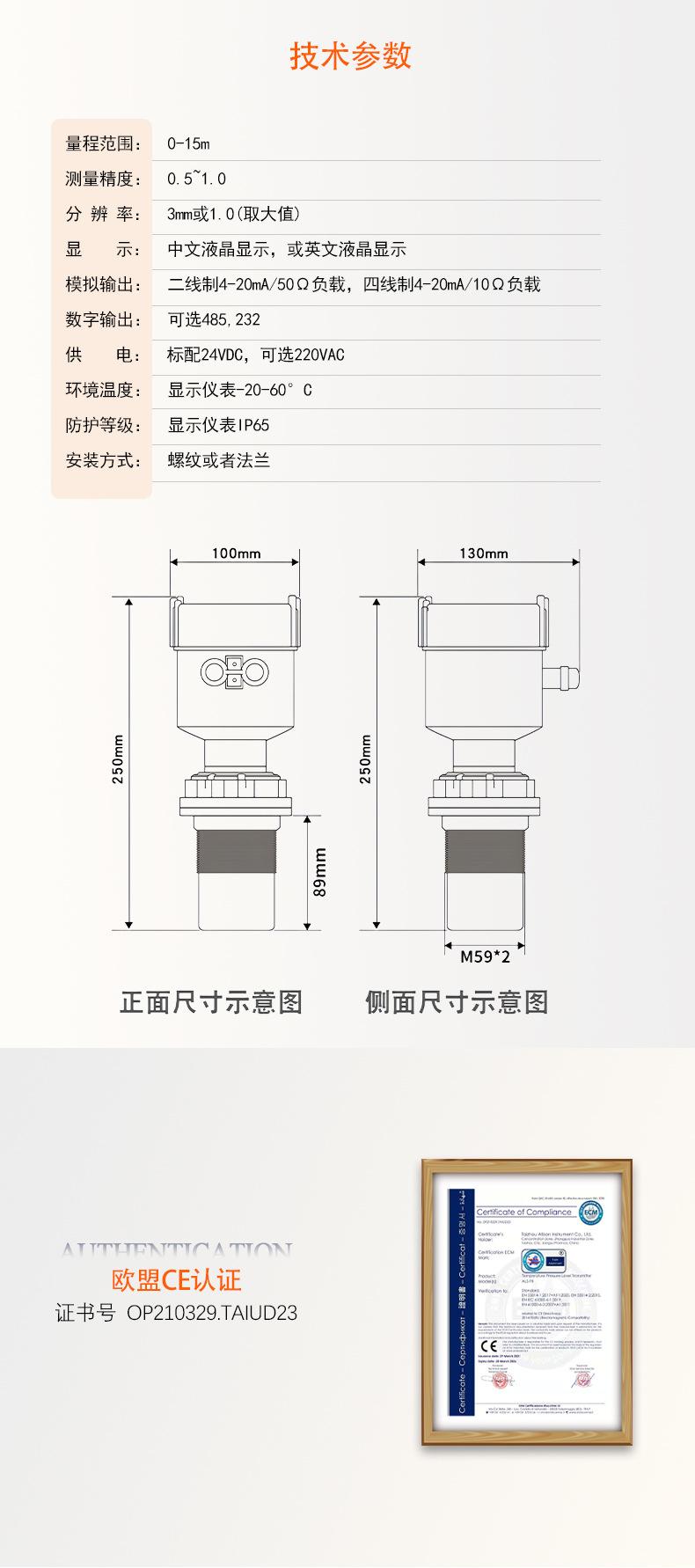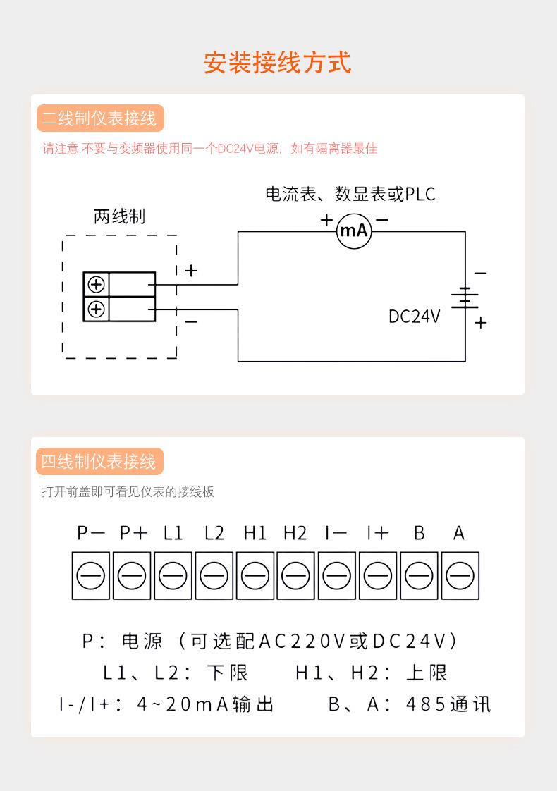 0-5m 4-20ma DC24V, 0-10m 4-20ma DC24V, 0-15m 4-20ma DC24V