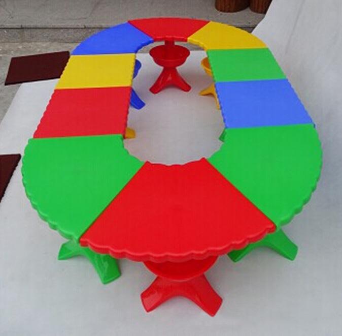 Compra Mesa y silla para jardín de infantes, mesa infantil para seis personas, mesa redonda de plástico, mesa para bebés en forma de abanico, mesa de juego con forma intercambiable al por mayor en Joom.pro