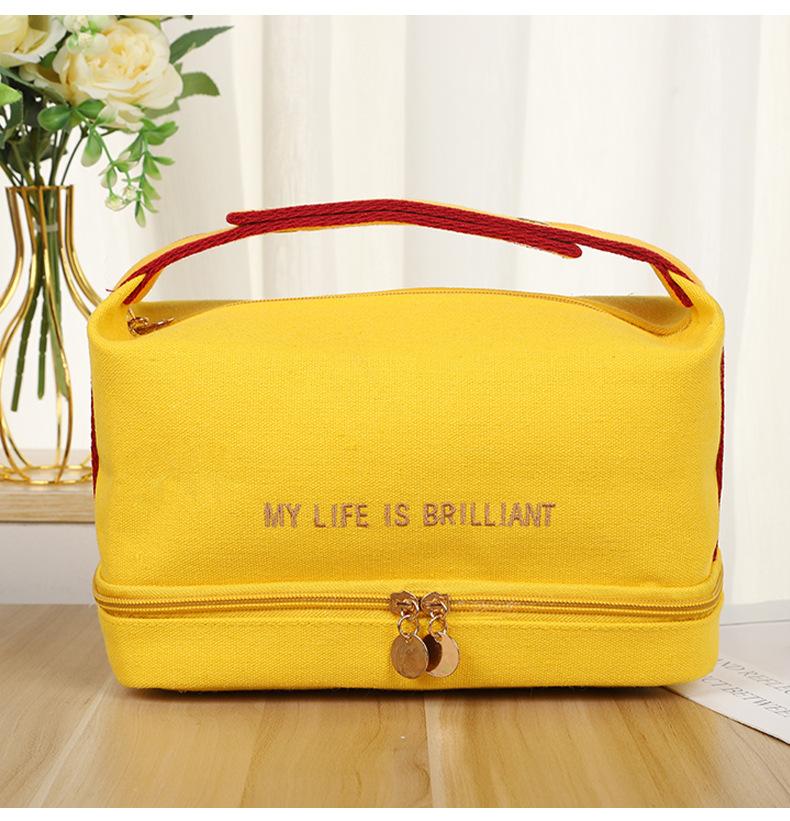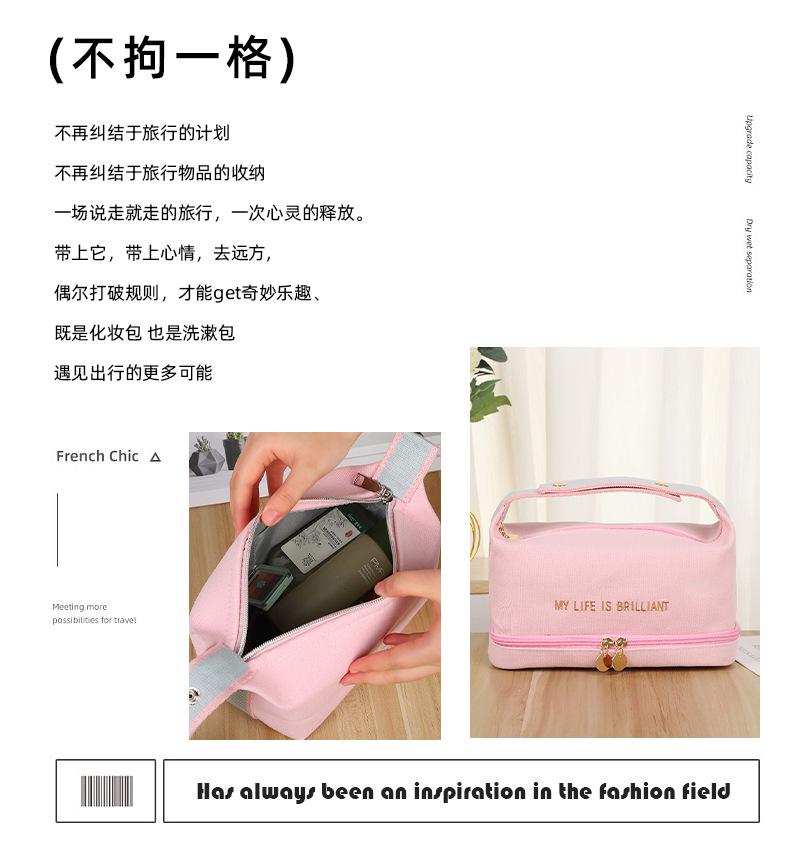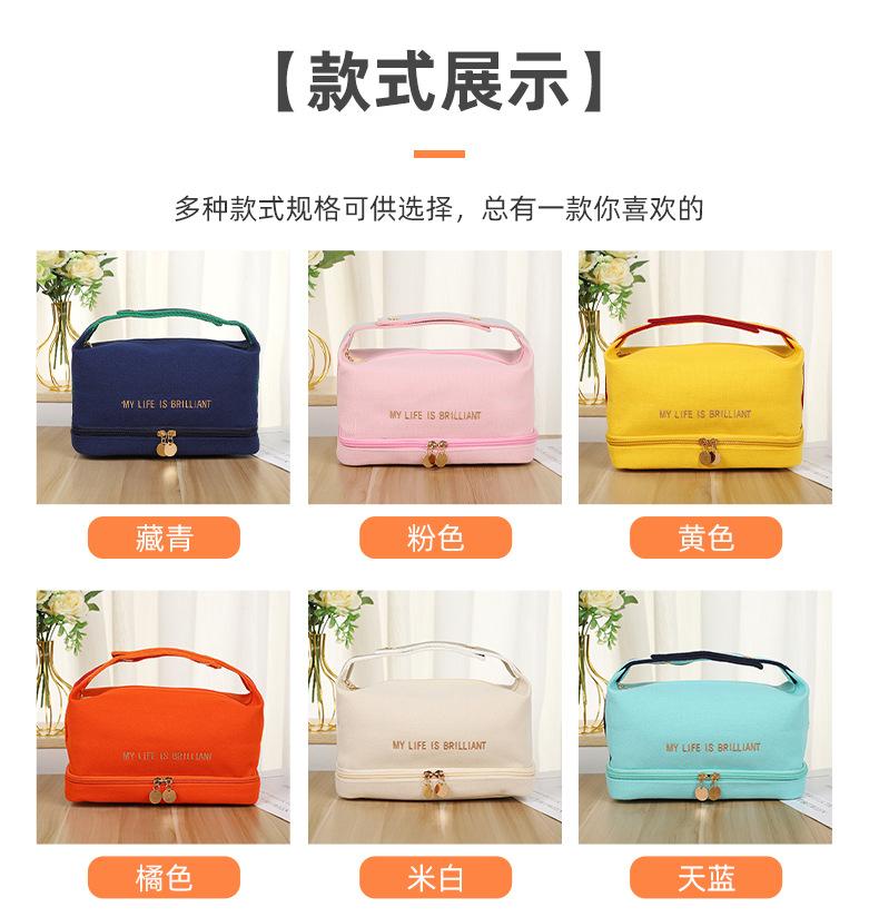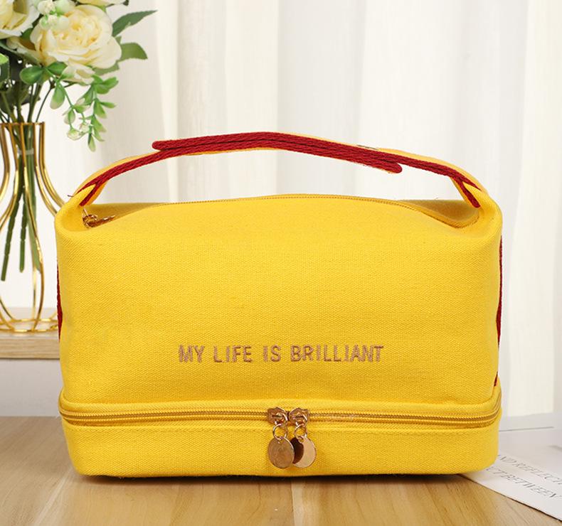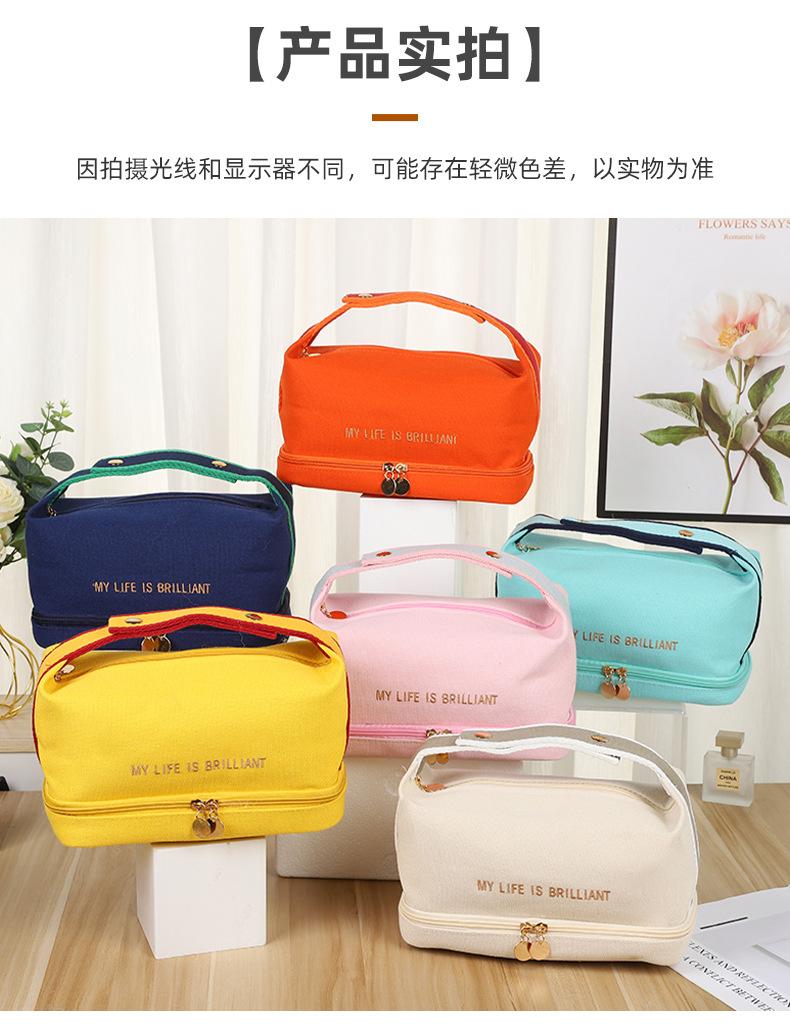 Bolsa de cosméticos de lona de doble capa, nuevo bolso de mano estilo ins, bolsa de almacenamiento de viaje sencilla, bolsa de lavado portátil en stock