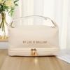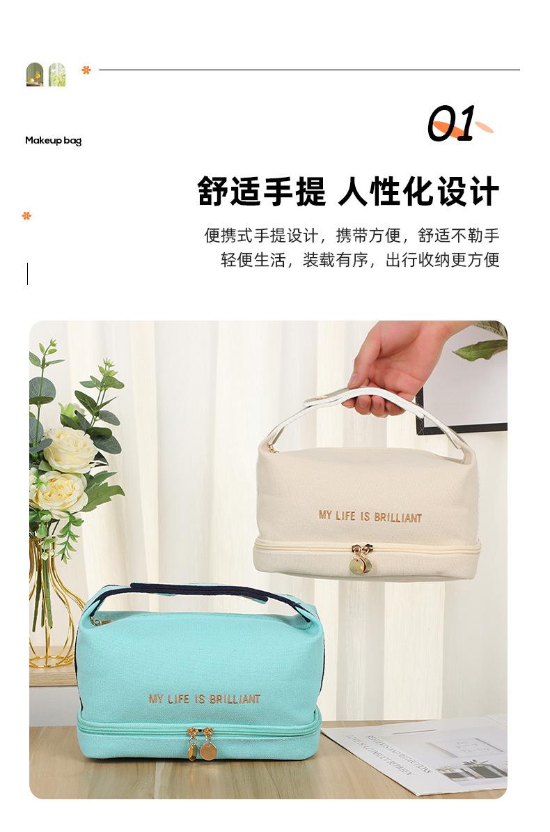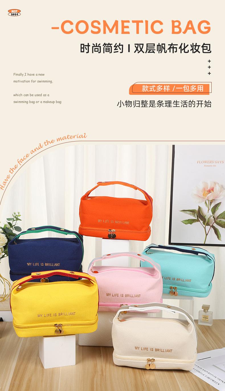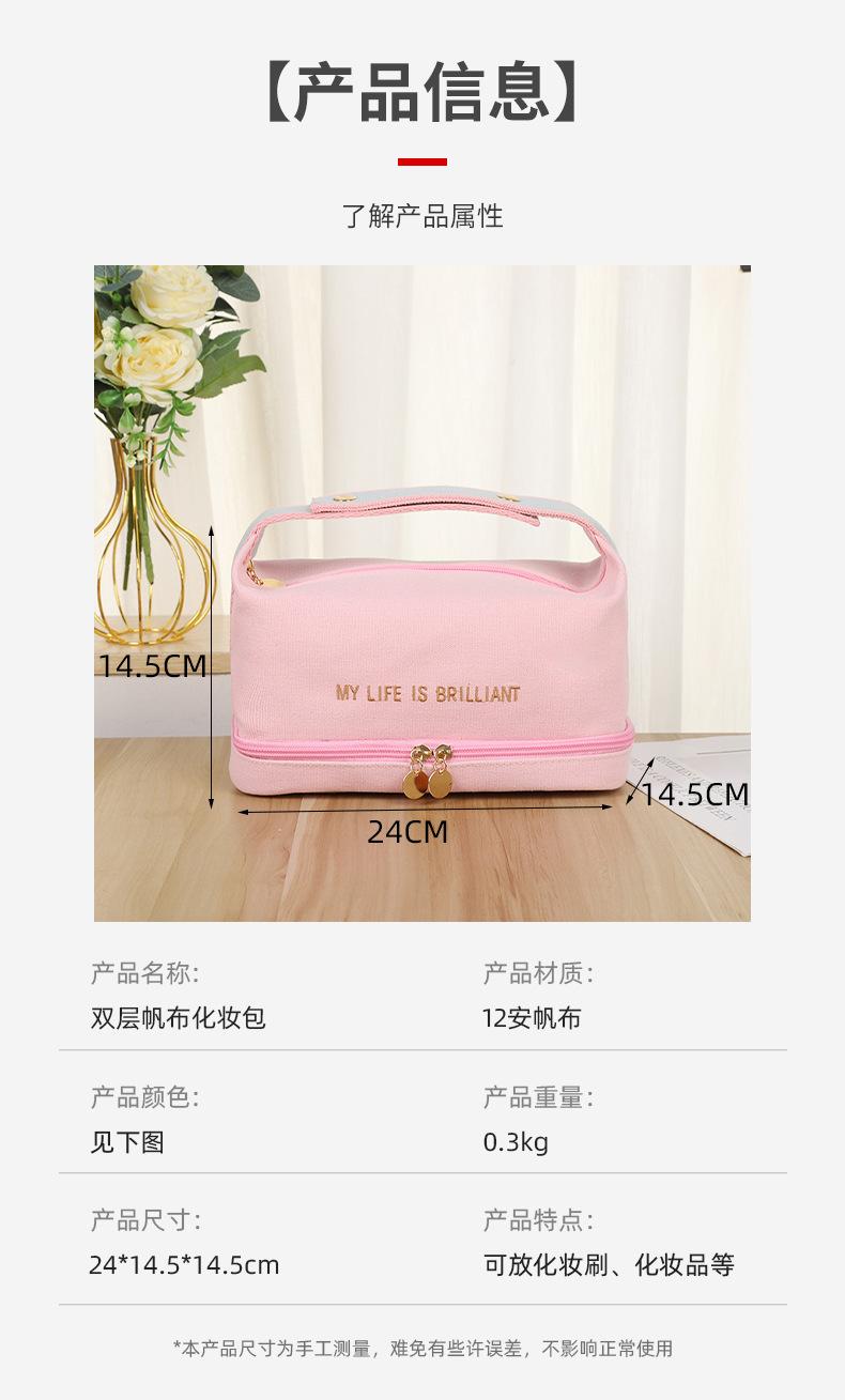 Bolsa de cosméticos de lona de doble capa, nuevo bolso de mano estilo ins, bolsa de almacenamiento de viaje sencilla, bolsa de lavado portátil en stock