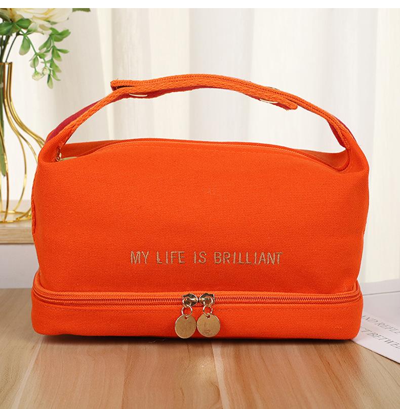 Orange double-layer canvas bag [24*14.5 * cm]]